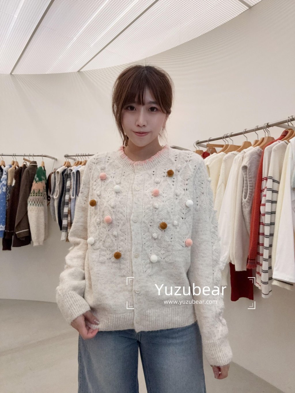 RE32 韓國高質波波刺綉麻花開胸冷衫cardigan