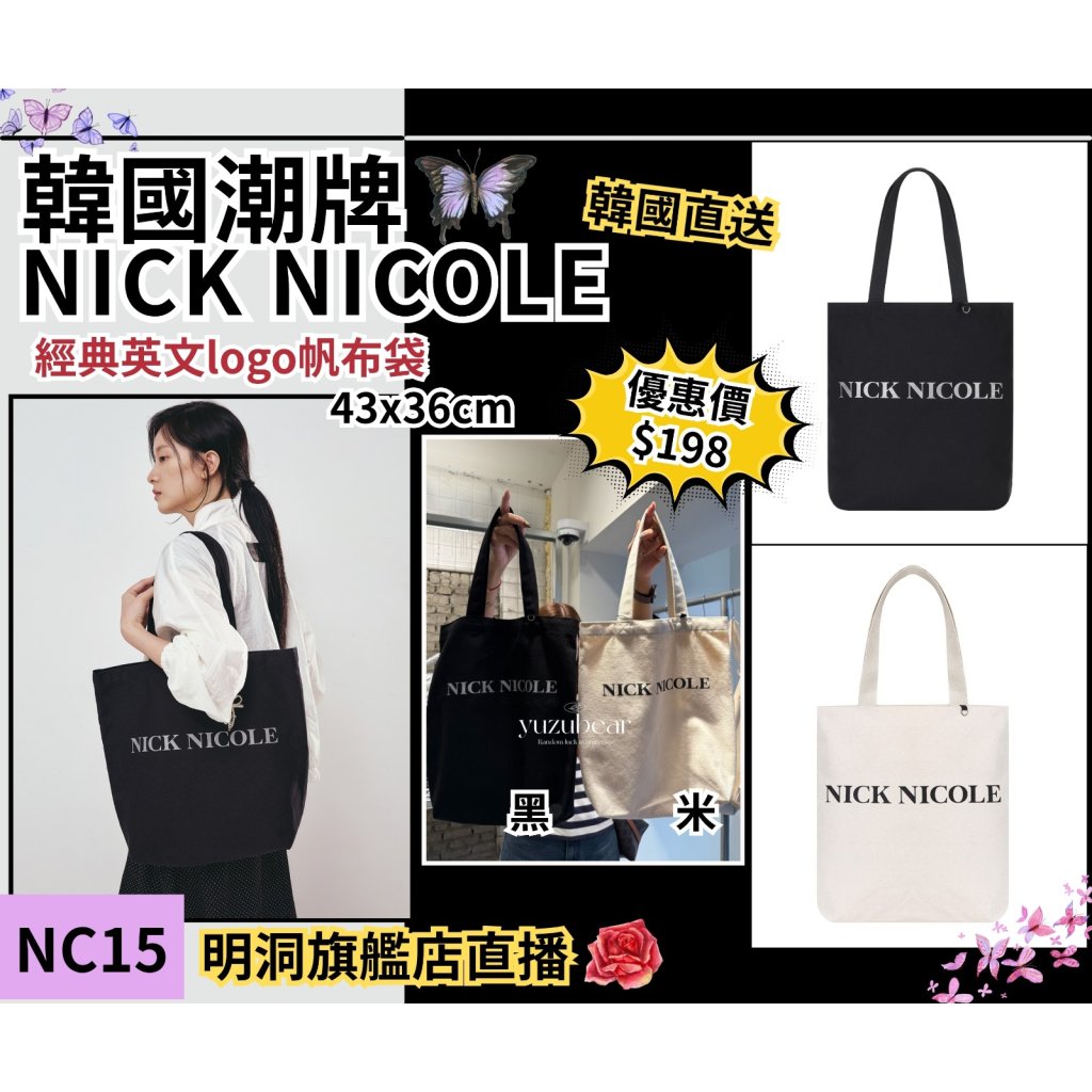 NC15 韓國潮牌Nick Nicole - 經典帆布袋