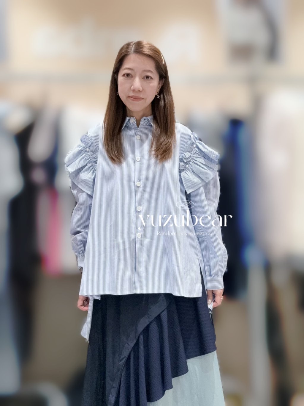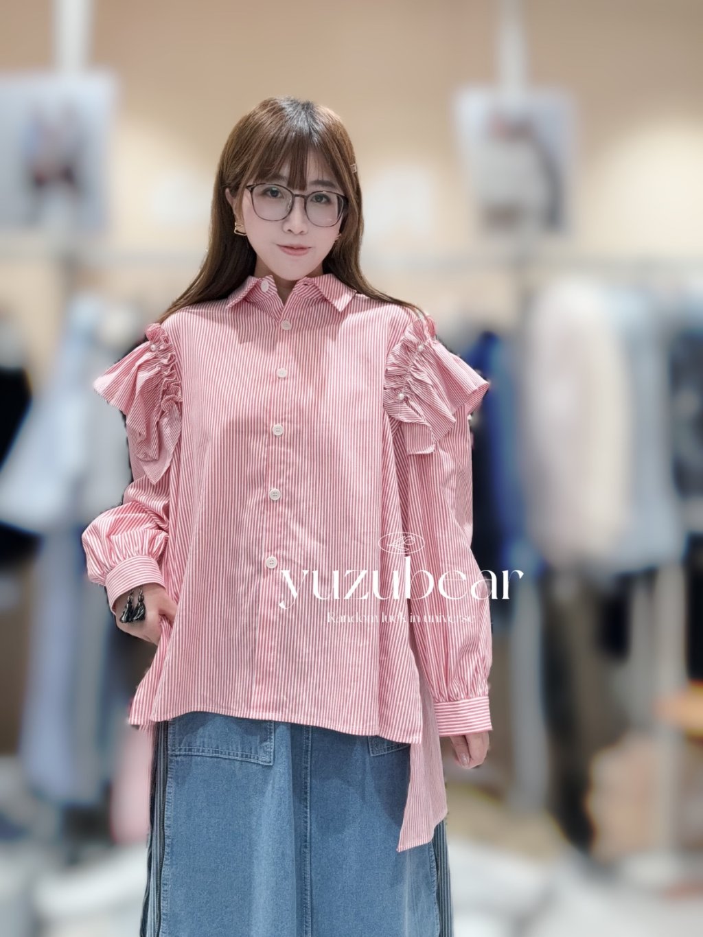 ab32 韓國高質間條raffle珍珠襯衫(raffle可拆)