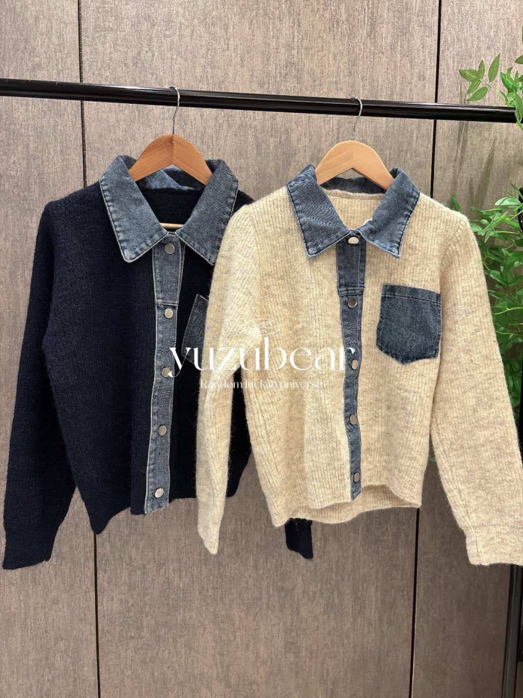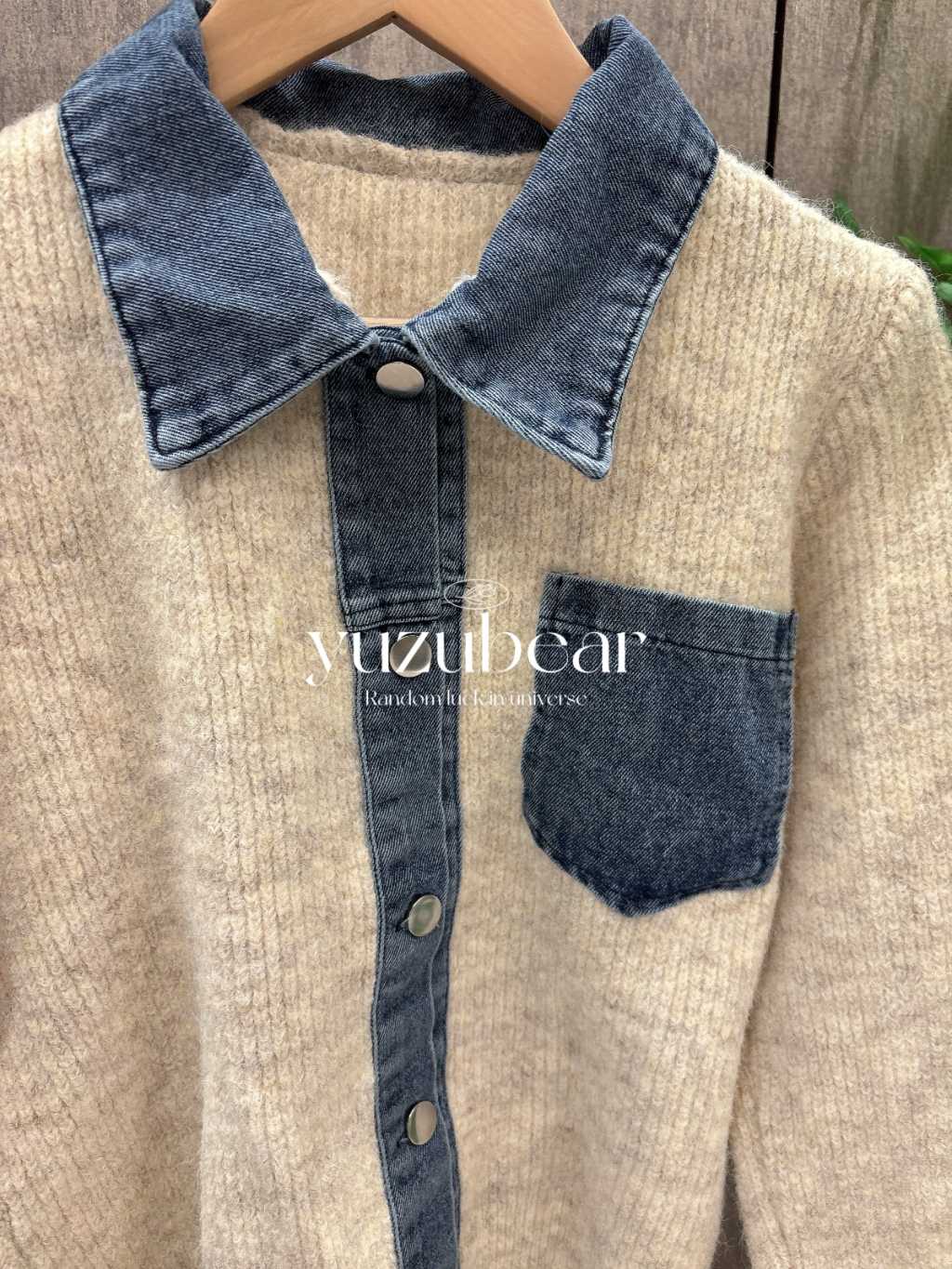 AU61 韓國高質拼牛仔冷衫開胸外套