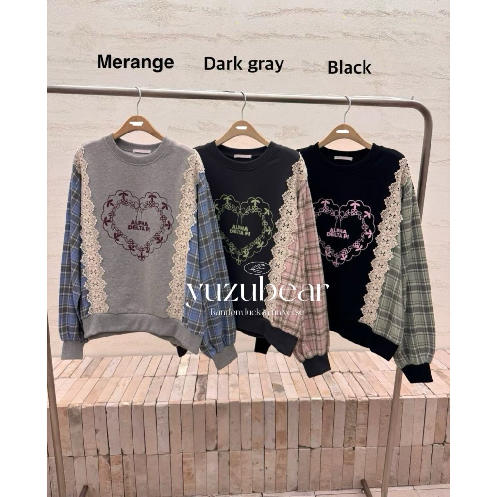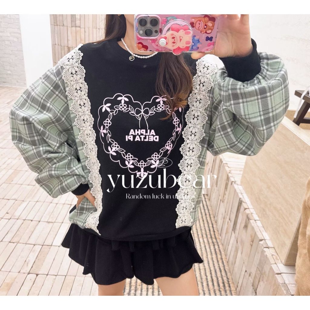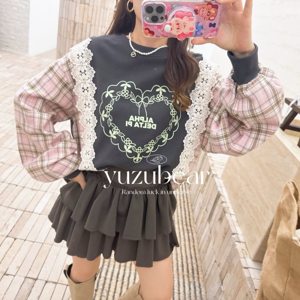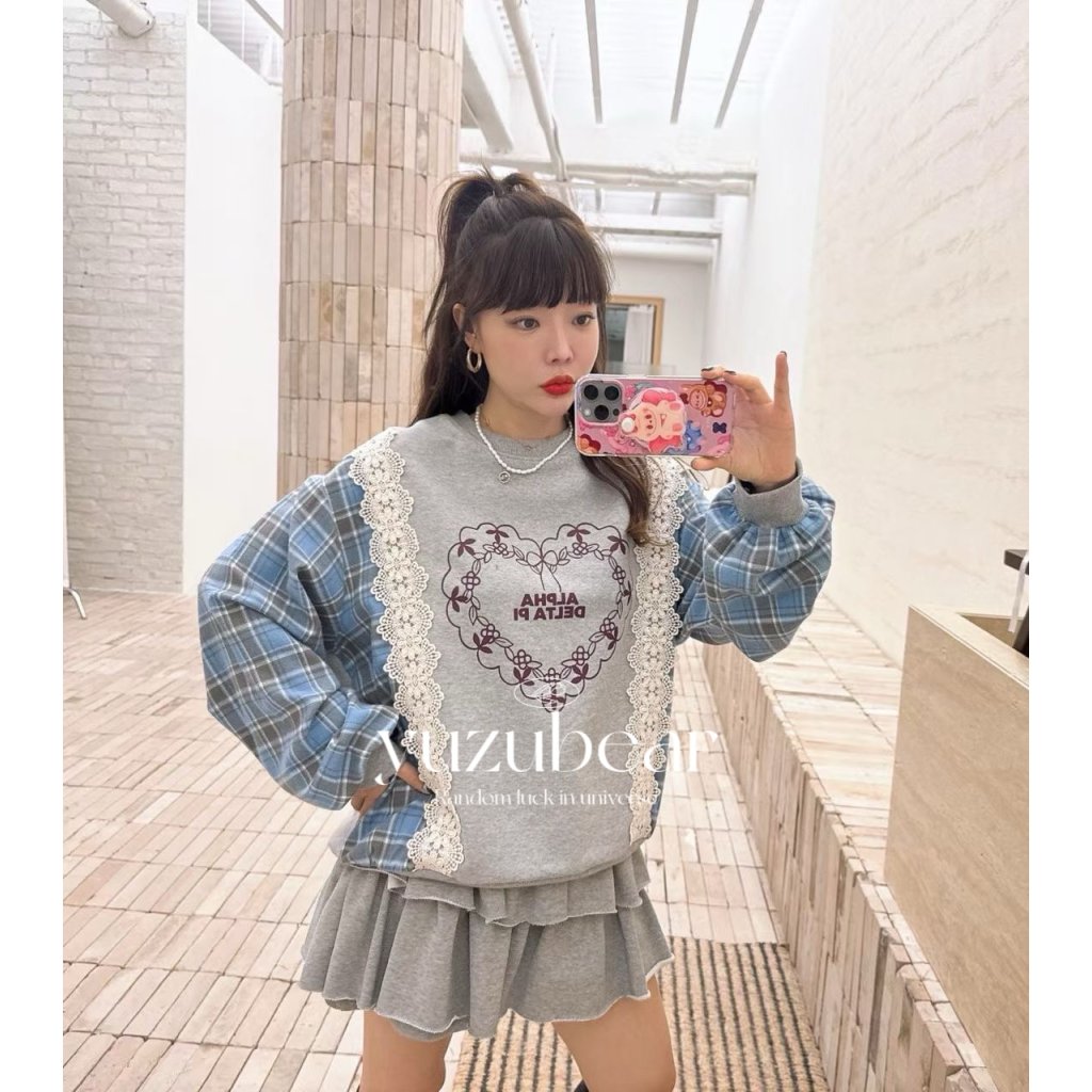 主頁 va67 韓國高質格子袖拼布蝴蝶結心心衛衣