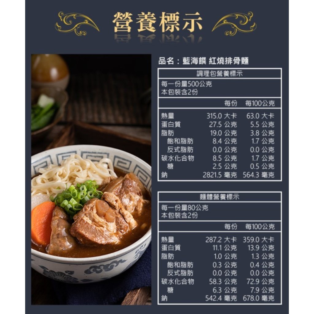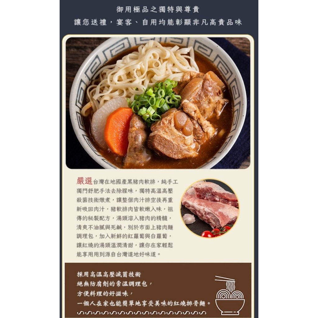 YH6 【藍海饌】紅燒排骨麵 2入裝 (💖YH6~YH16買任何3盒每盒$155 / 買5盒每盒$145 )