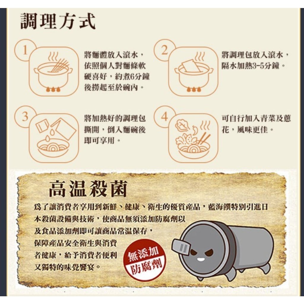 本產品採用真空高溫高壓殺菌,絕不含防腐劑