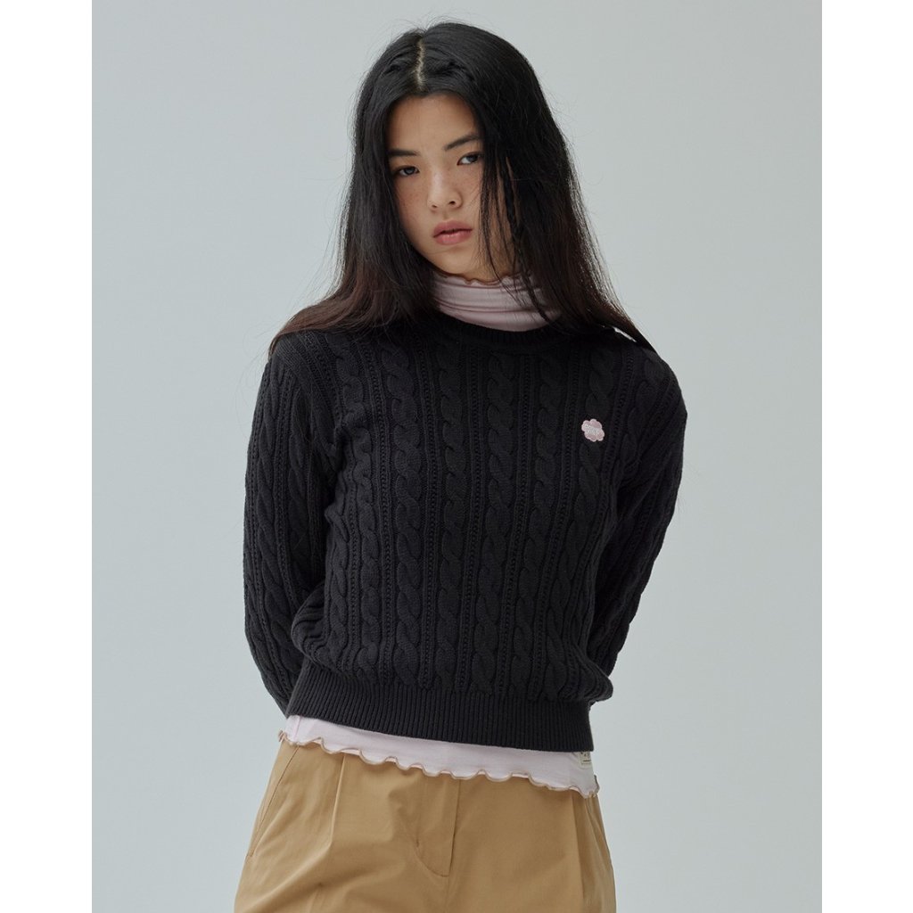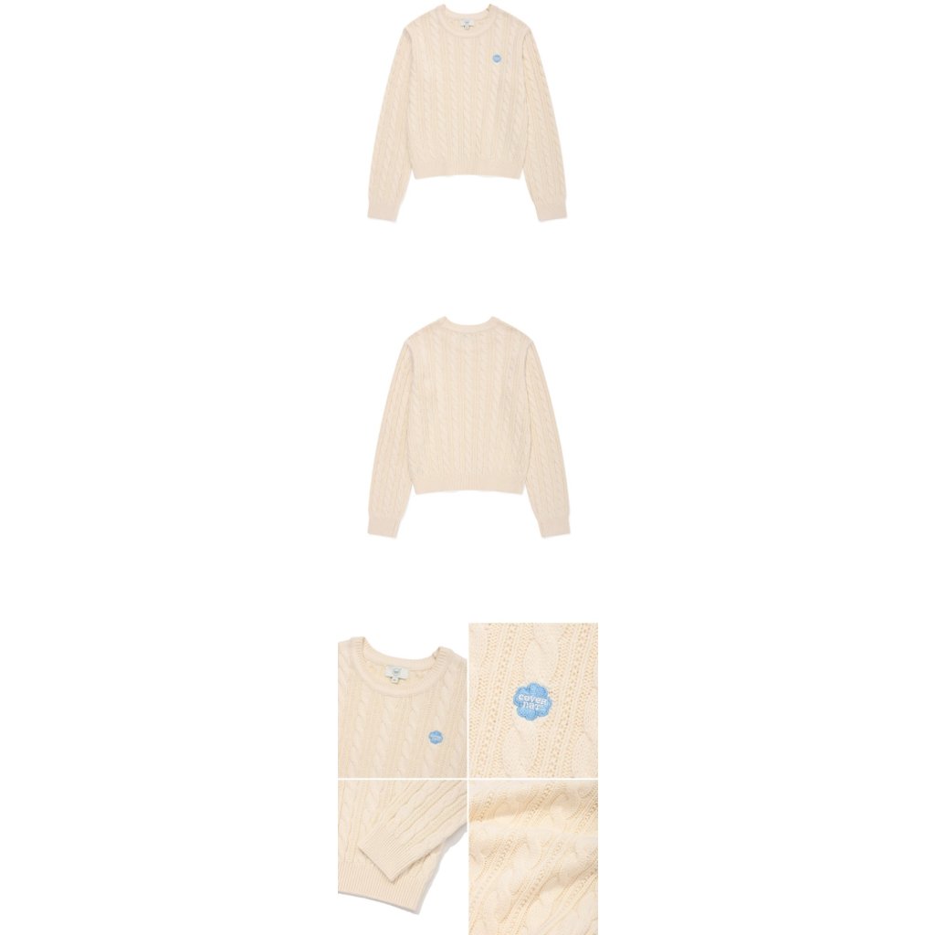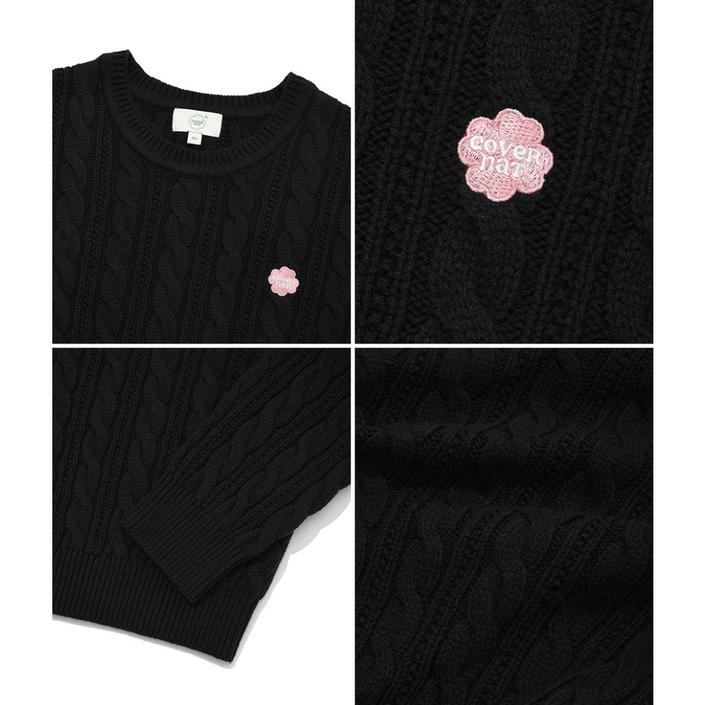 CV25 韓國潮牌Covernat - 四葉草刺綉小logo 麻花冷衫