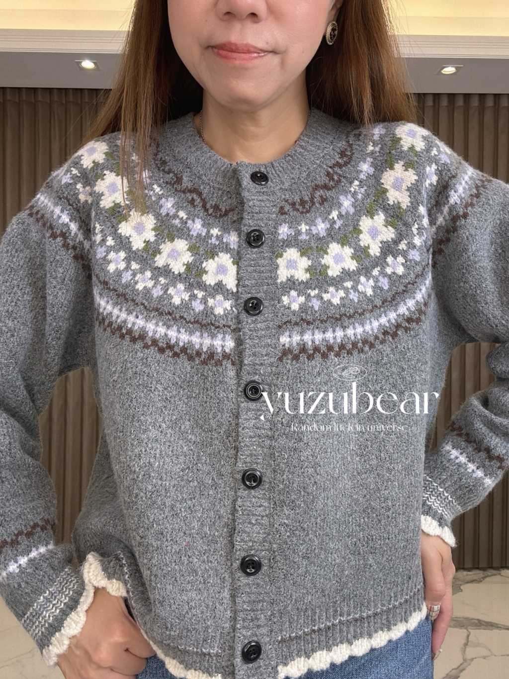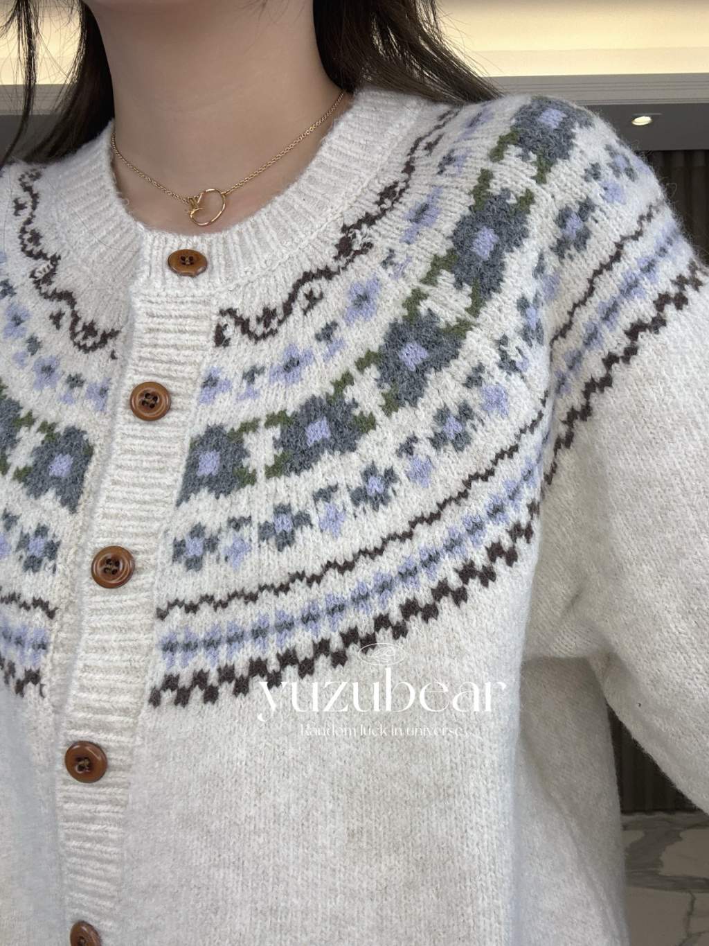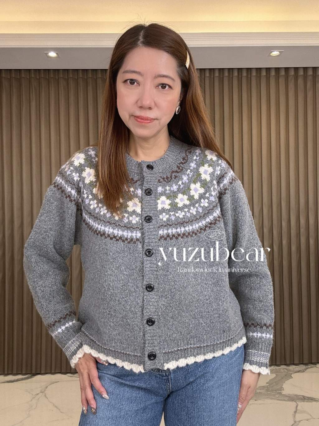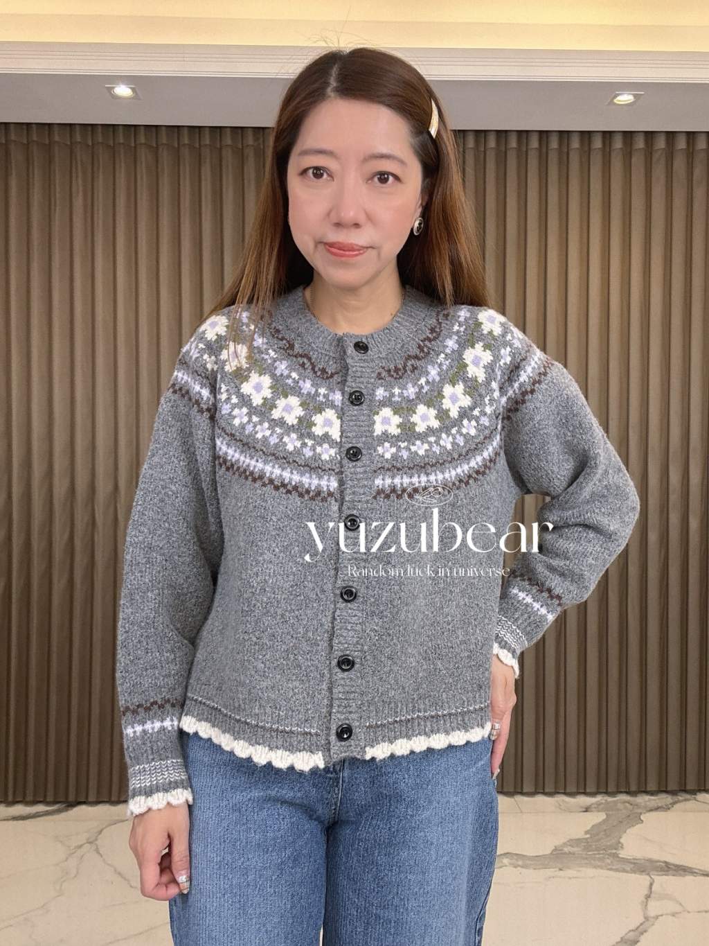 au97 韓國高質花花波浪邊開胸拼色冷衫外套