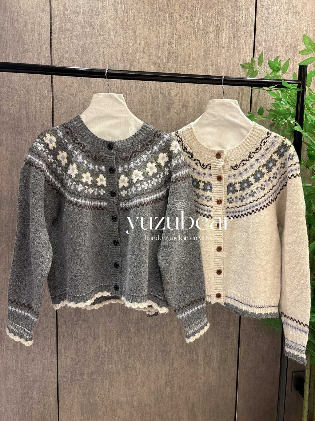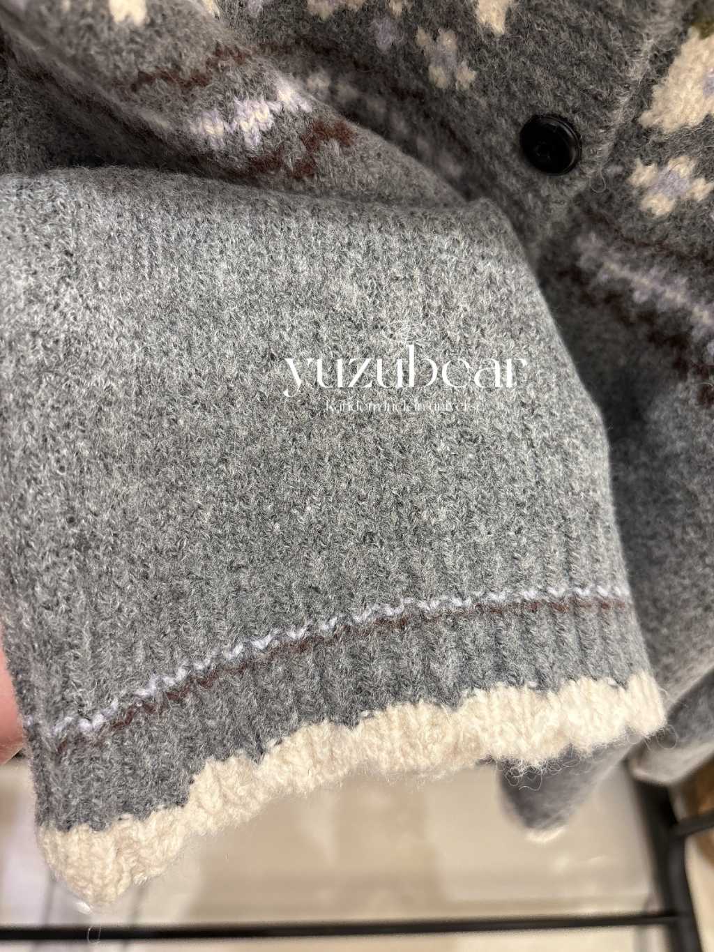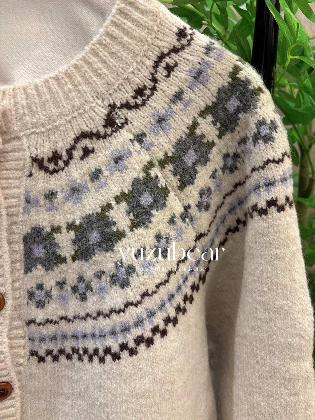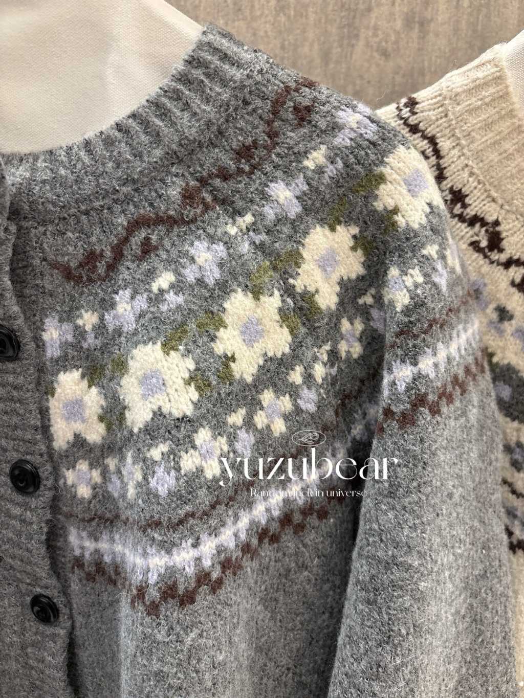 au97 韓國高質花花波浪邊開胸拼色冷衫外套