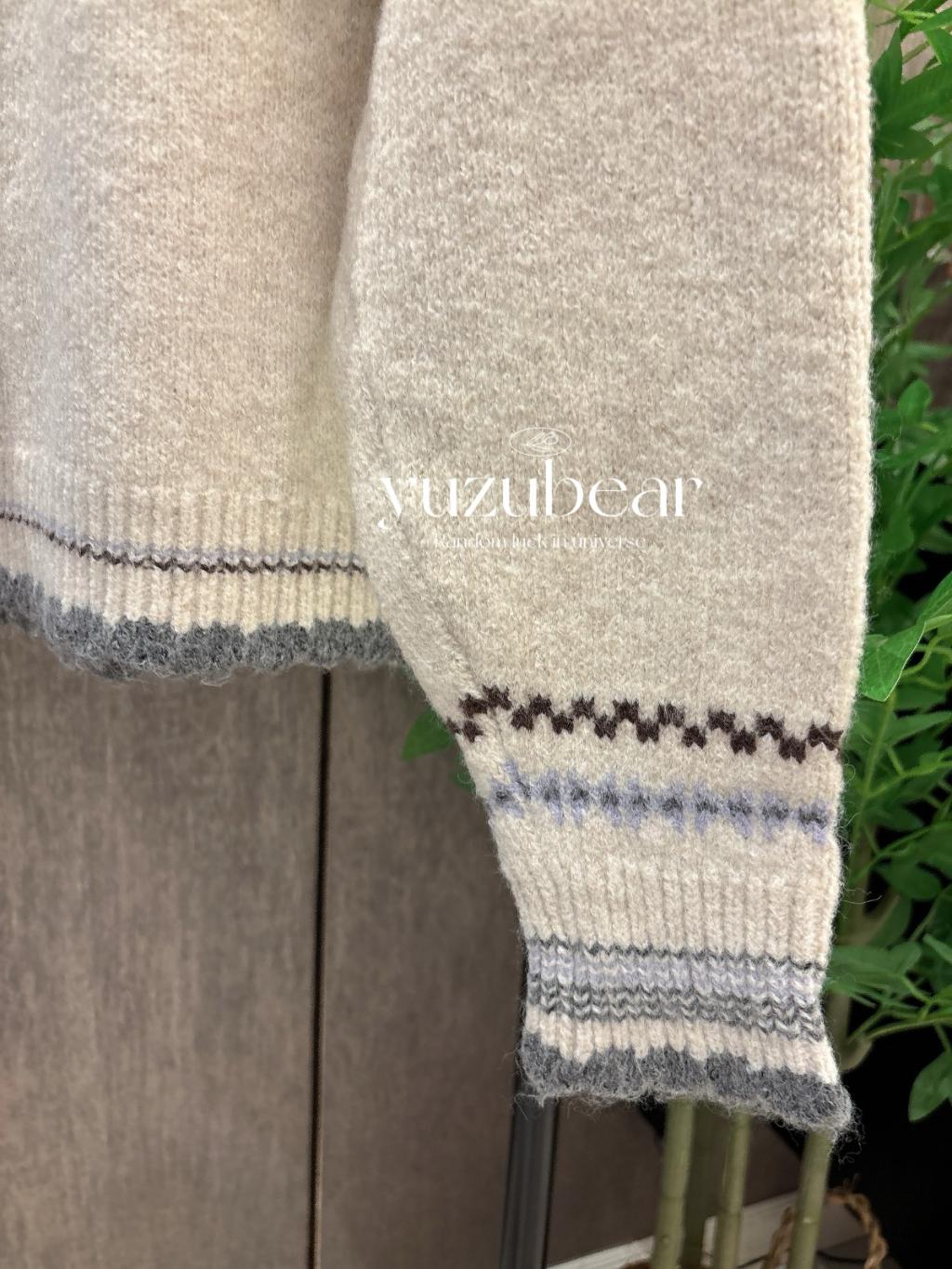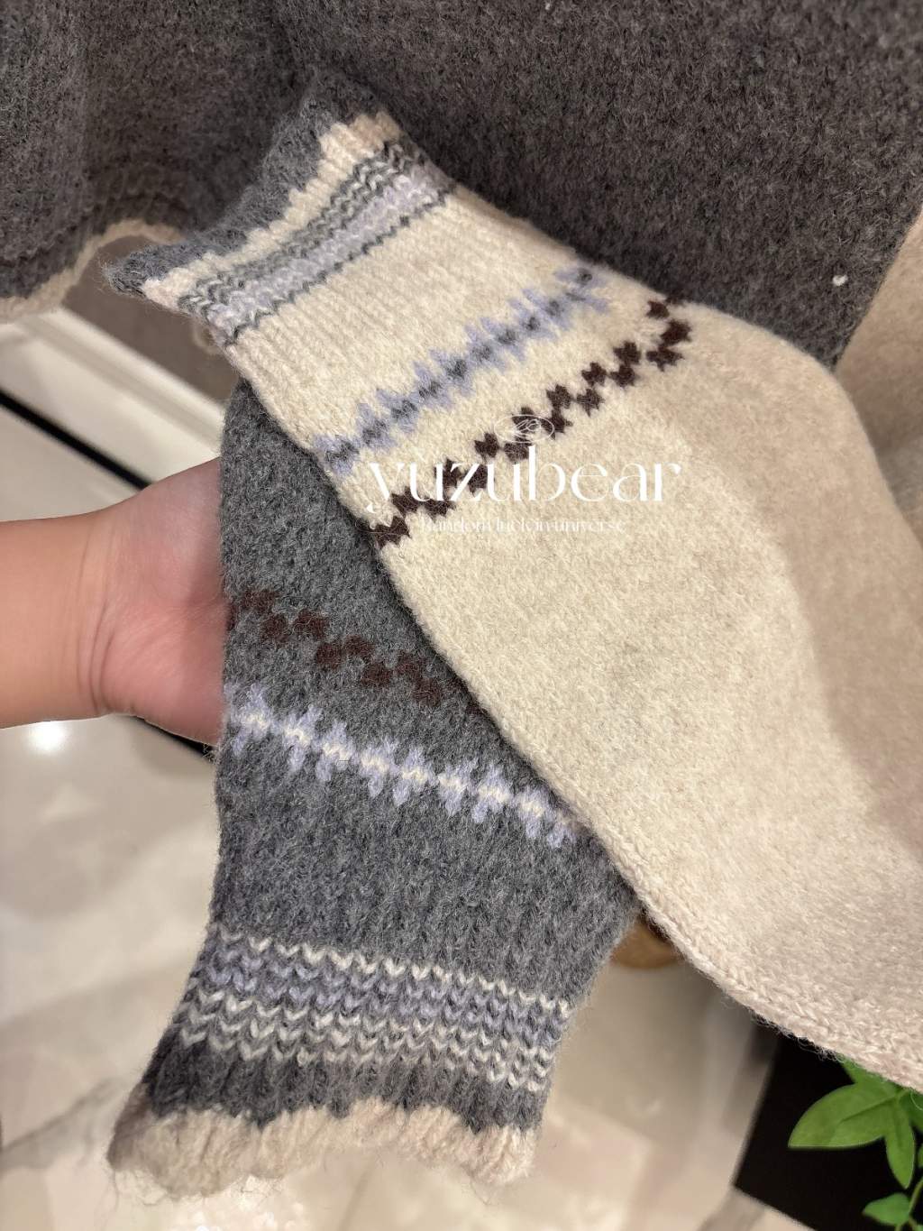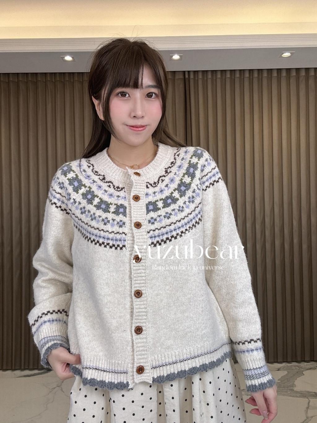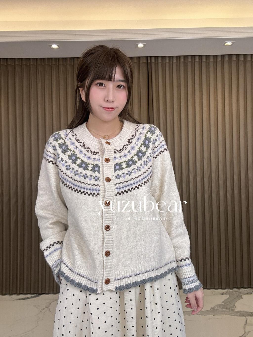 au97 韓國高質花花波浪邊開胸拼色冷衫外套