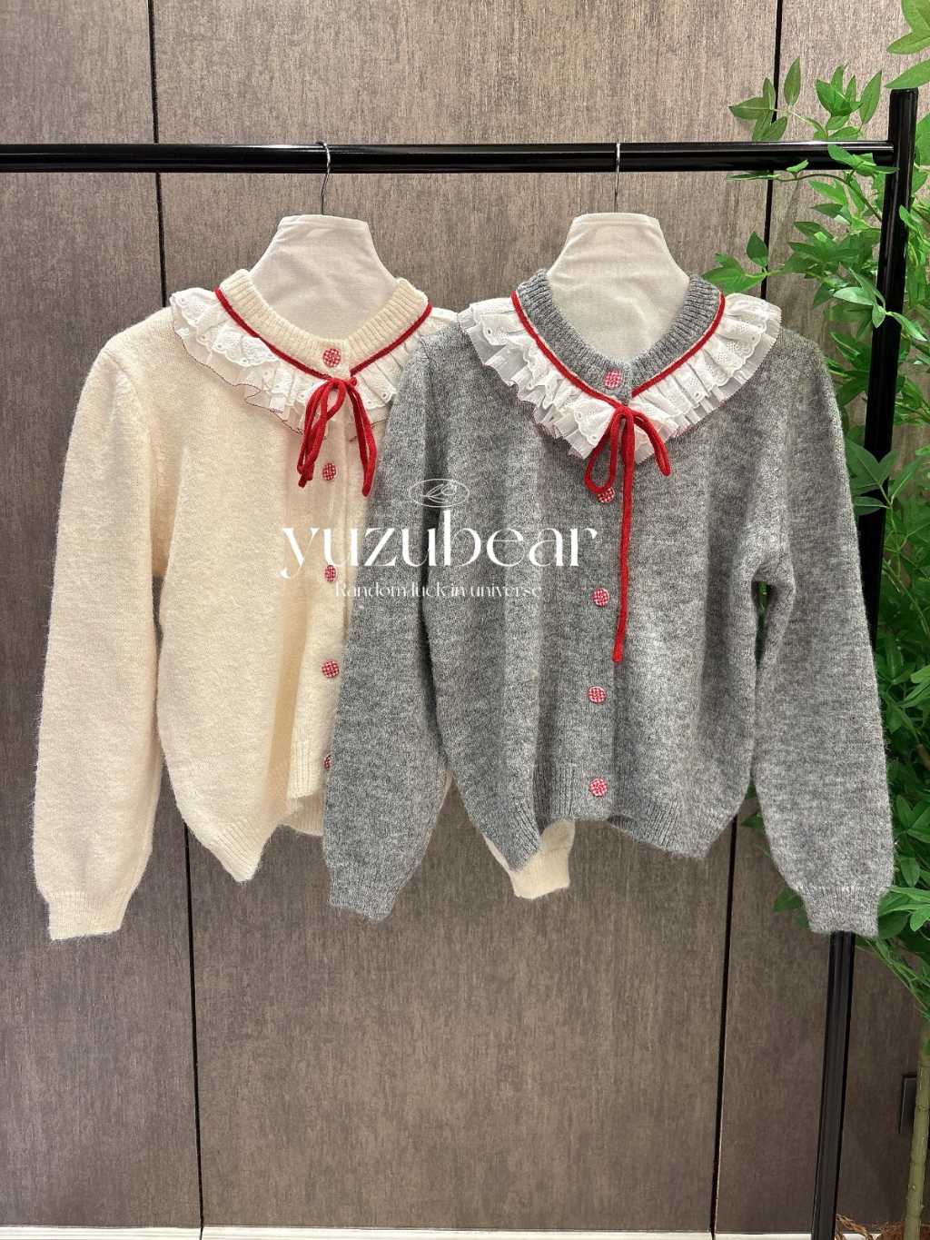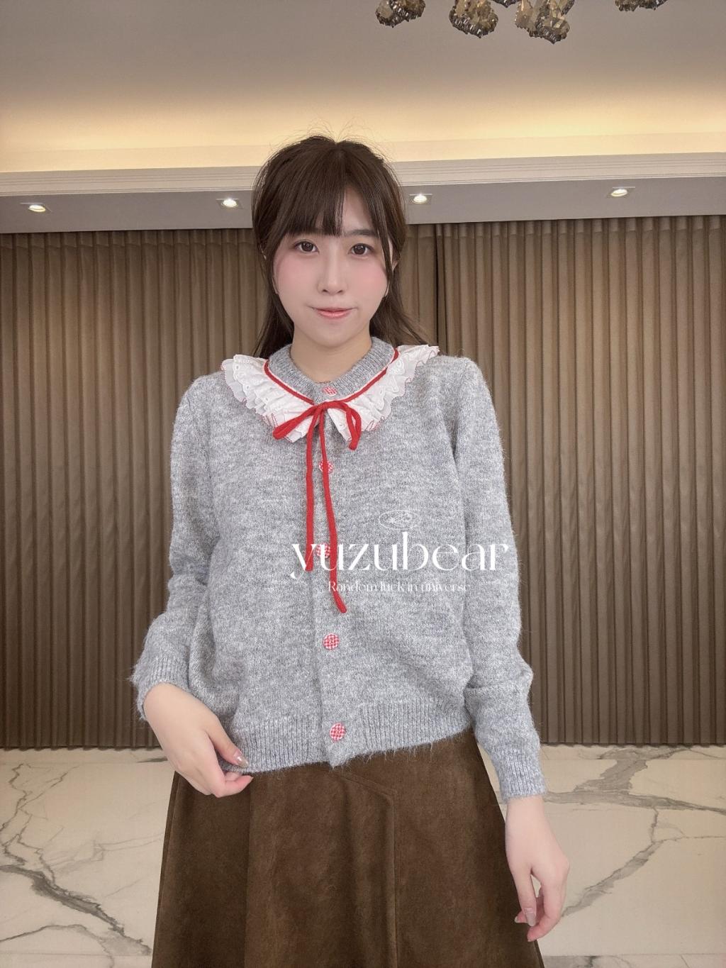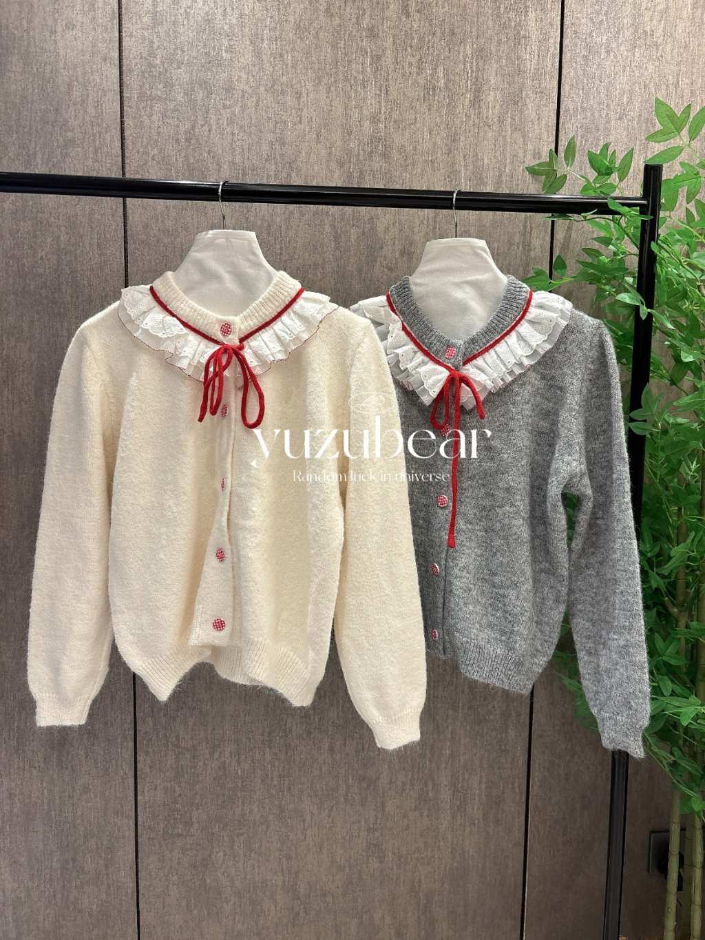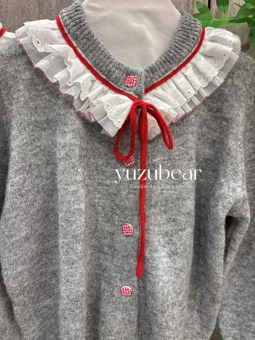 AU100 韓國高質lace raffle領格子鈕冷衫外套(混羊毛)