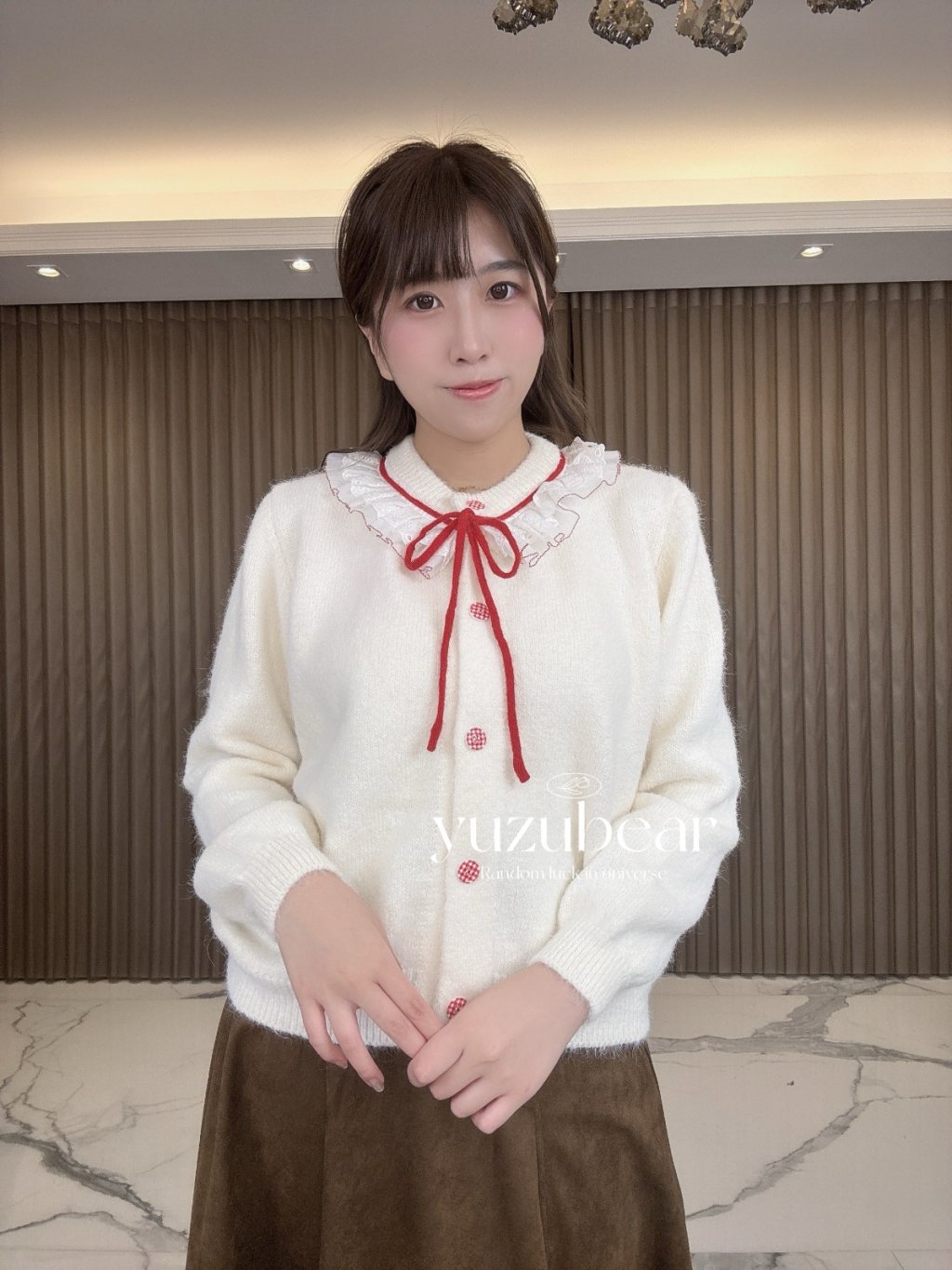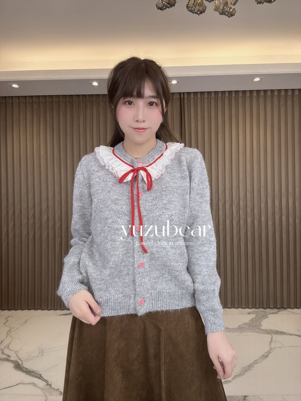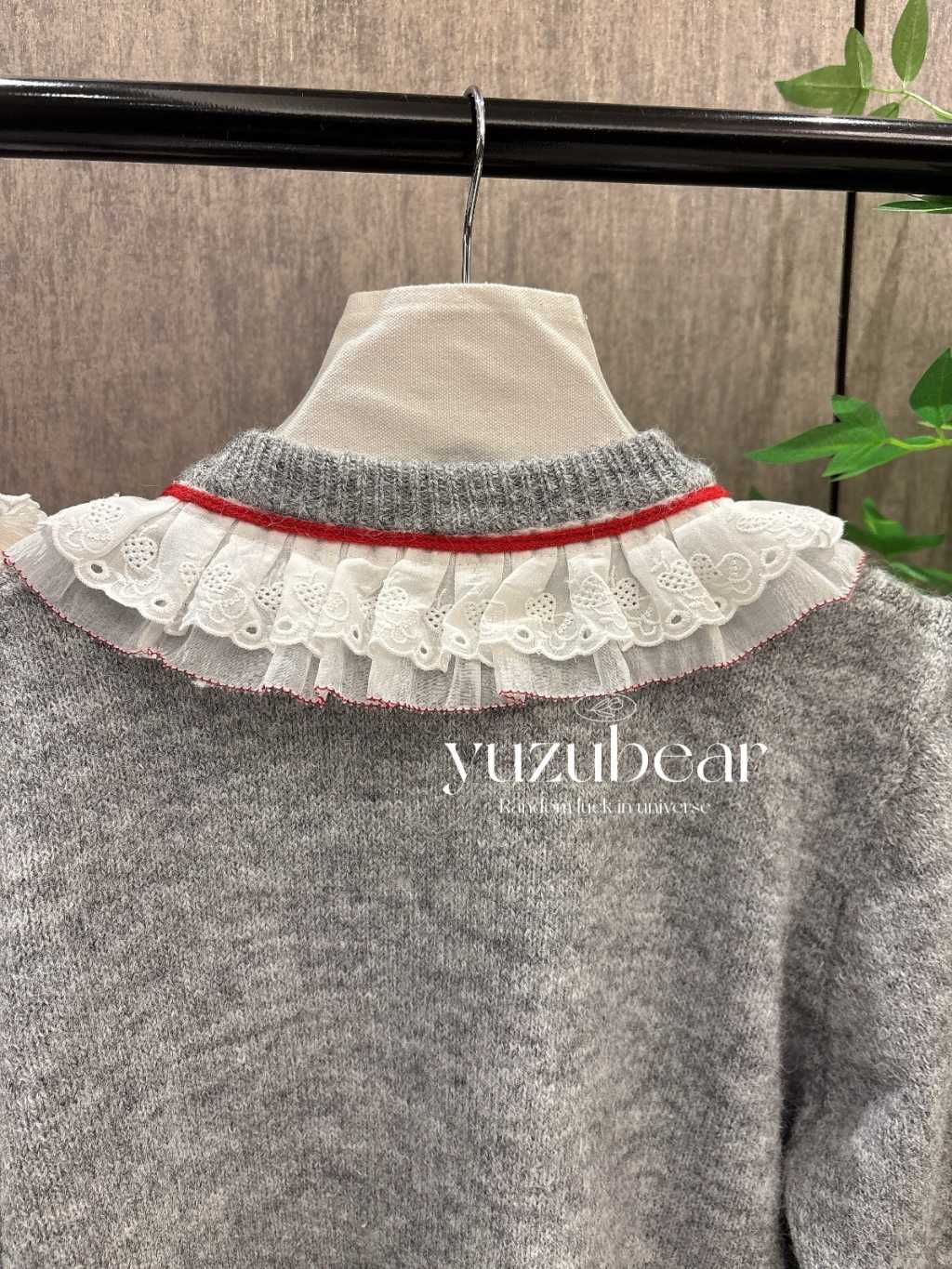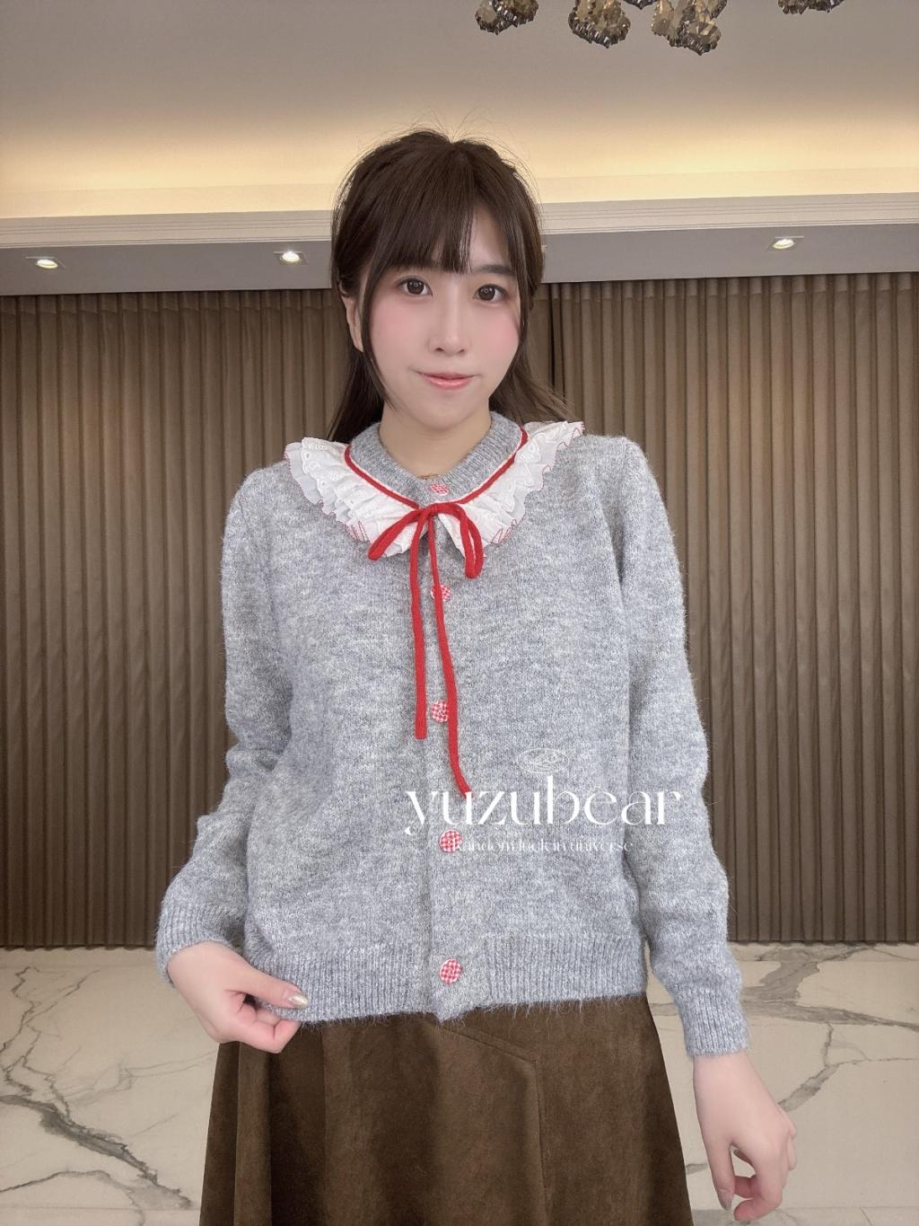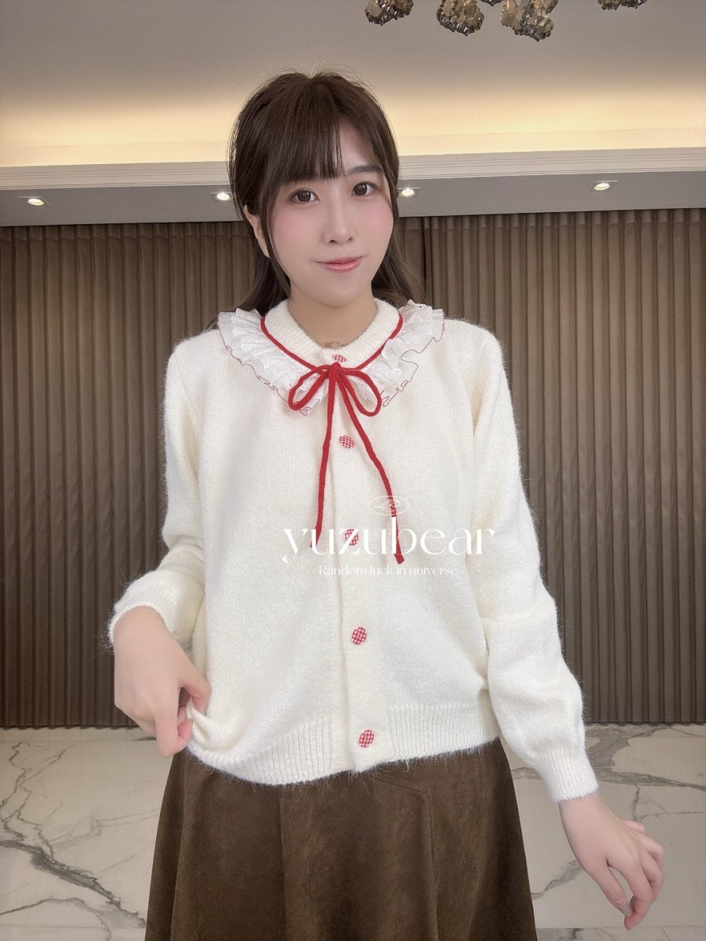 AU100 韓國高質lace raffle領格子鈕冷衫外套(混羊毛)