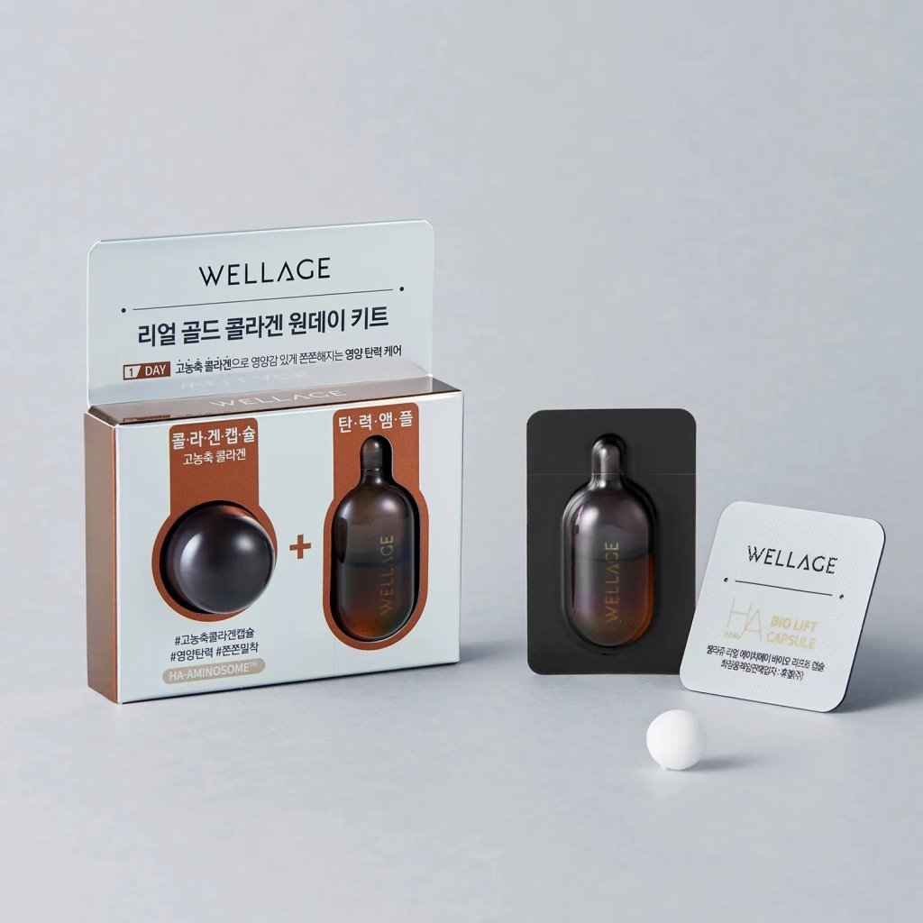 WE1 韓國Wellage唯拉珠 - 黃金膠原緊緻精華七日套裝 (精華膠囊 20毫克x7件 + 精華 1毫升x7件)【現貨】