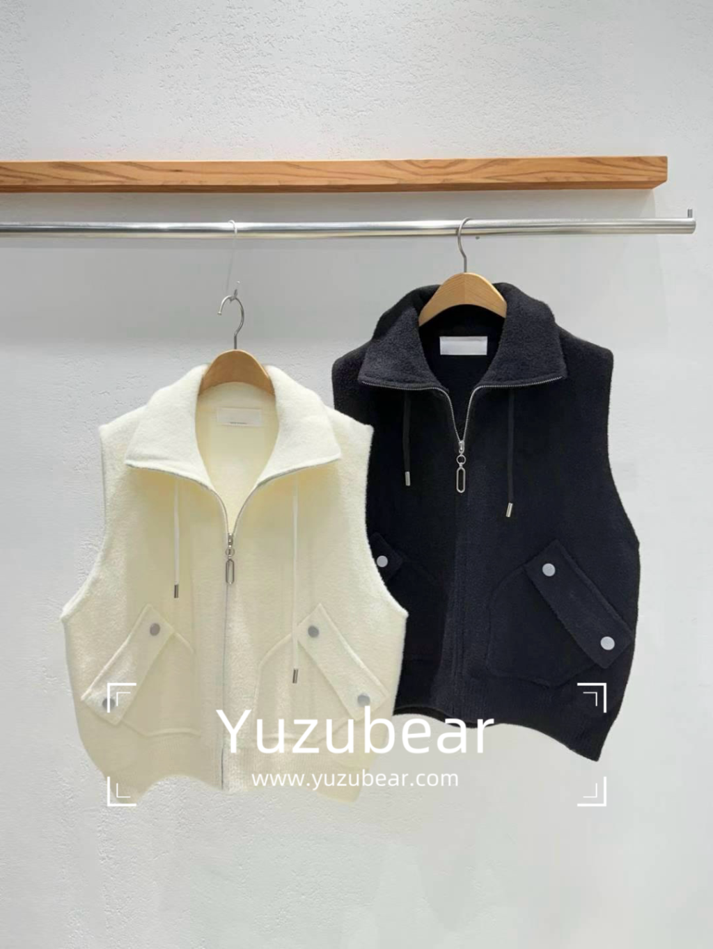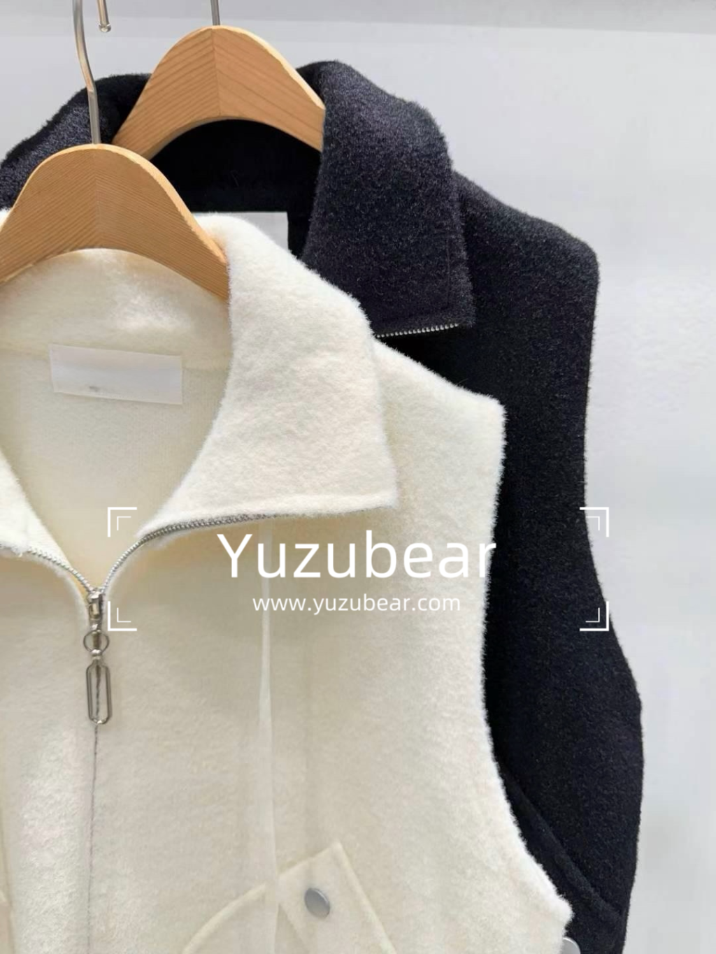 IA13 韓國高質翻領毛冷拉鏈背心外套