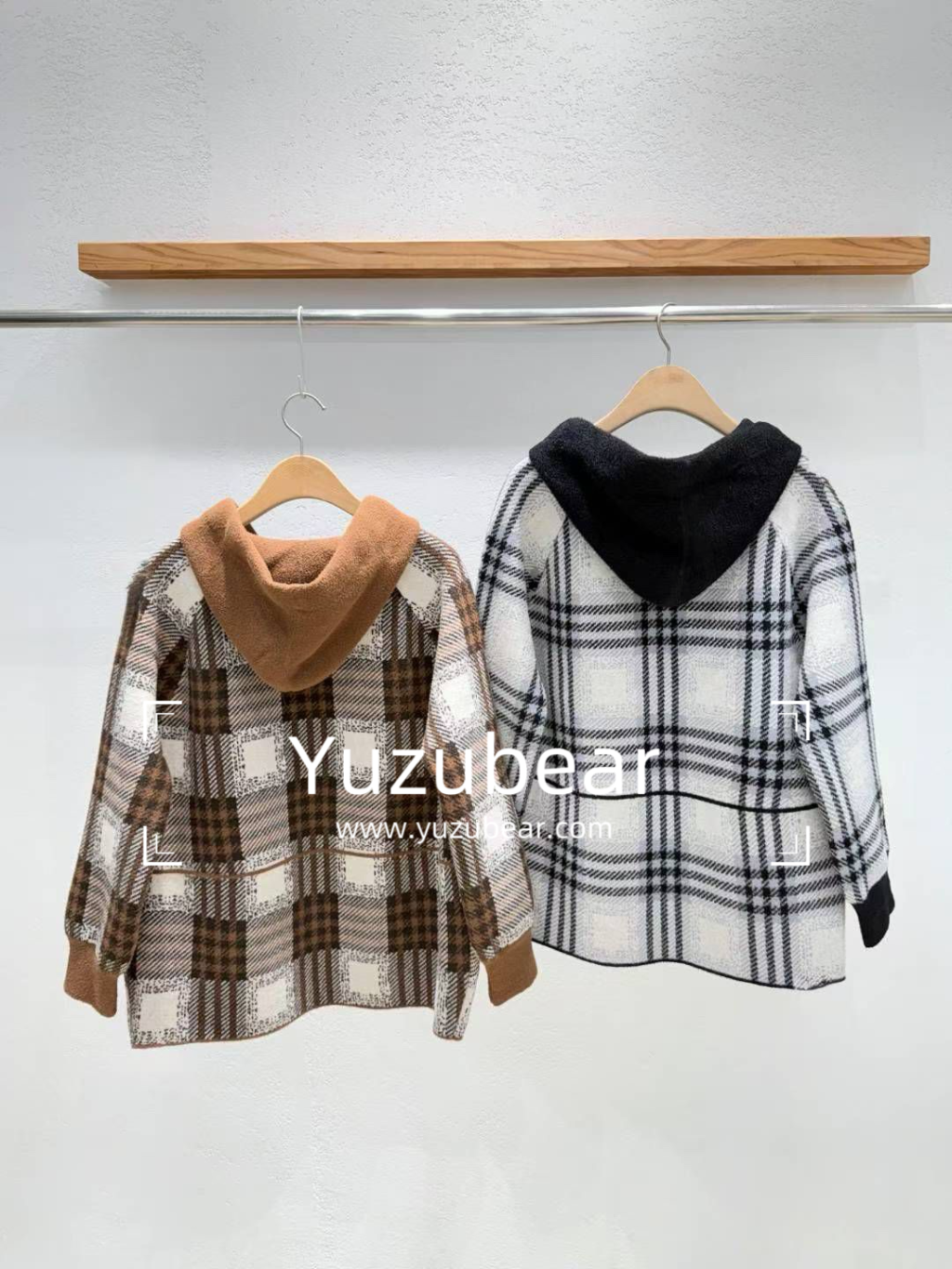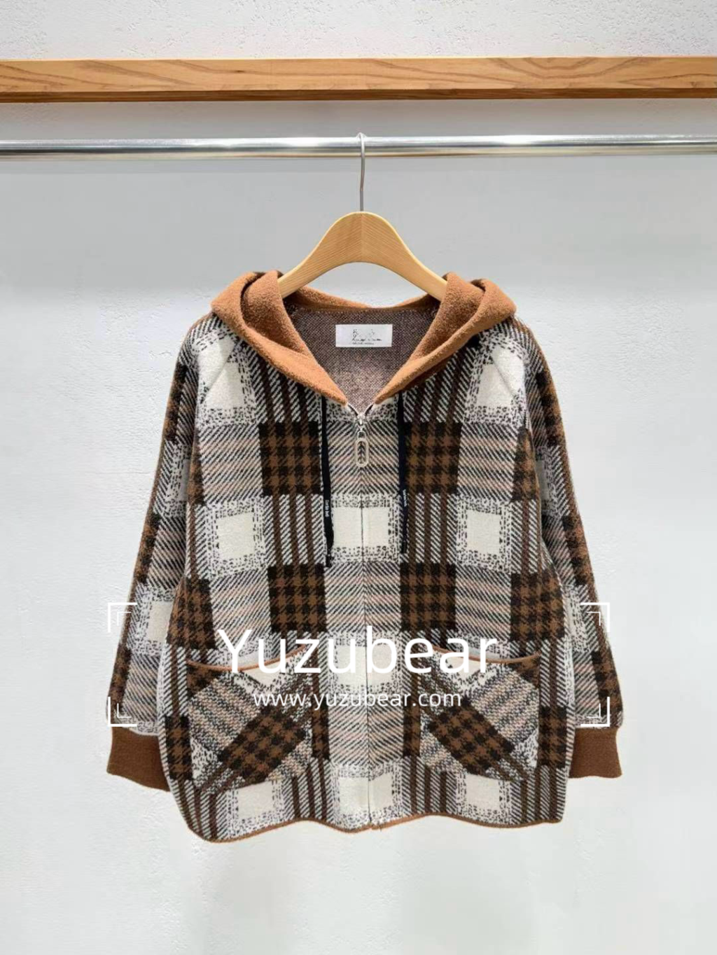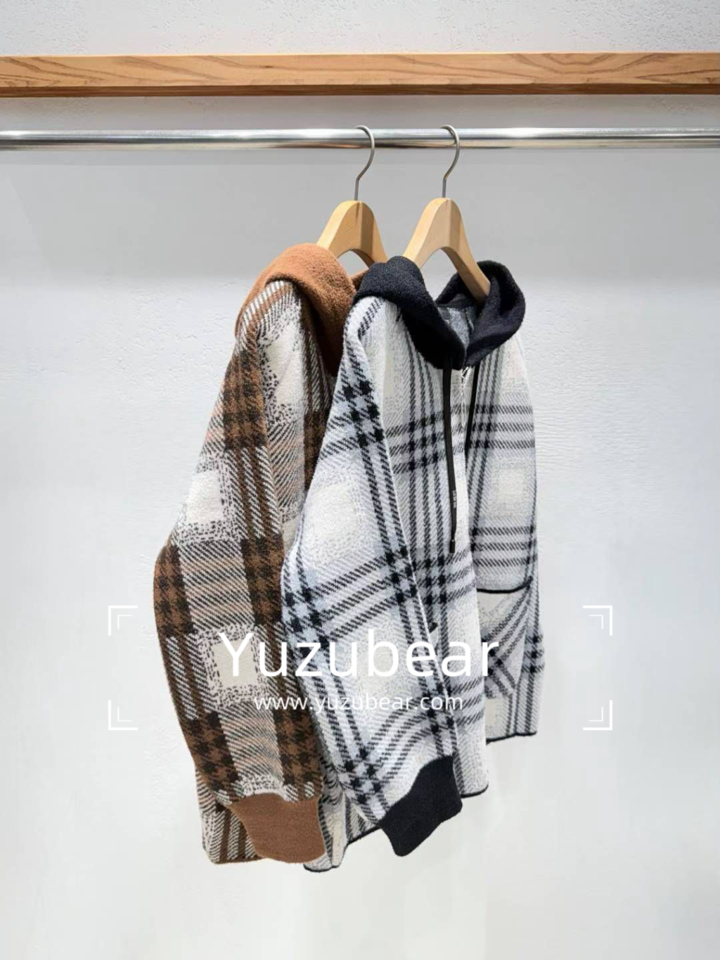 IA25 韓國高質格子連帽褸