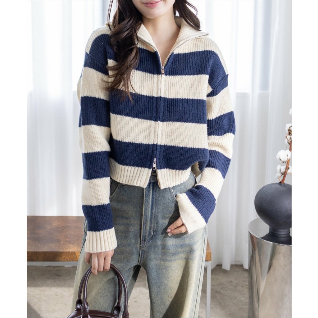 主頁 jc2 日本拼色間條冷衫拉鏈連帽外套
