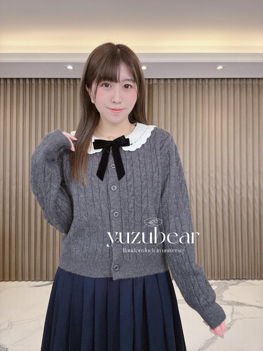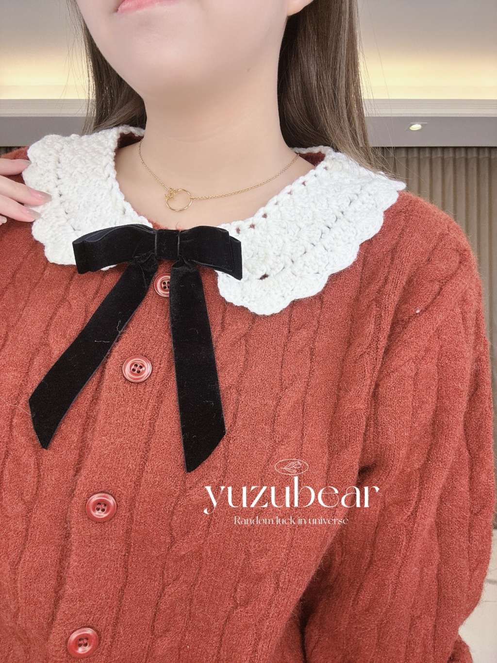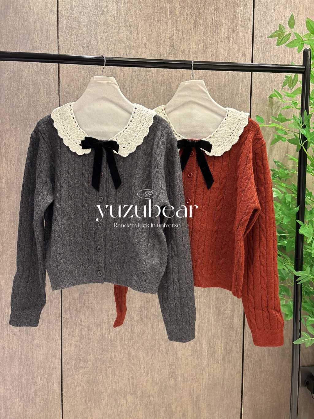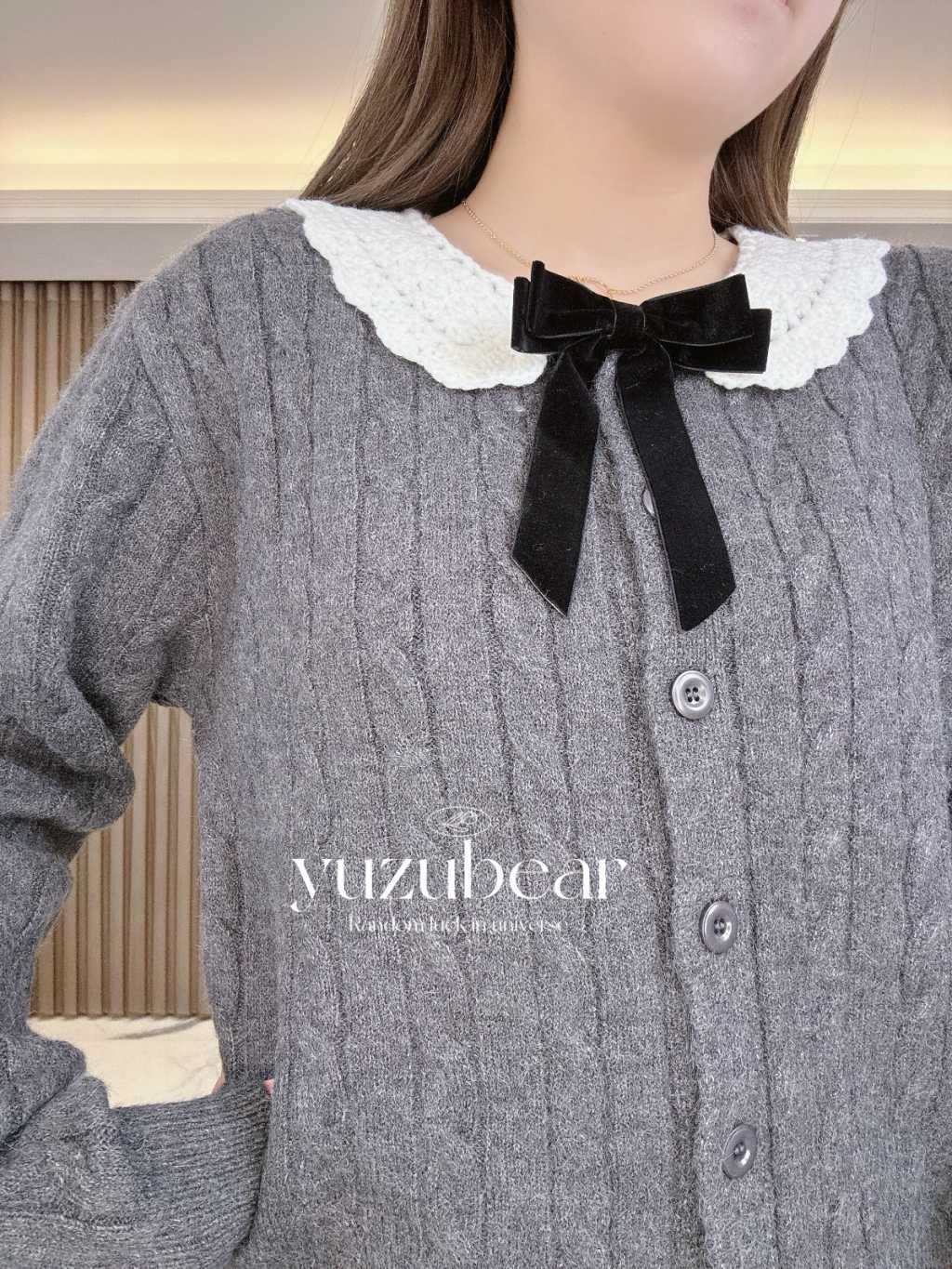 au114 韓國高質娃娃領麻花紐紋冷衫cardigan(絲帶蝴蝶結可拆)