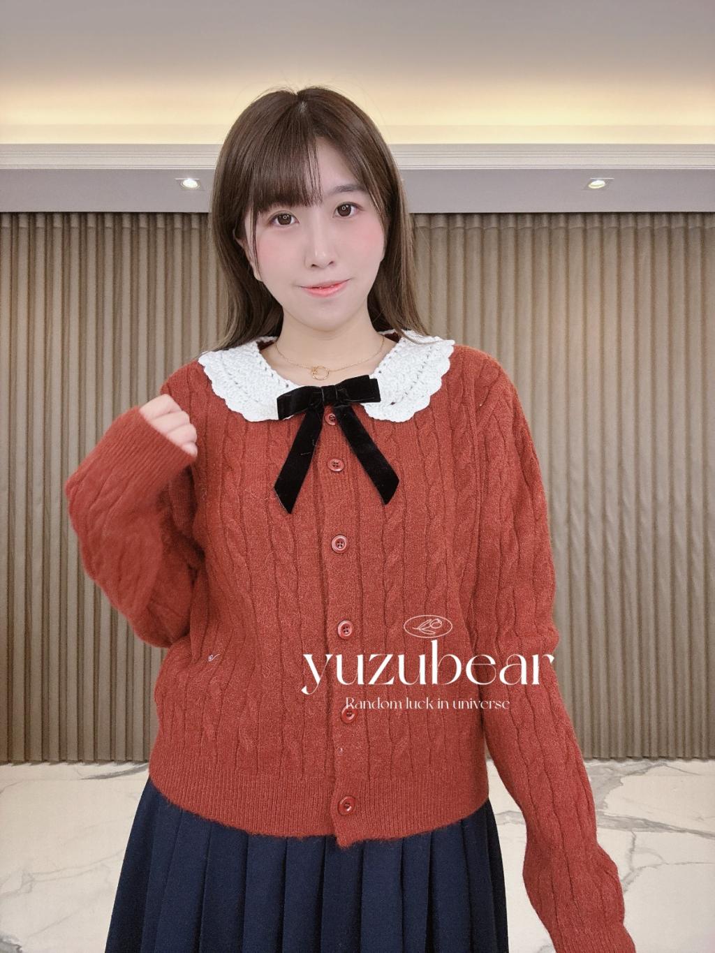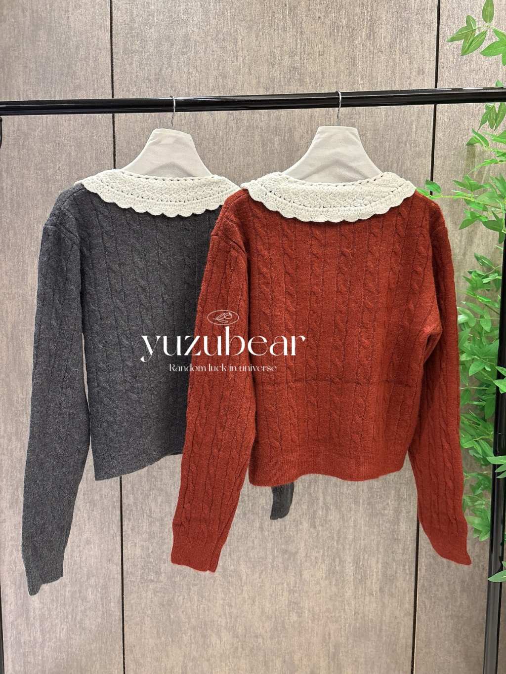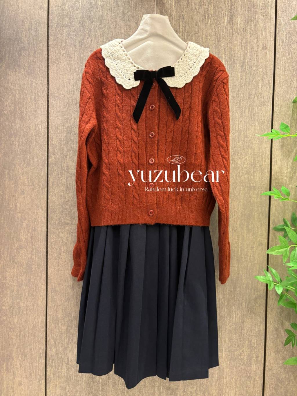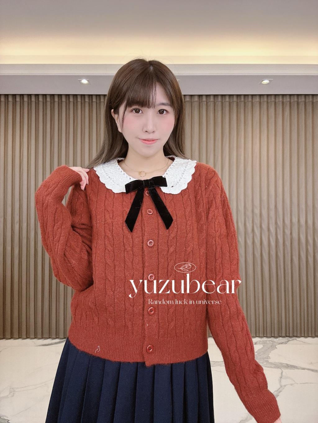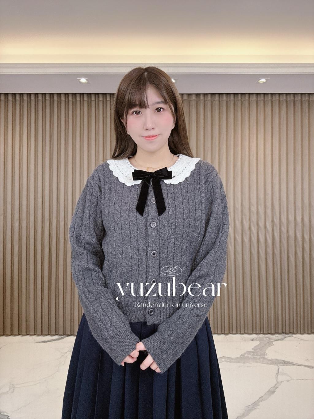 au114 韓國高質娃娃領麻花紐紋冷衫cardigan(絲帶蝴蝶結可拆)