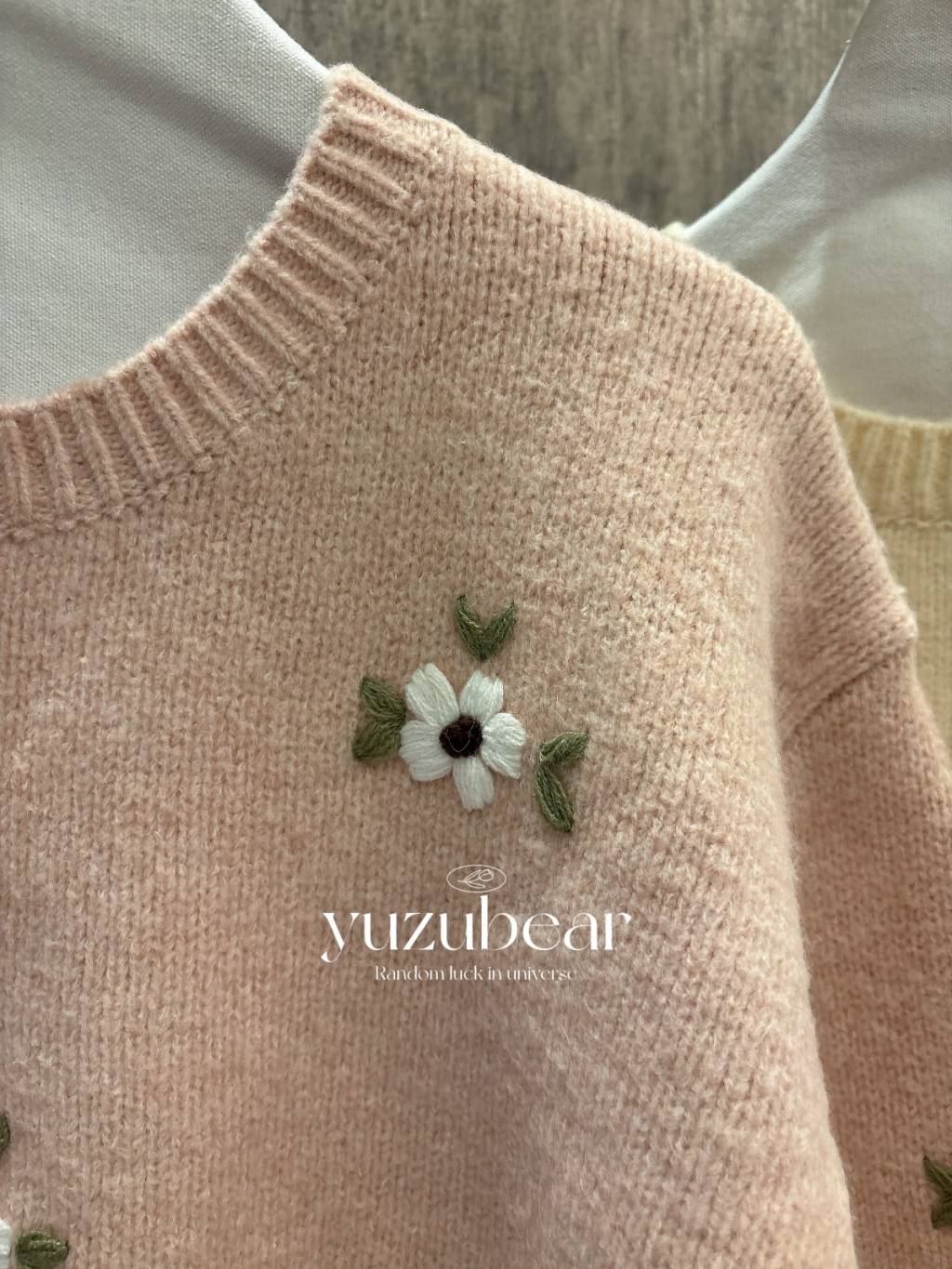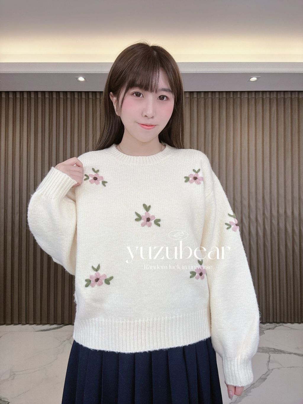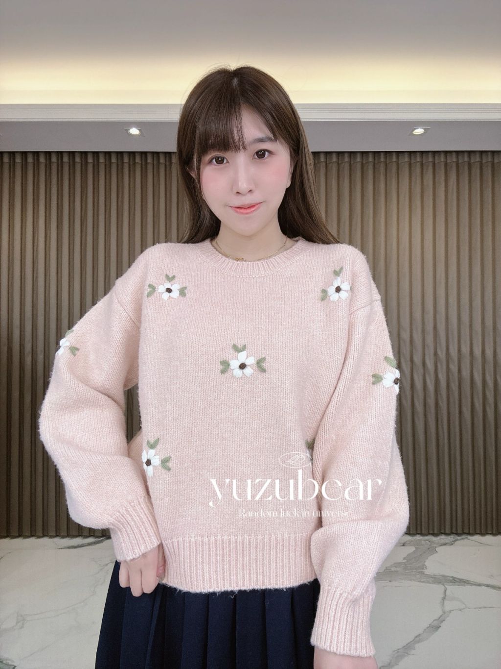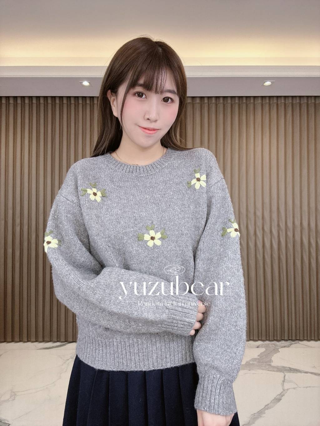 au115 韓國高質花花刺綉圓領冷衫(羊毛6%)