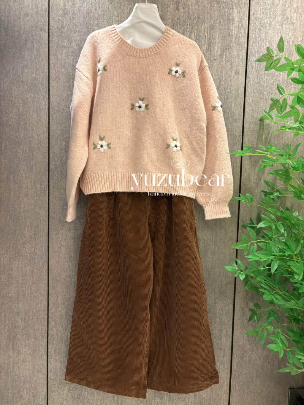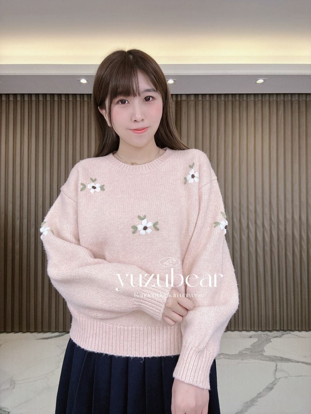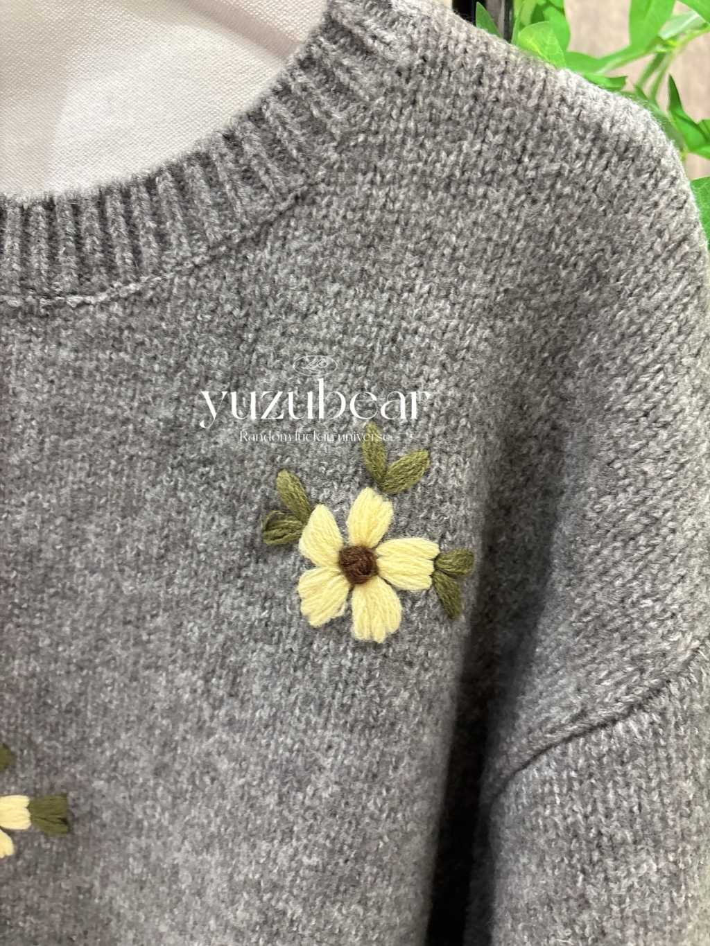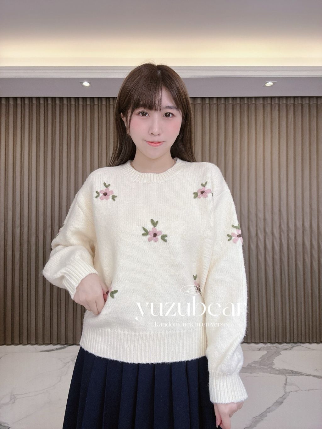 au115 韓國高質花花刺綉圓領冷衫(羊毛6%)