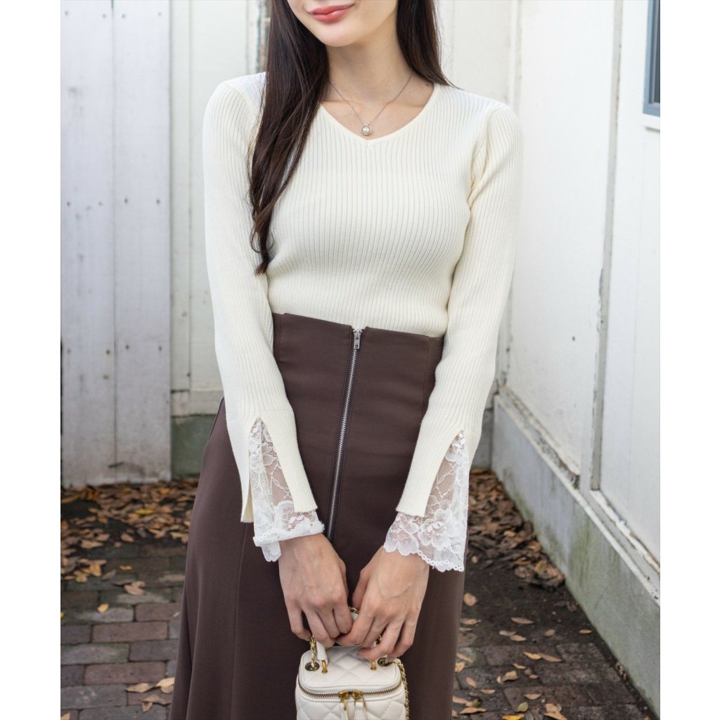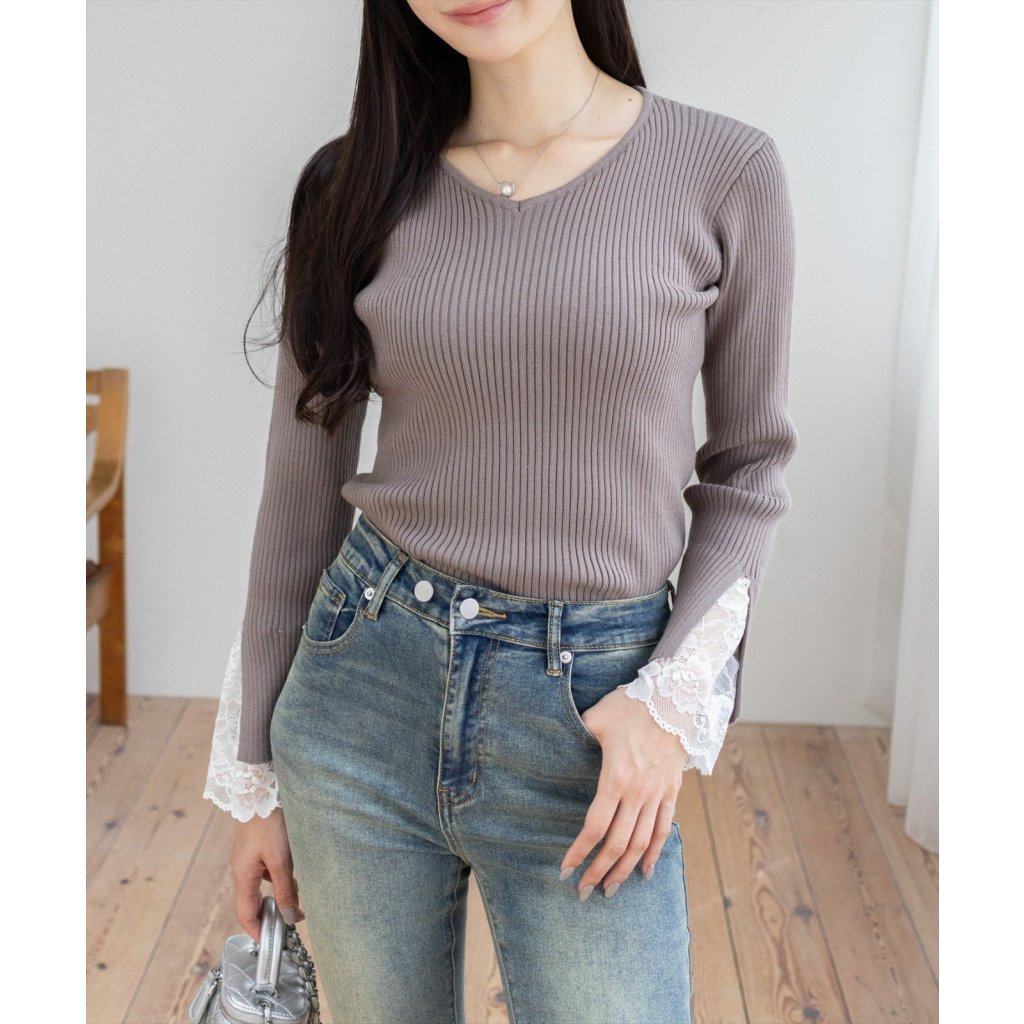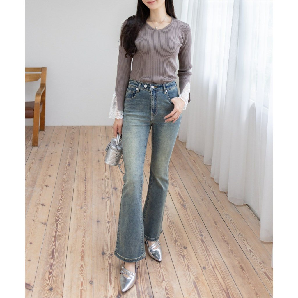 jc30 日本百搭lace喇叭袖彈性針織上衣