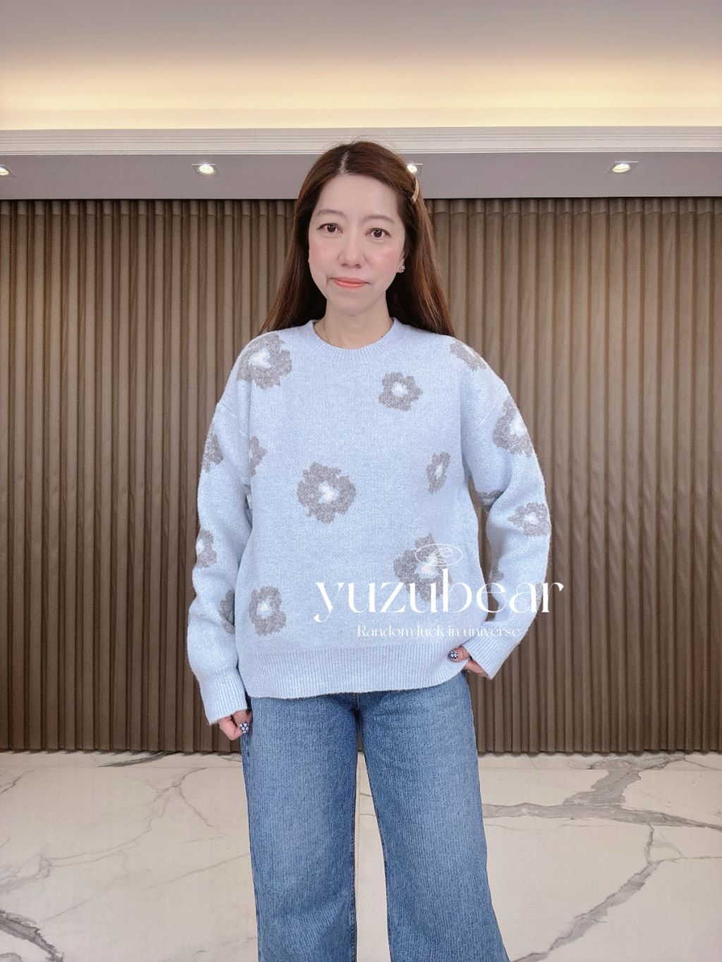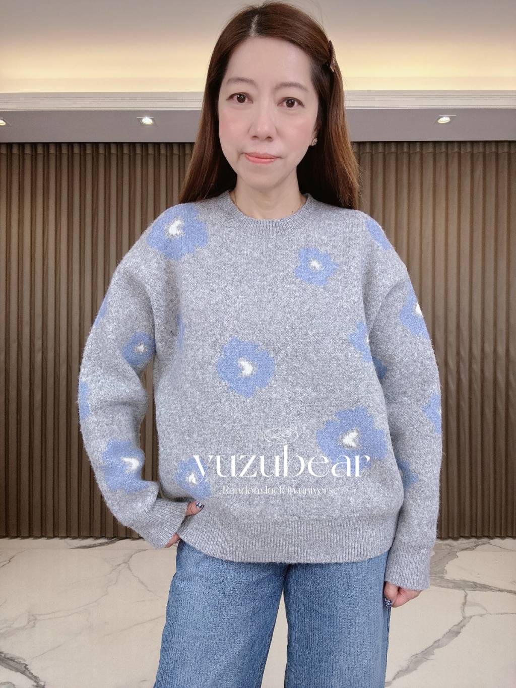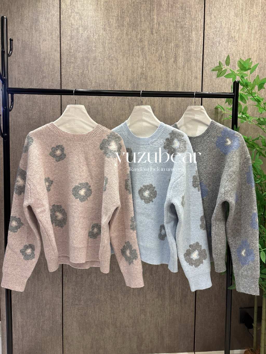 au116 韓國高質大花花圓領冷衫(羊毛6%)