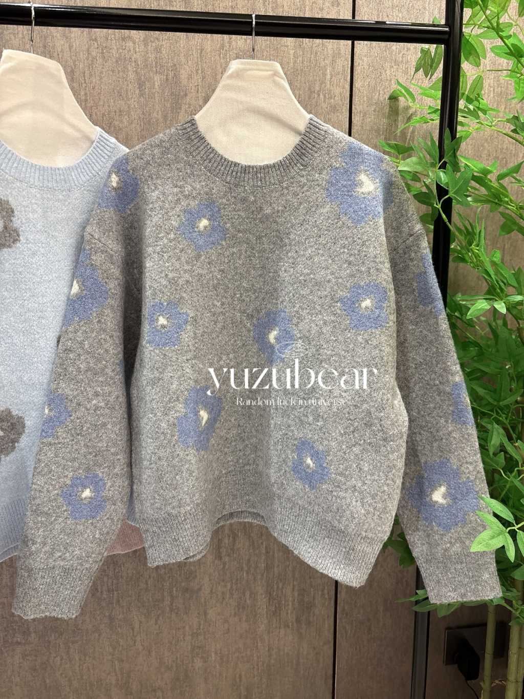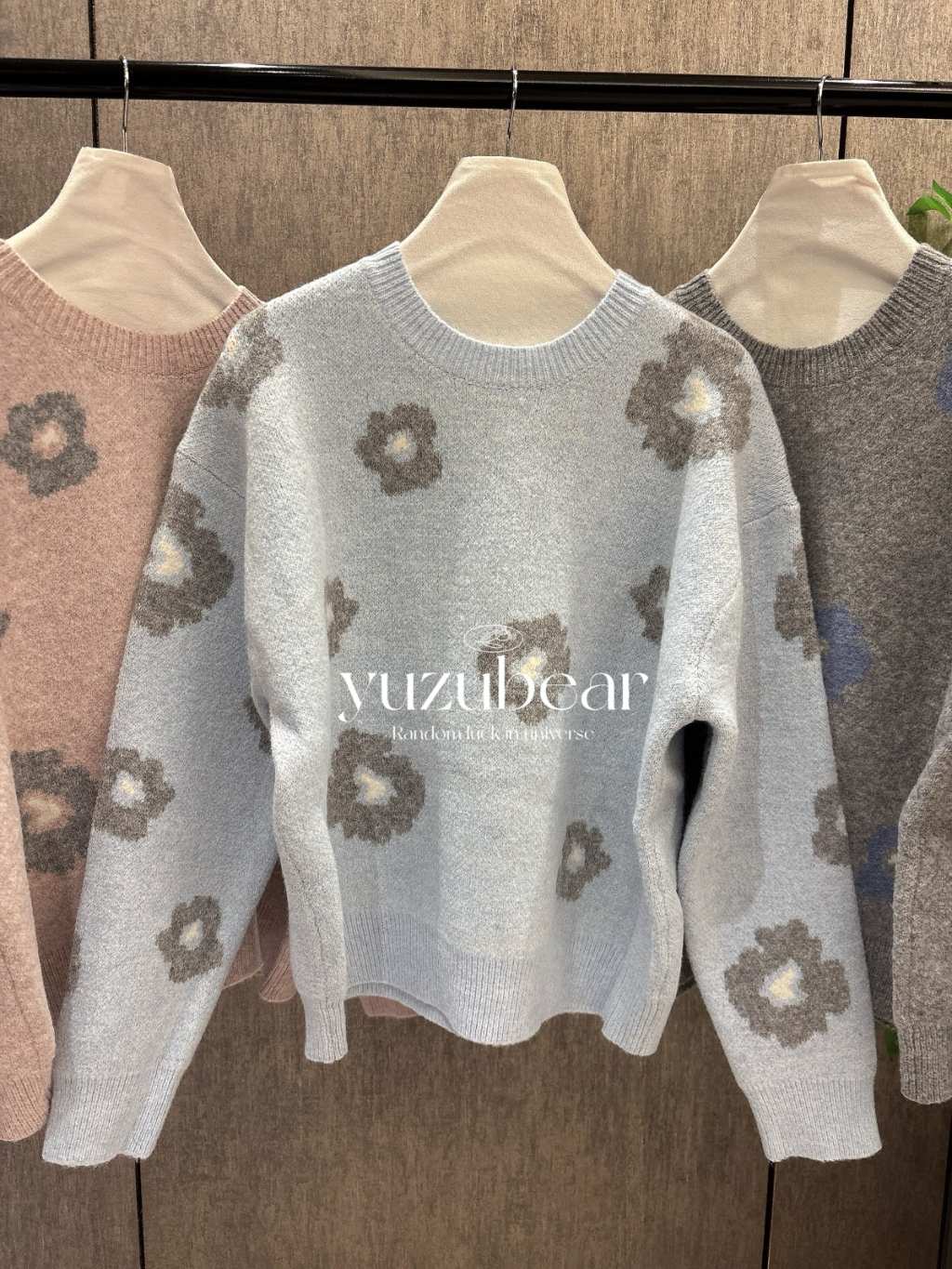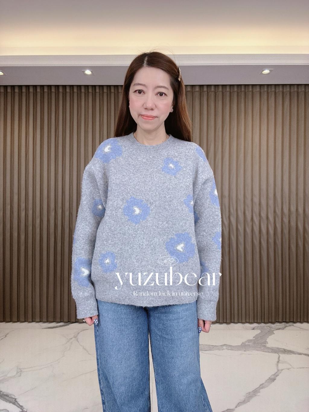 au116 韓國高質大花花圓領冷衫(羊毛6%)