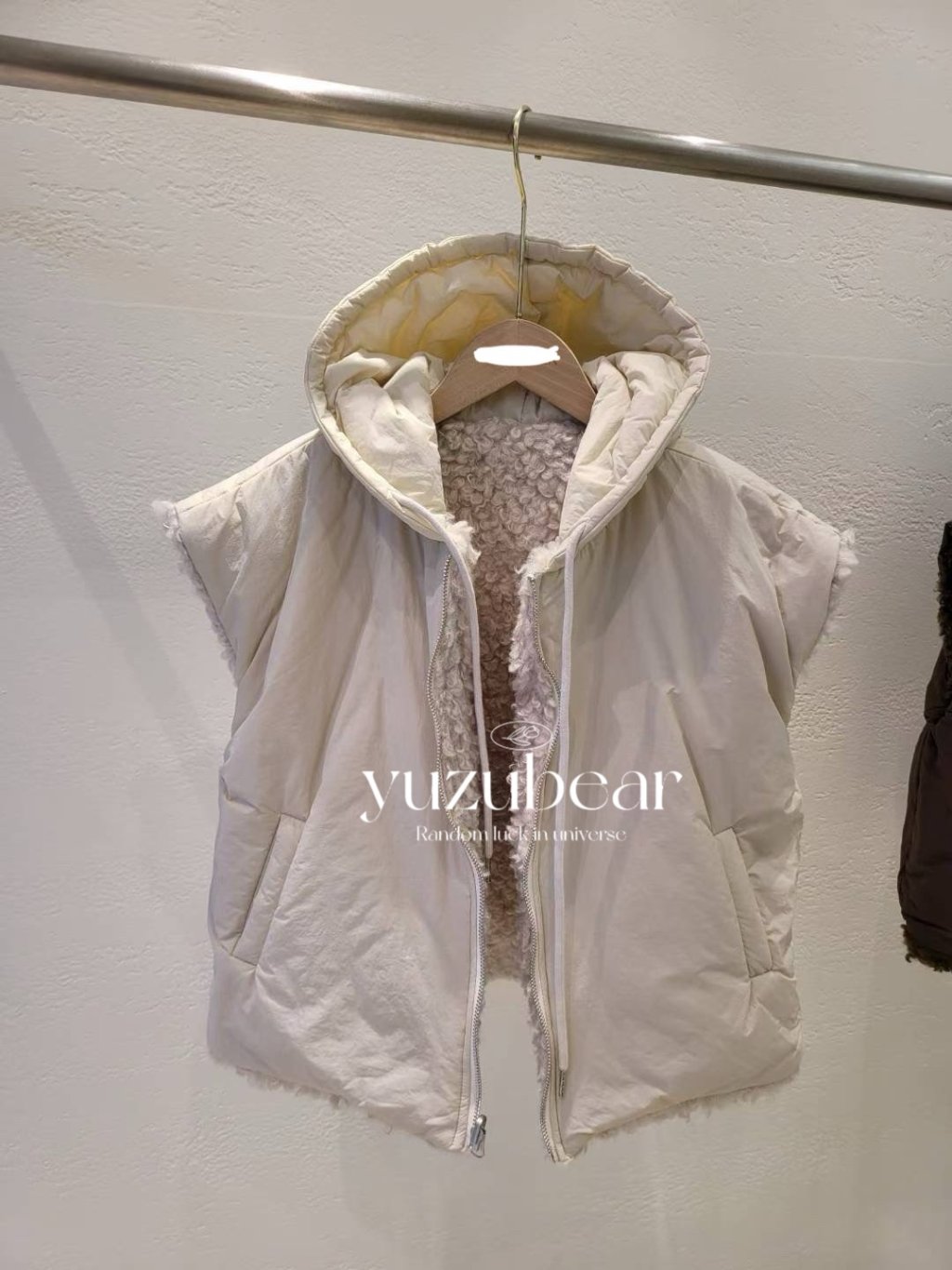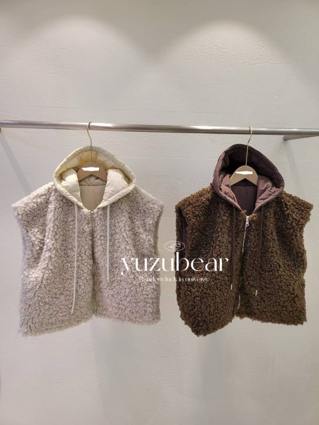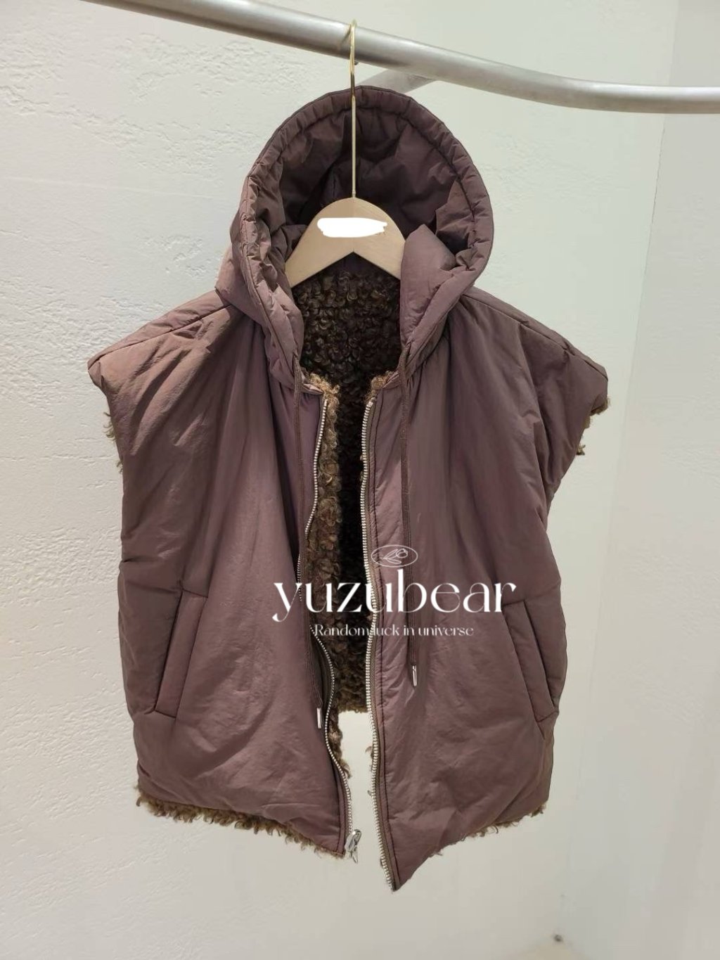 AU126 韓國高質雙面人造毛格棉連帽背心外套 ❤️一口優惠價 ❤️