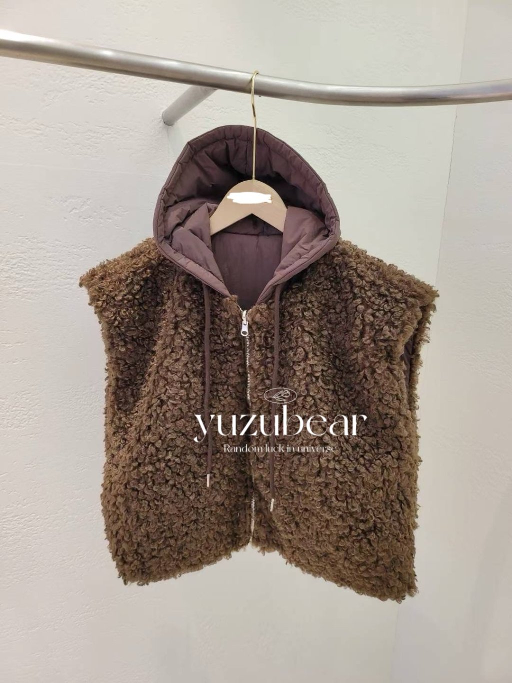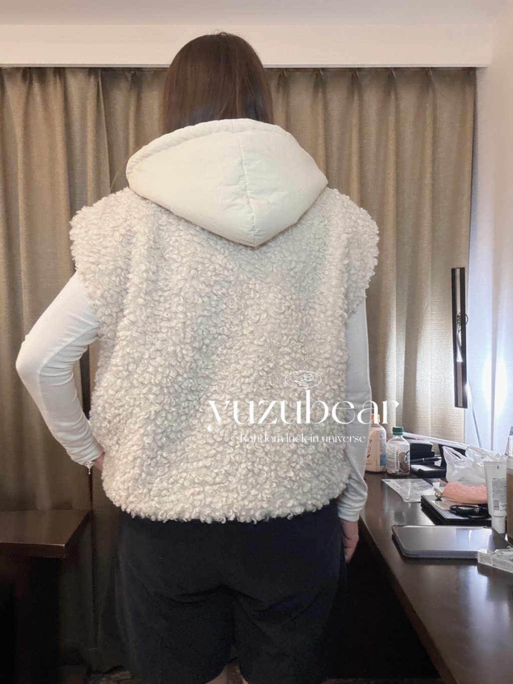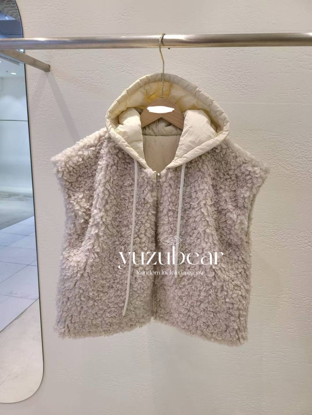 AU126 韓國高質雙面人造毛格棉連帽背心外套 ❤️一口優惠價 ❤️