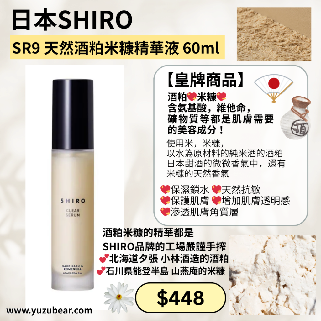 主頁 SR9 日本SHIRO 天然酒粕米糠精華液 60ml
