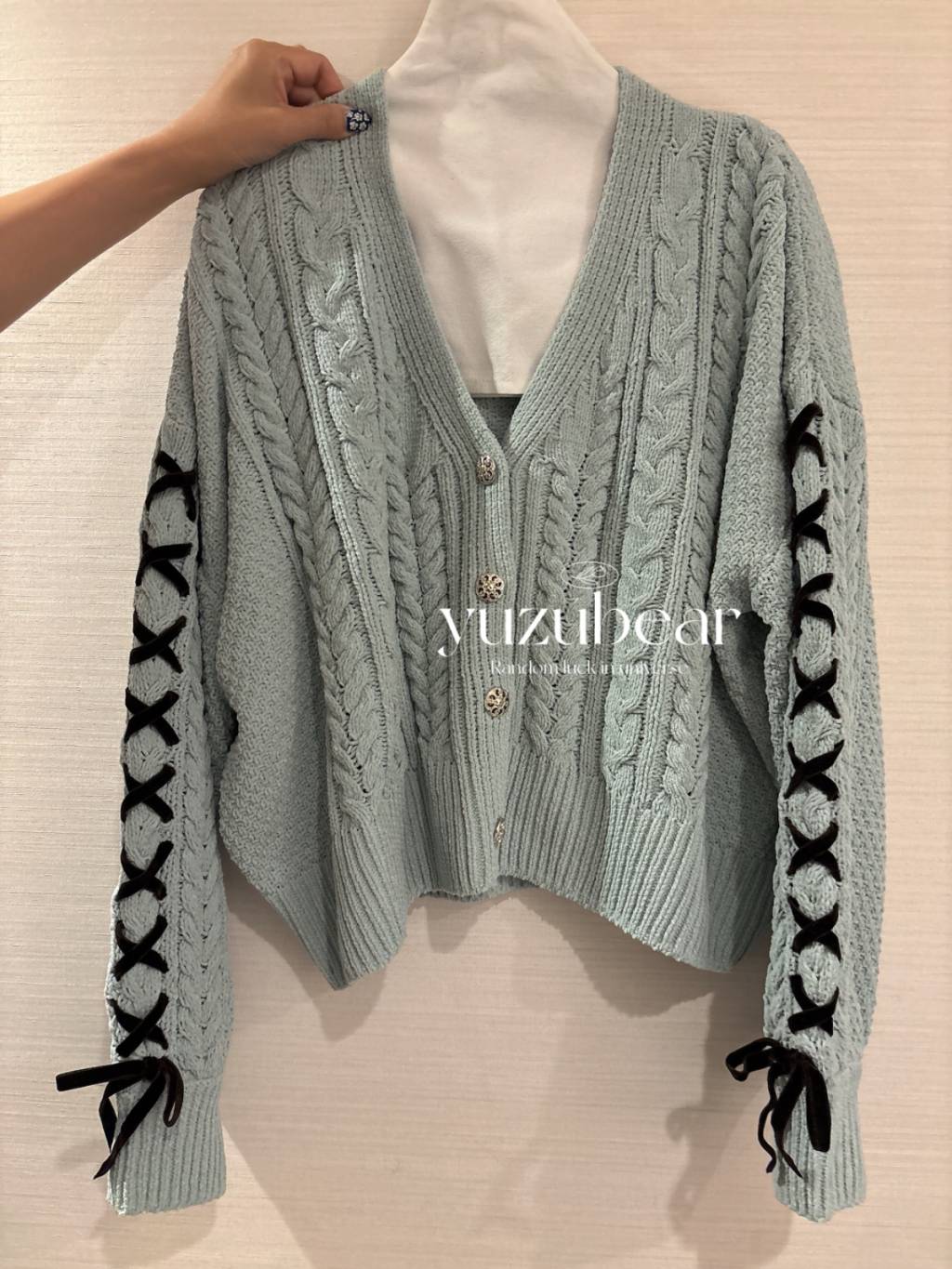 JS7 日本高質 Ribbon 麻花紐紋絲絨冷開胸外套