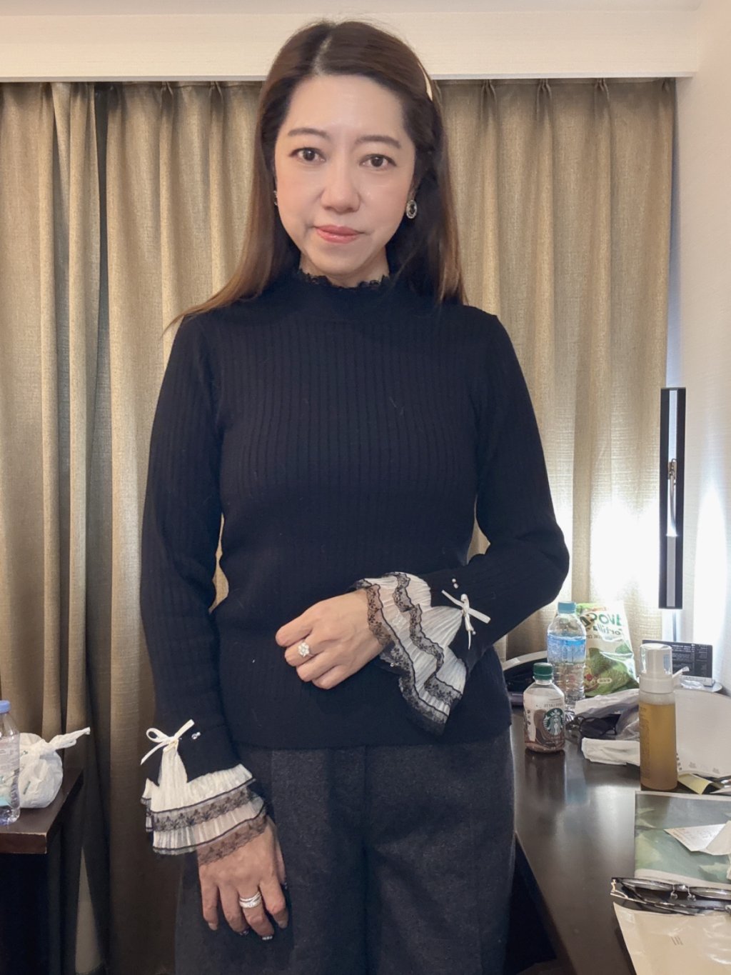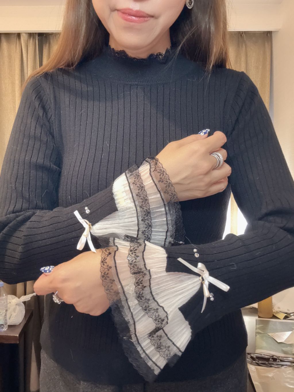 JS8 日本高質 Lace袖亢紋彈性上衣