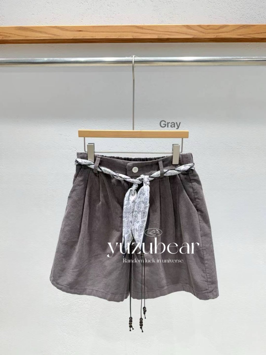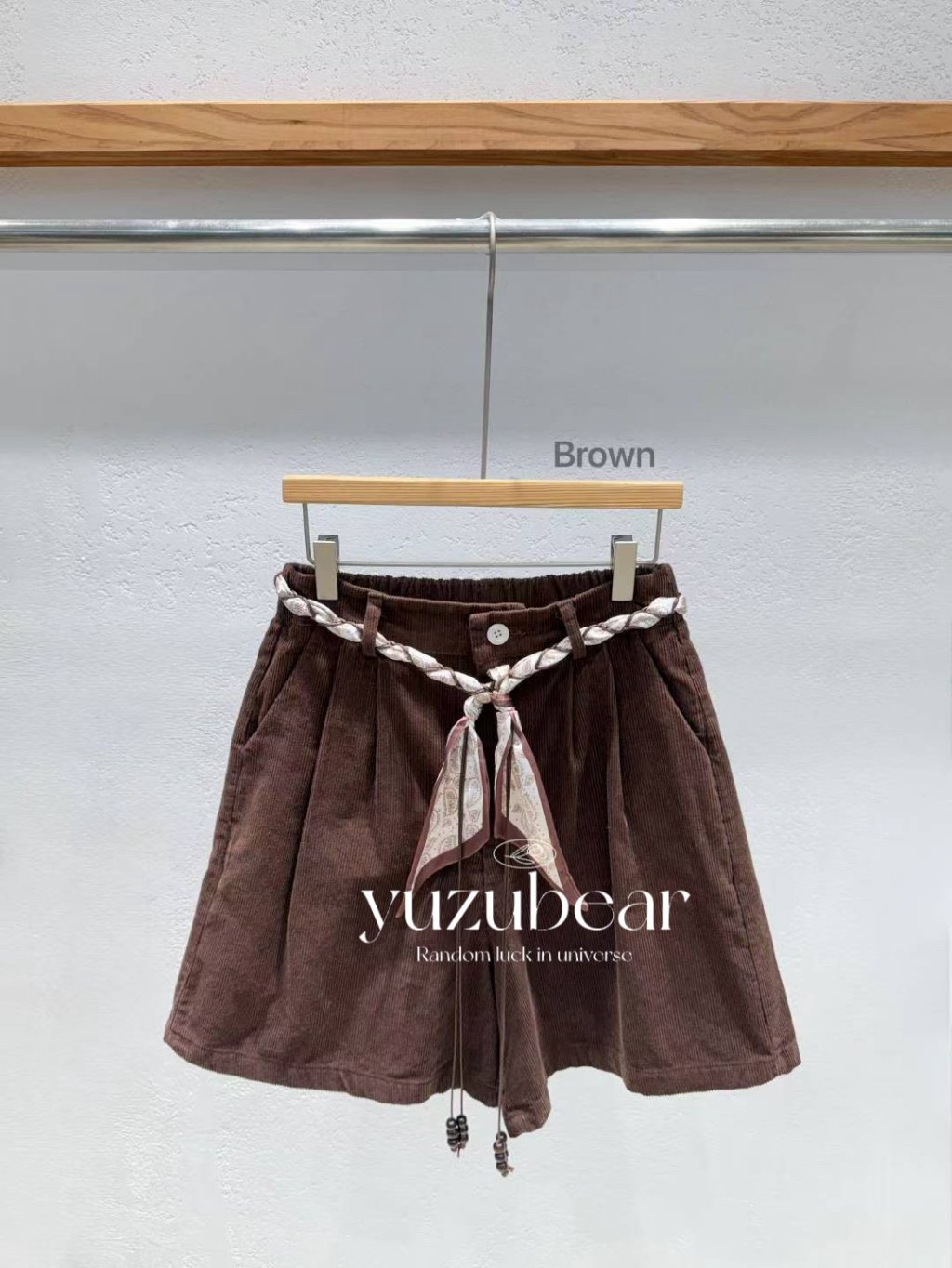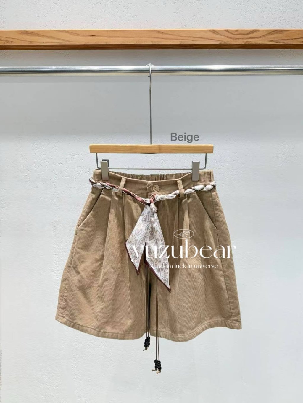 IA45 韓國高質幼民族風燈芯絨短褲(附送民族風腰帶)