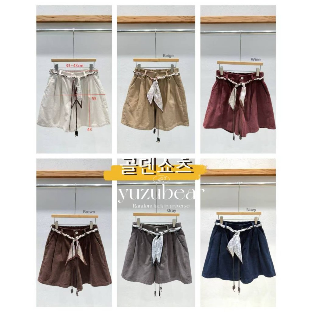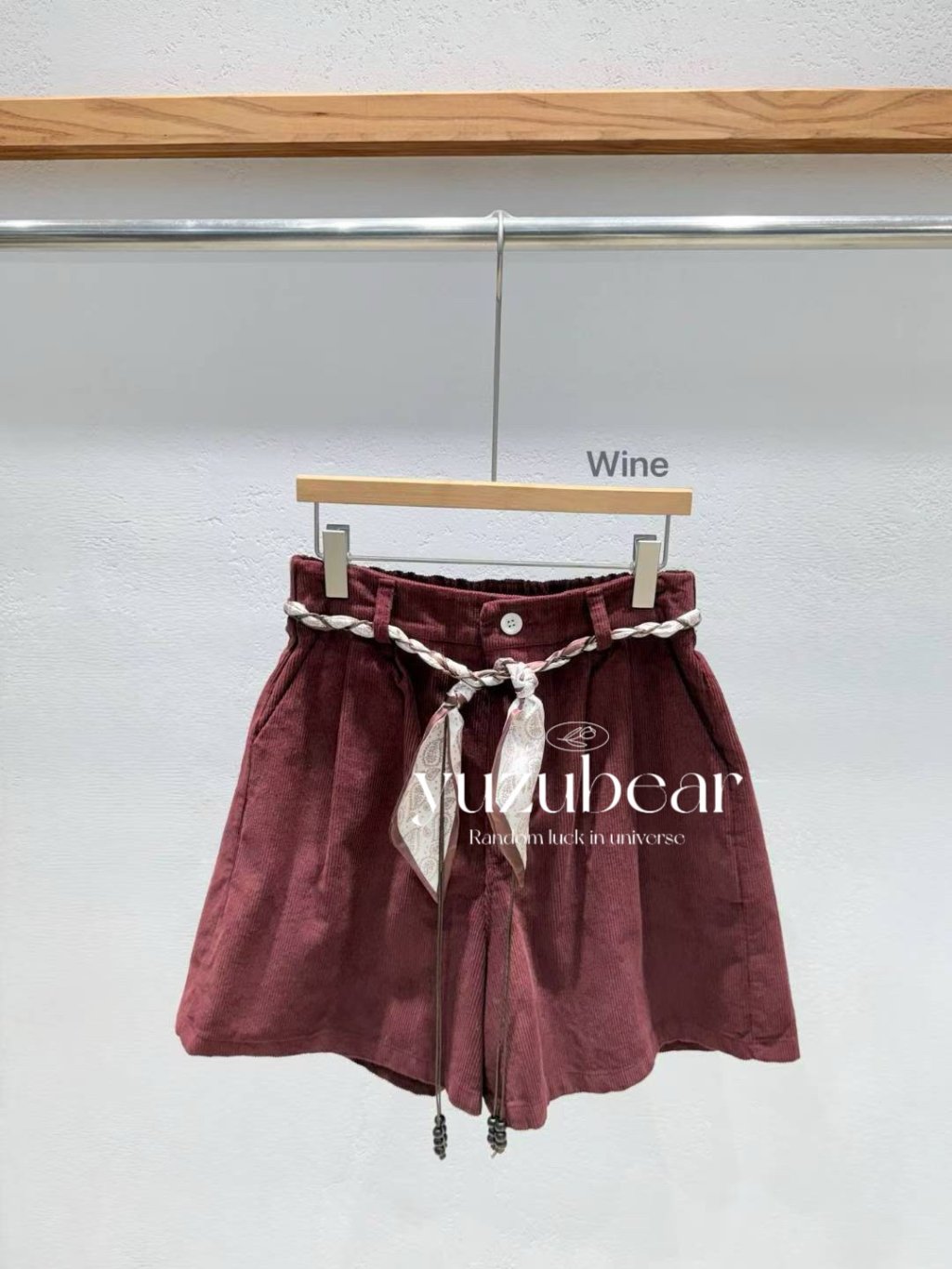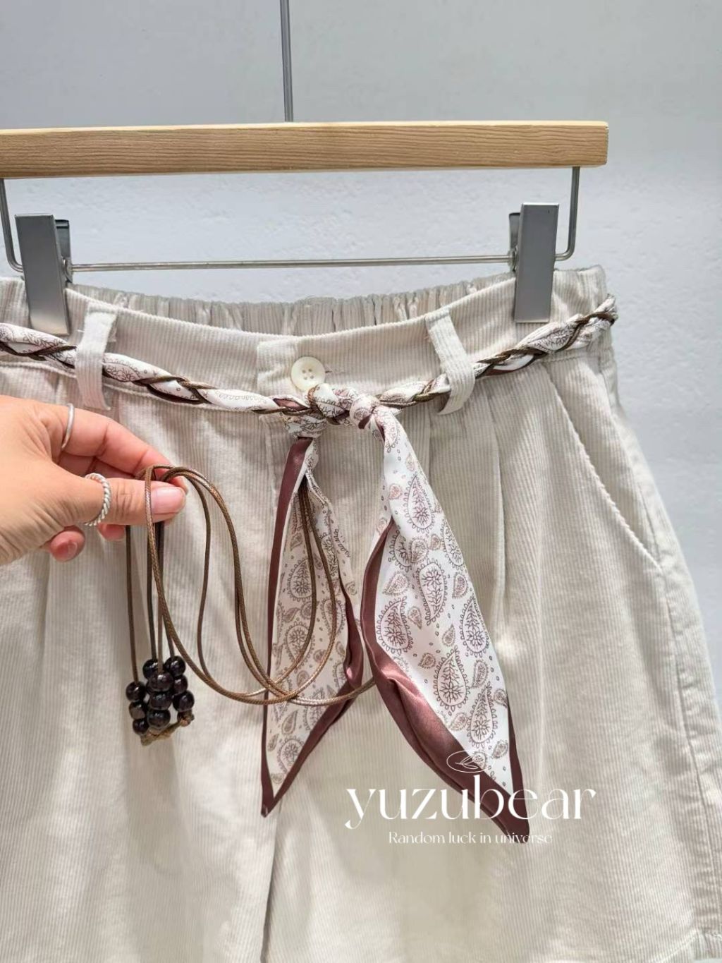 IA45 韓國高質幼民族風燈芯絨短褲(附送民族風腰帶)