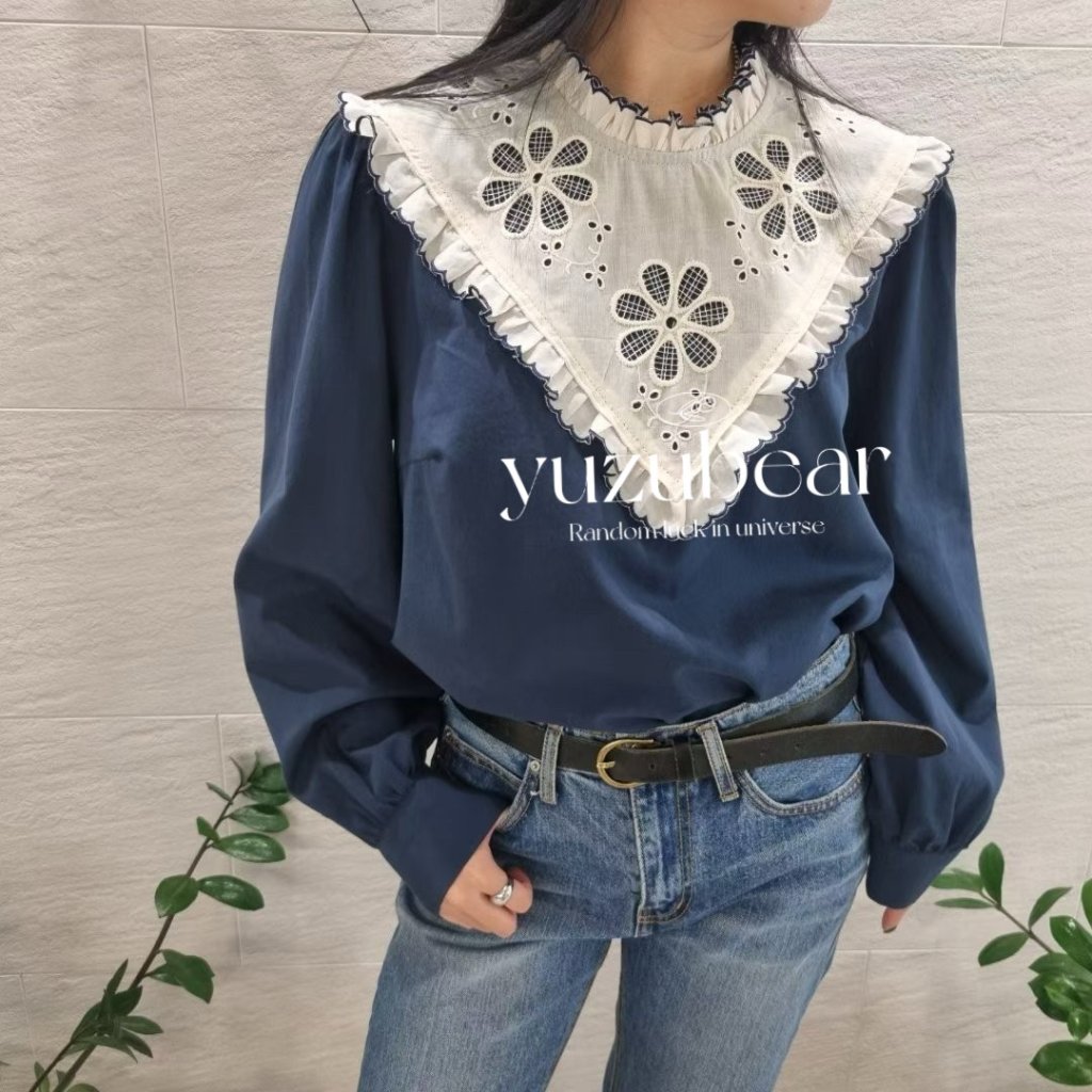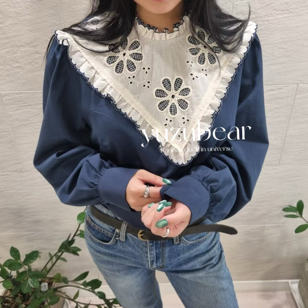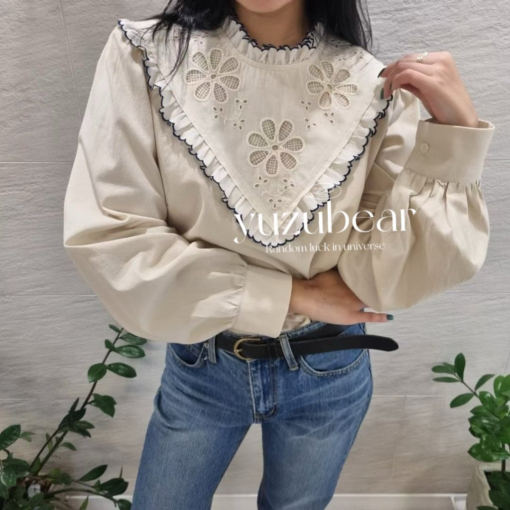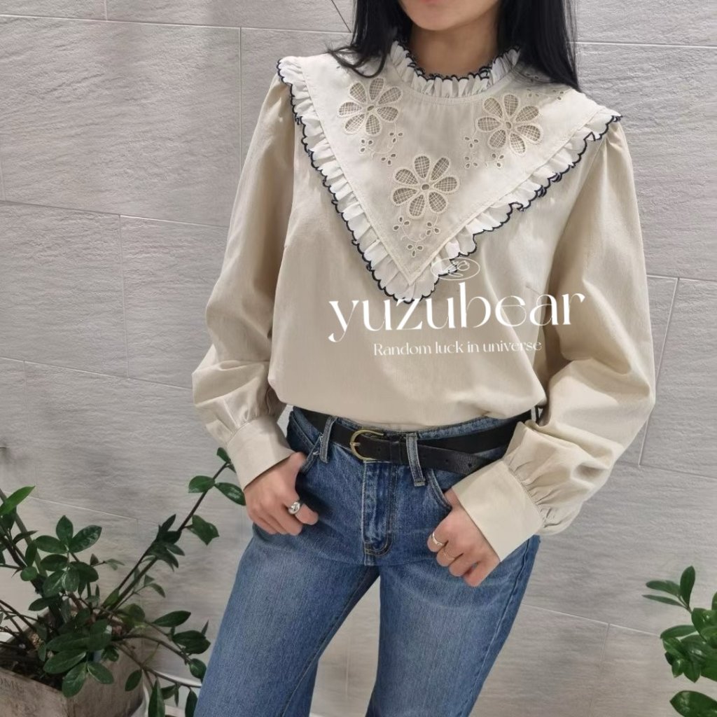 BD38 韓國高質通花daisy刺綉raffle邊blouse