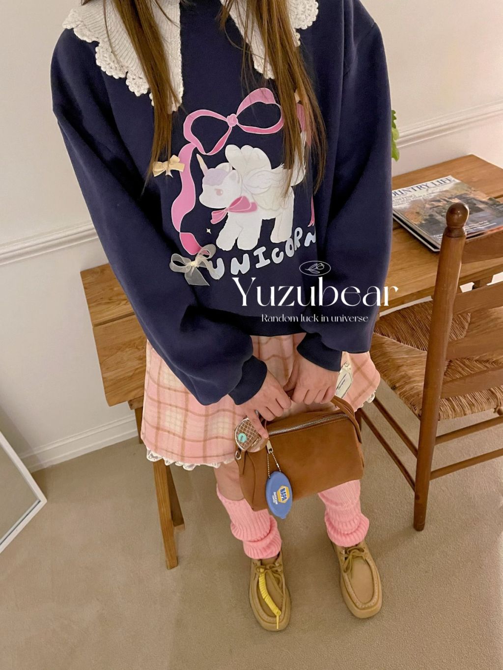 主頁 BQ9 韓國高質夢幻獨角獸編織冷領薄毛底衛衣