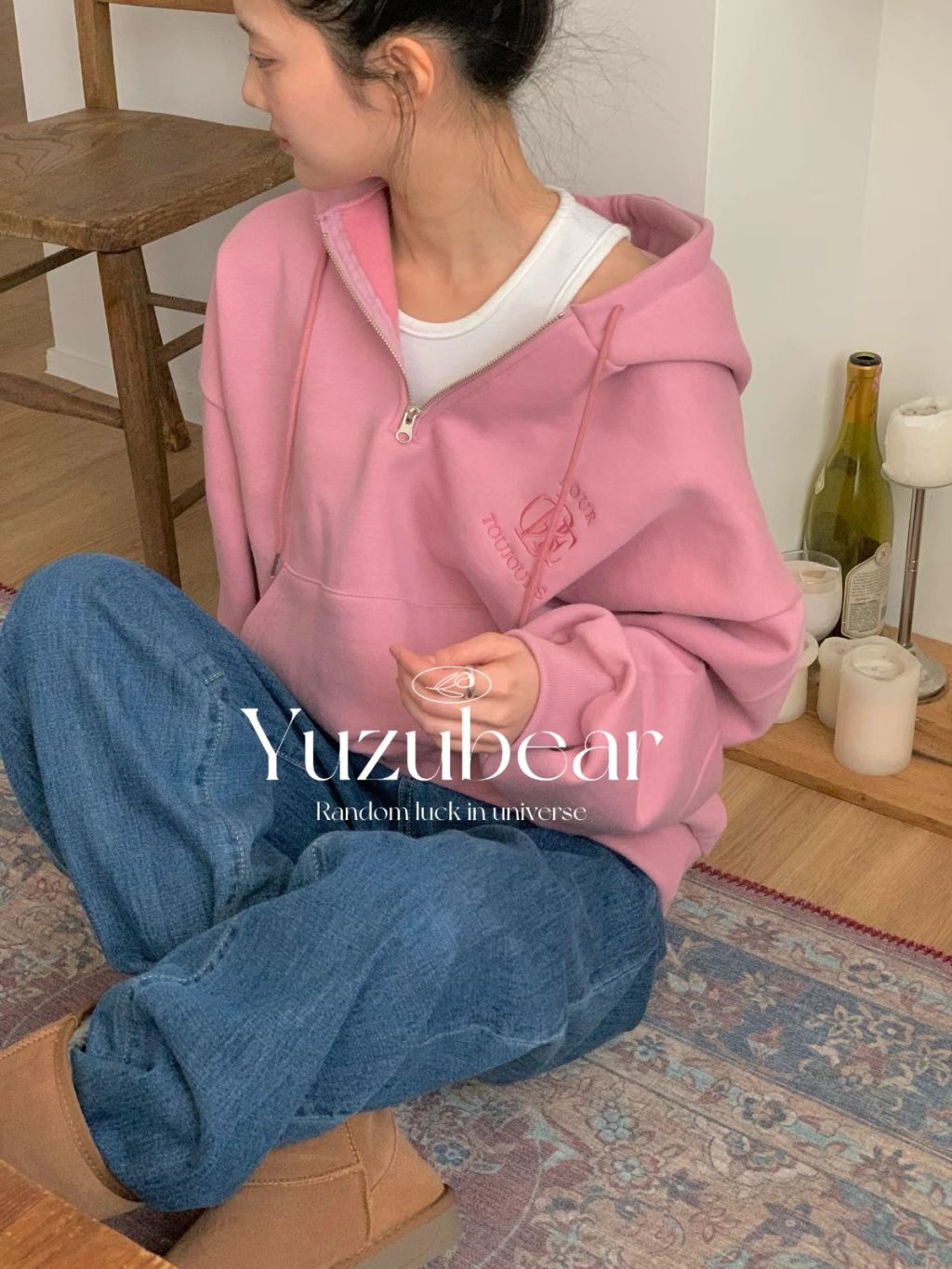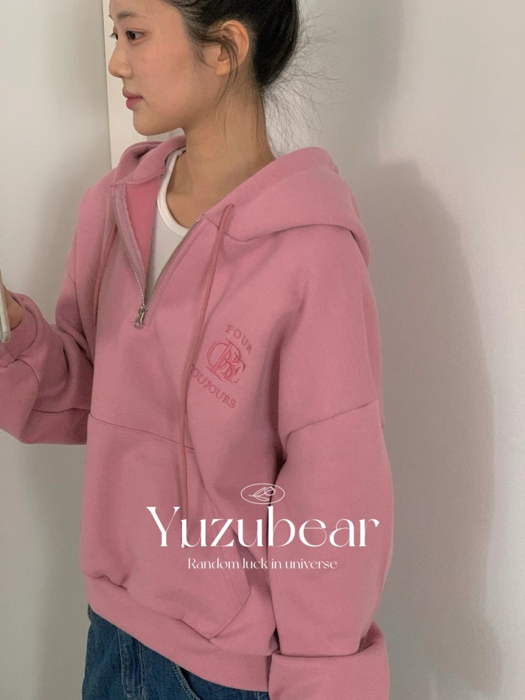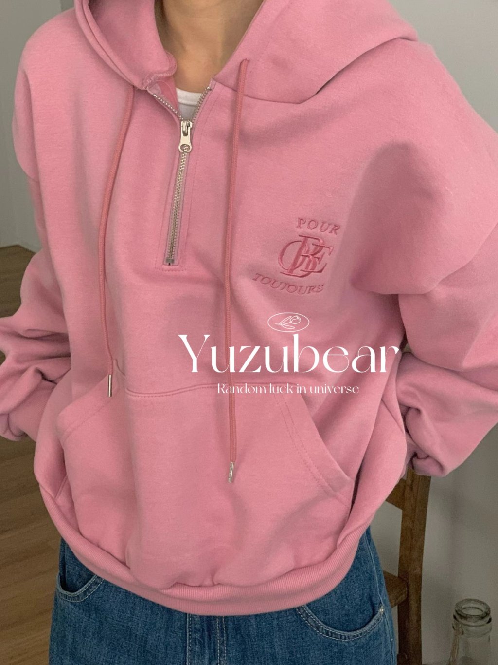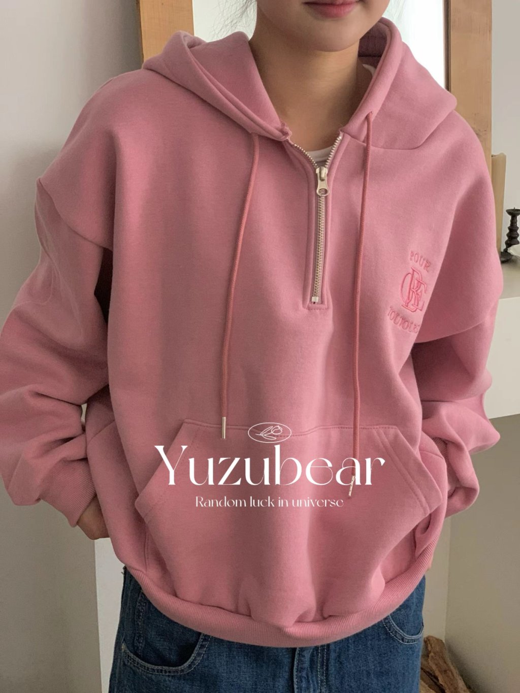 SW8 韓國高質毛底混棉刺綉半拉鏈連帽衛衣