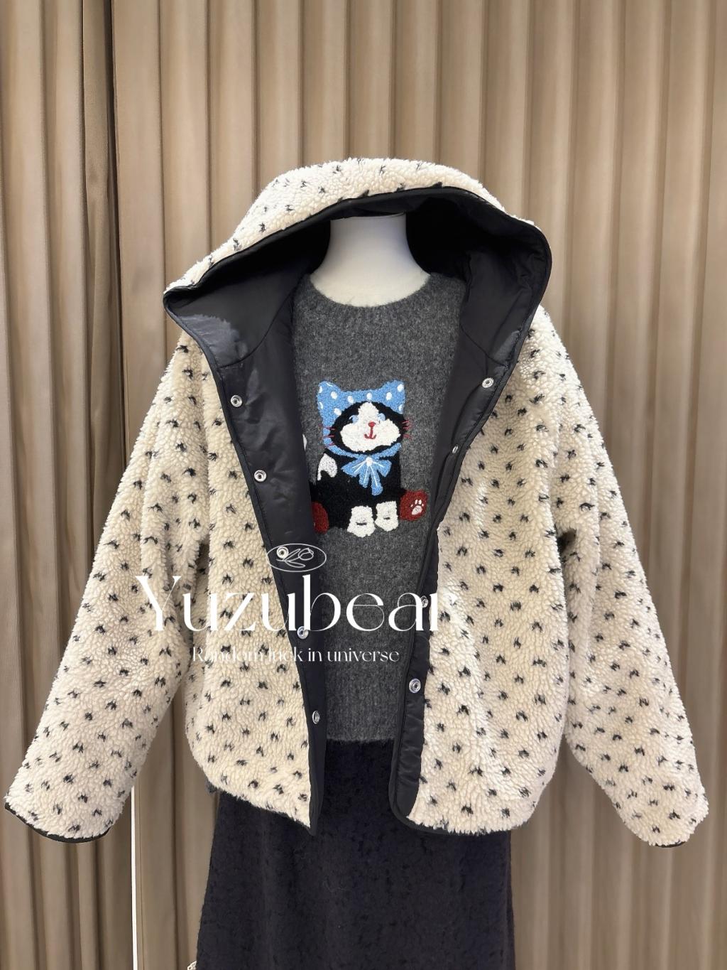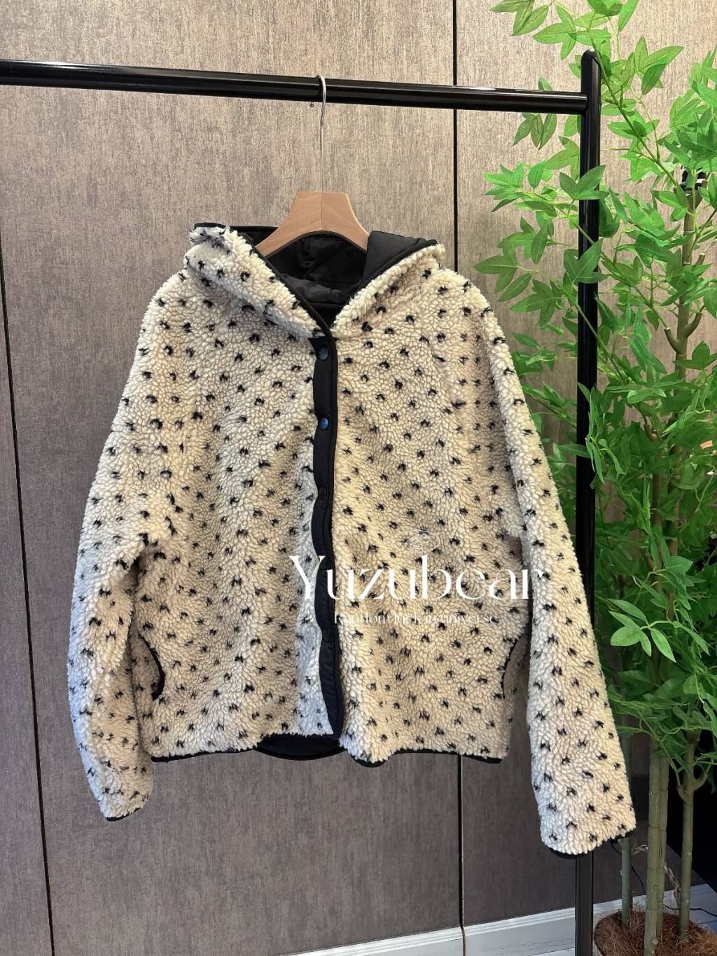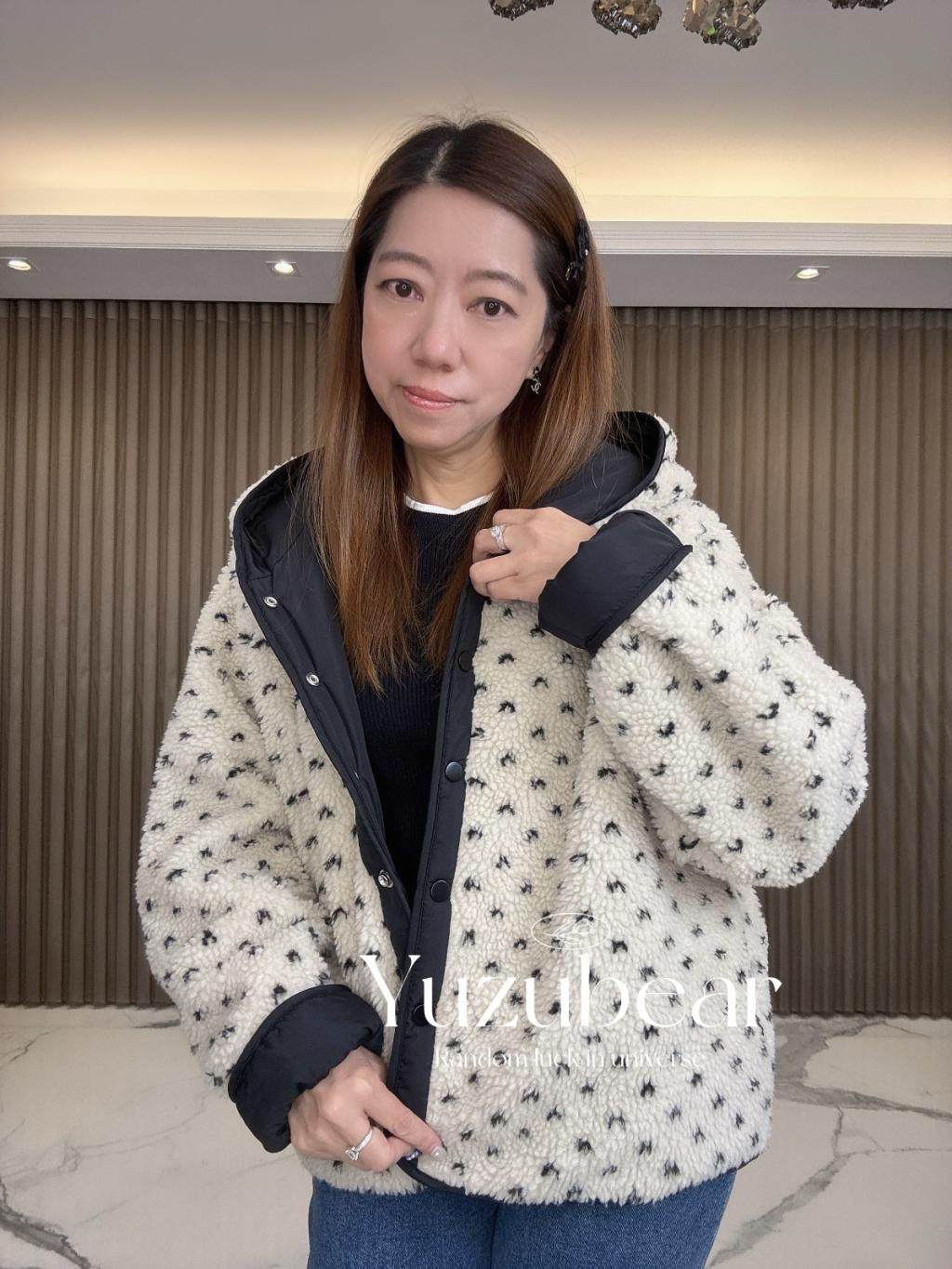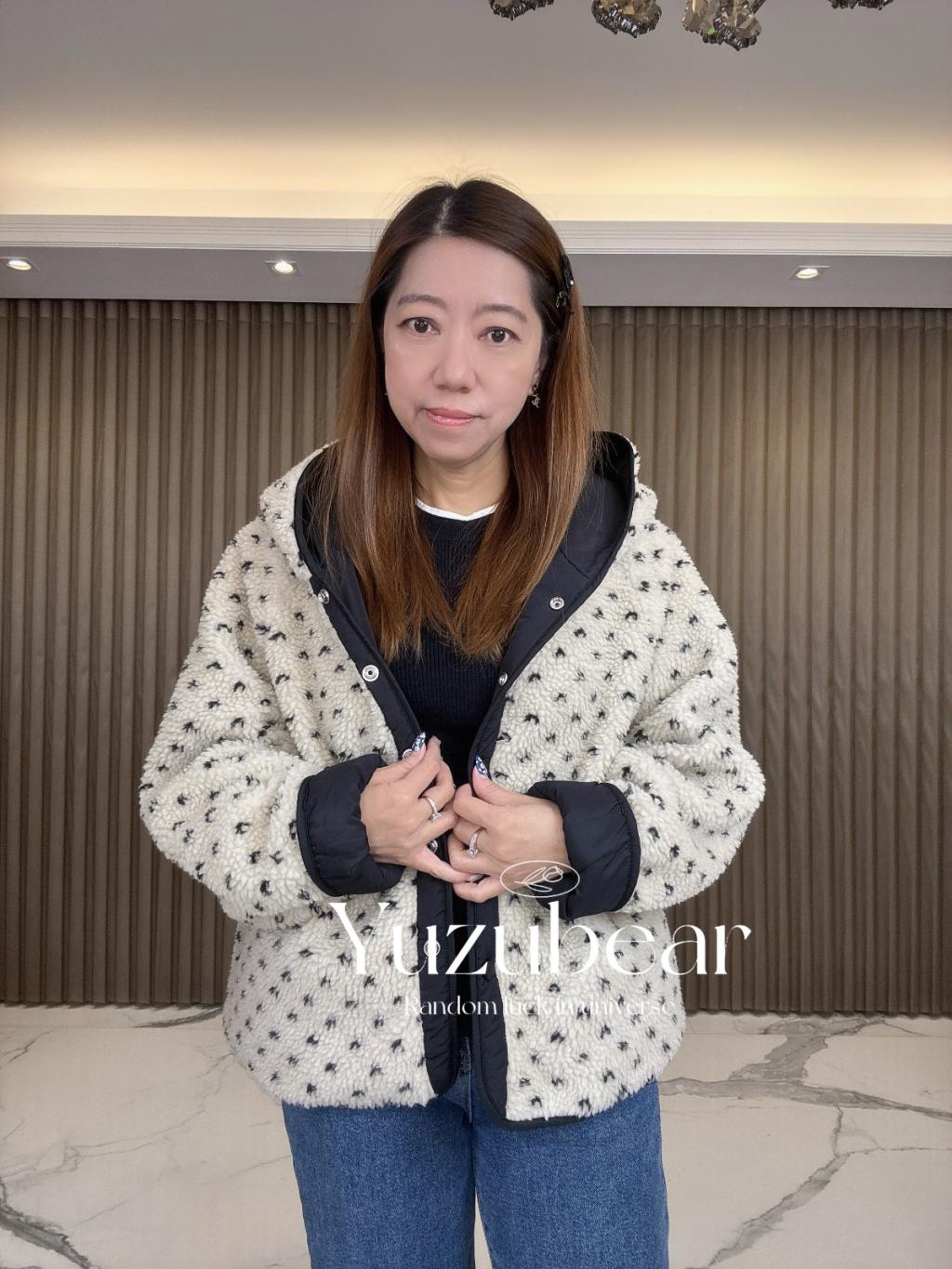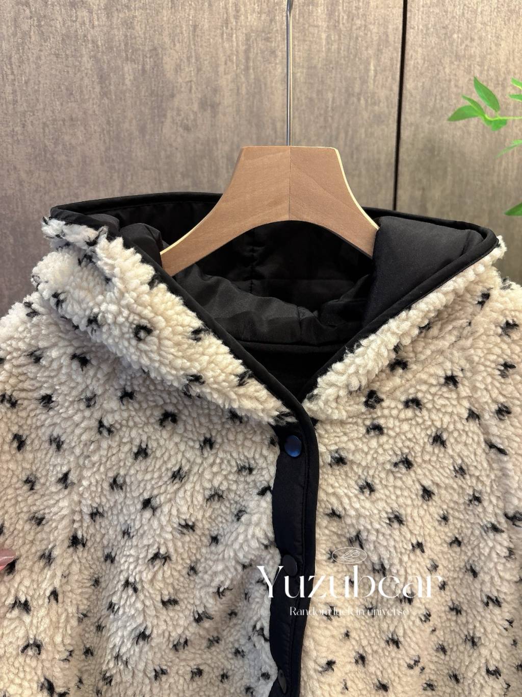 AU144 韓國高質波點羊羔毛雙面連帽外套