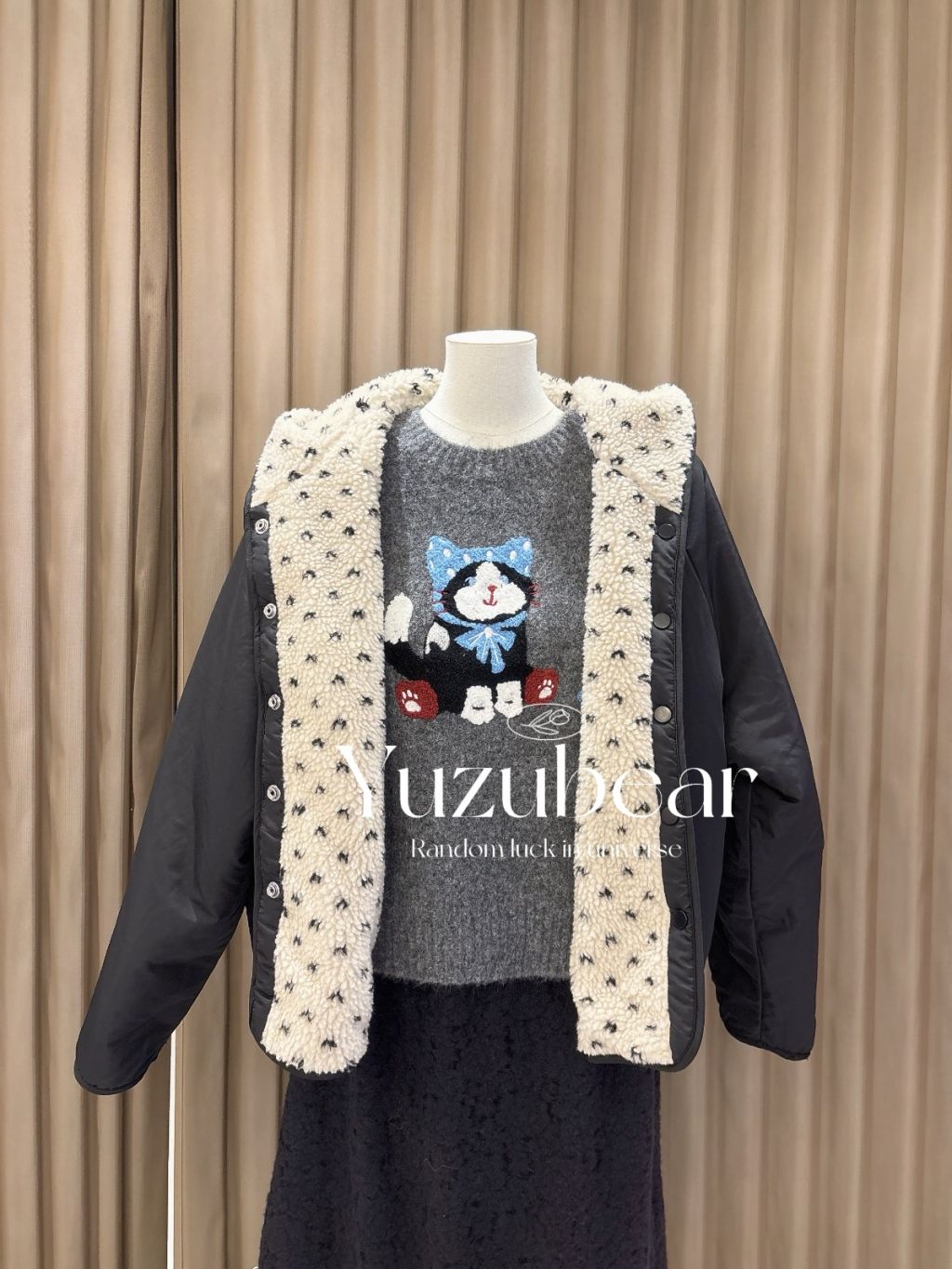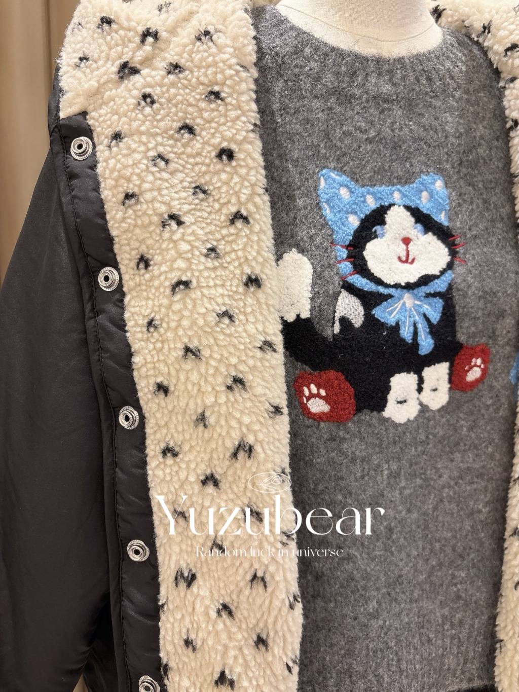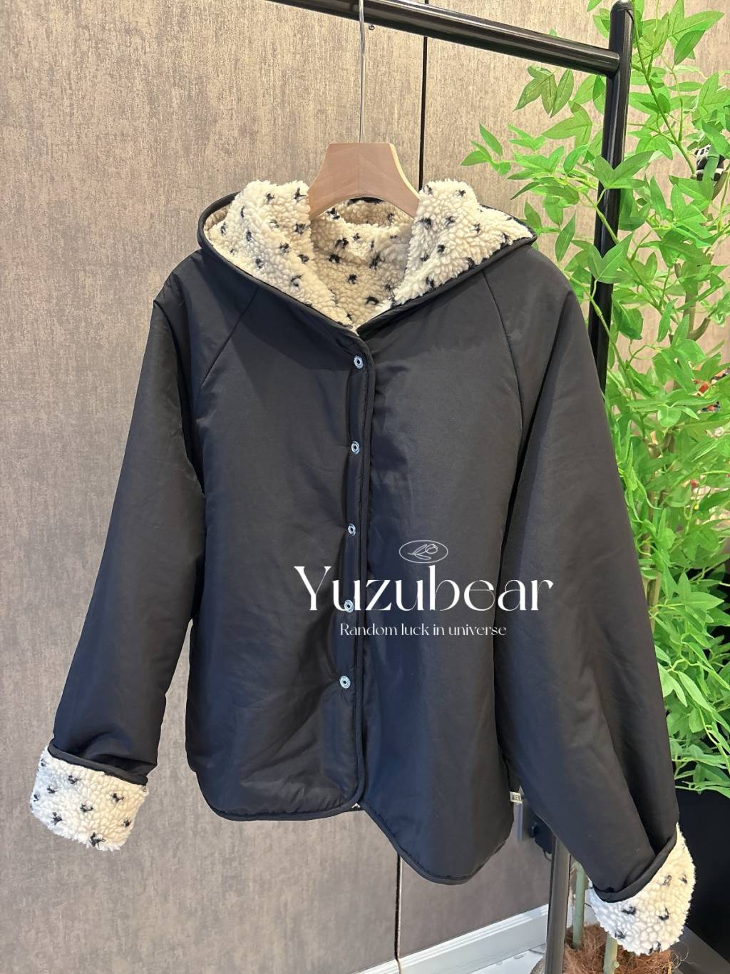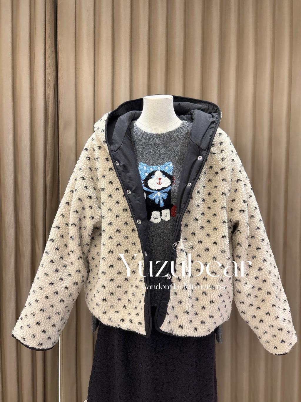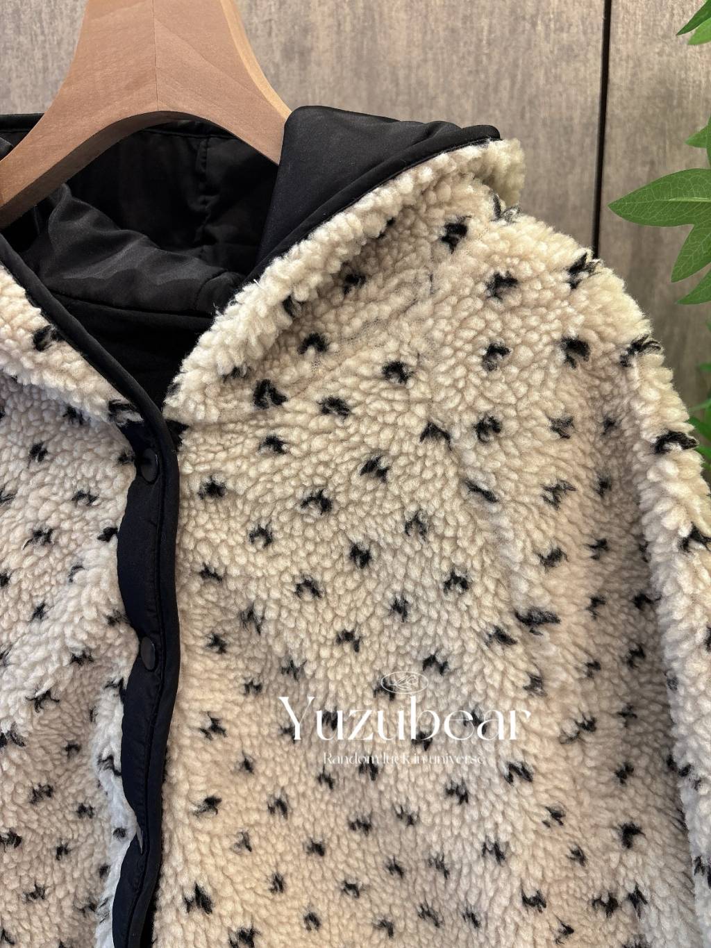 AU144 韓國高質波點羊羔毛雙面連帽外套
