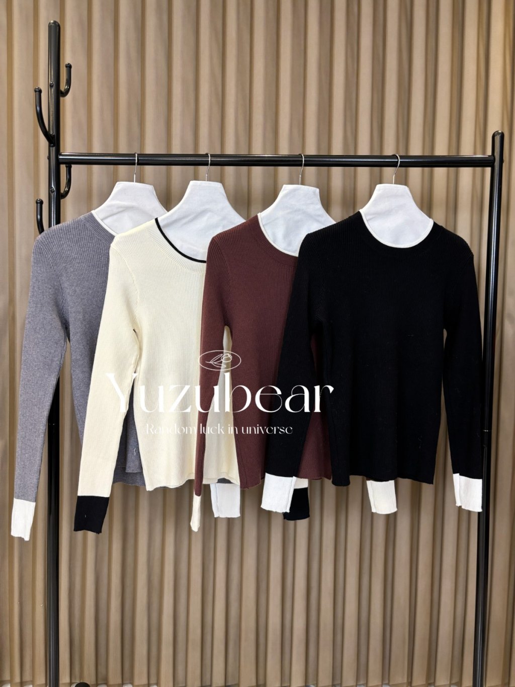 AU145 韓國高質拼色彈性針織上衣【一口優惠價】