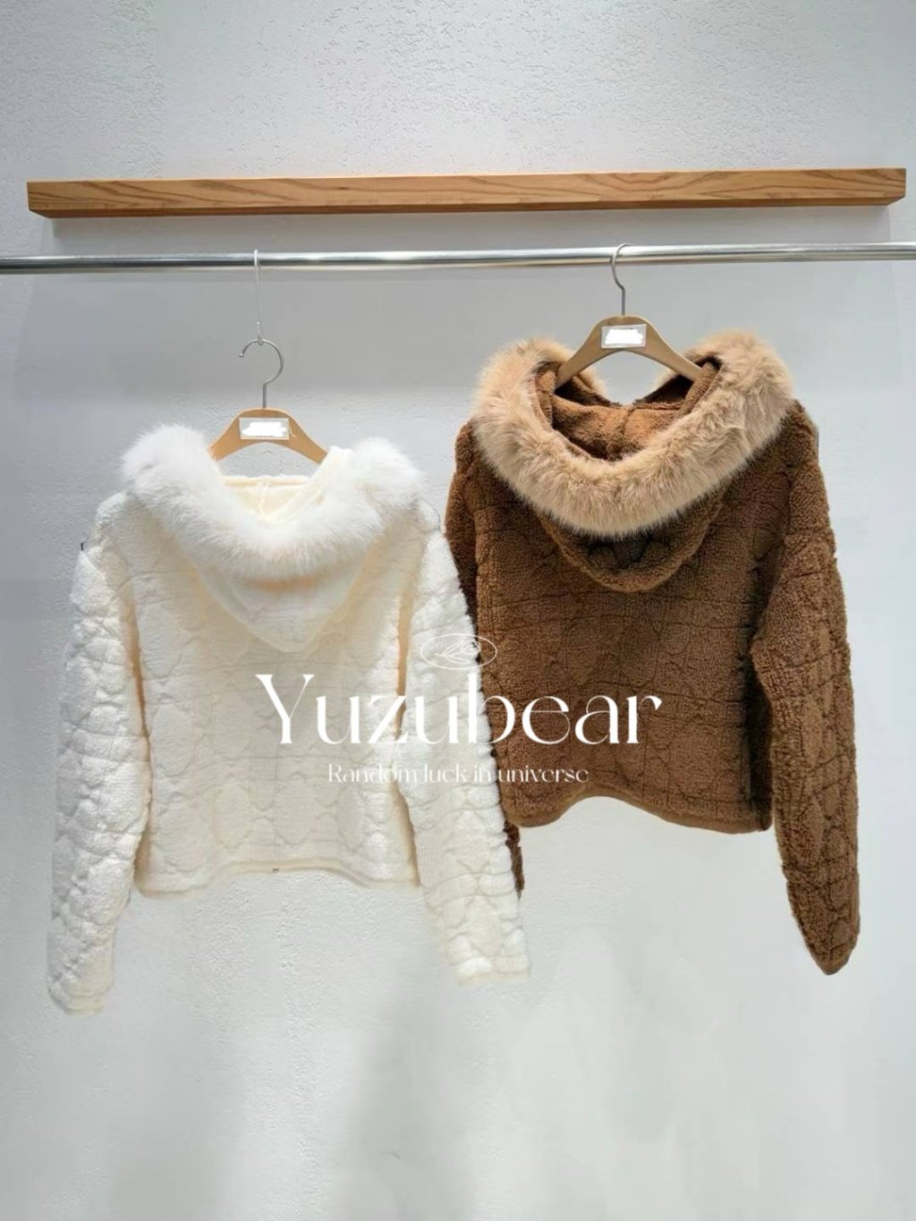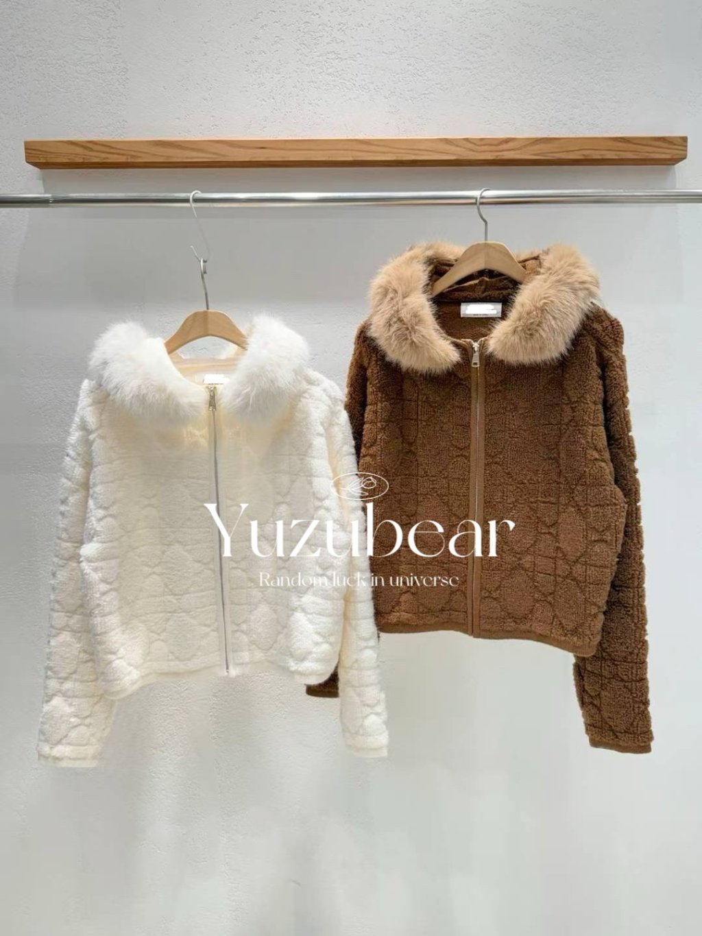 主頁 IA60 韓國高質暗紋絨布毛毛領拉鏈外套(毛毛可拆)