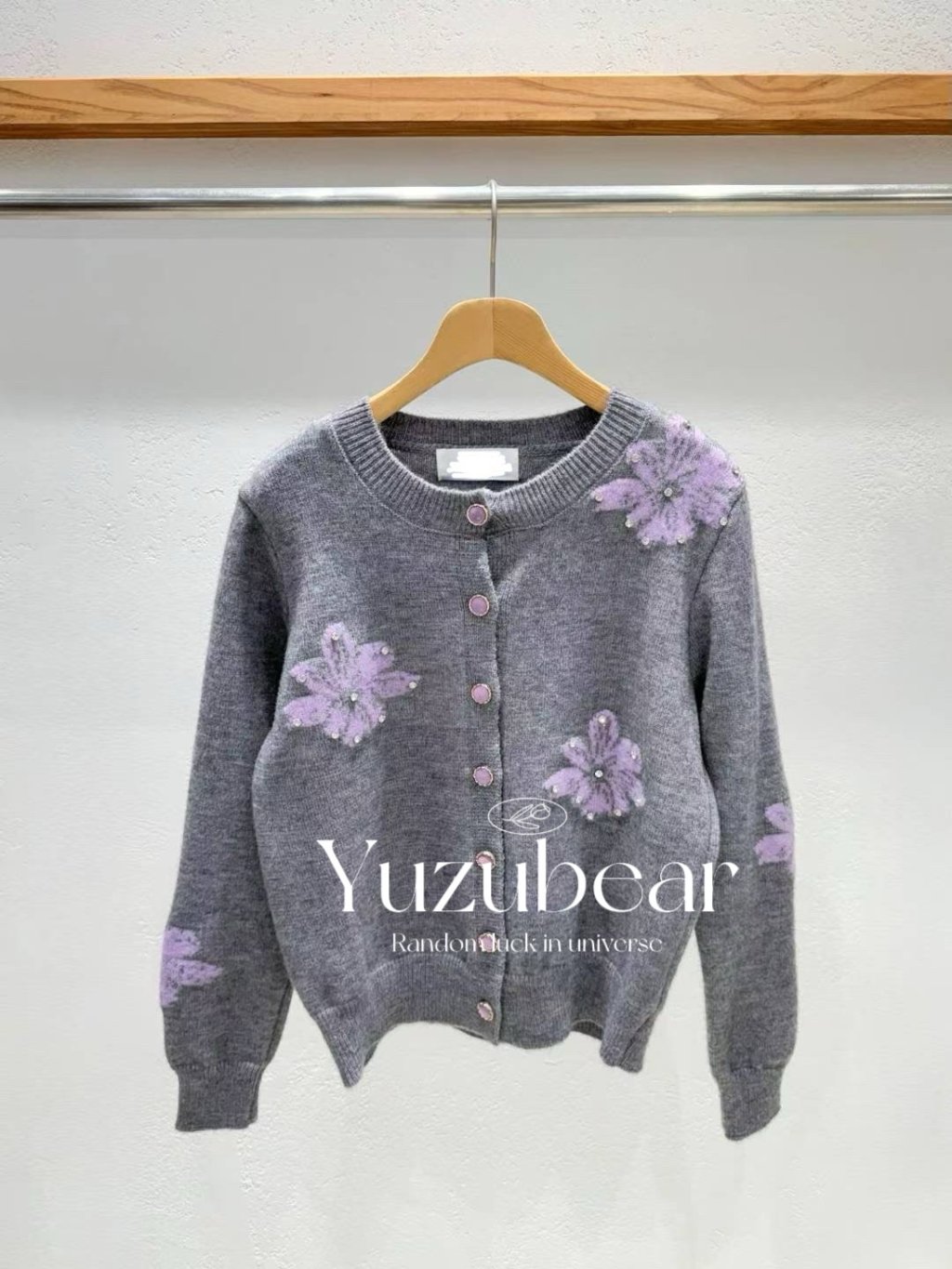 IA63 韓國高質花花釘石開胸冷衫cardigan