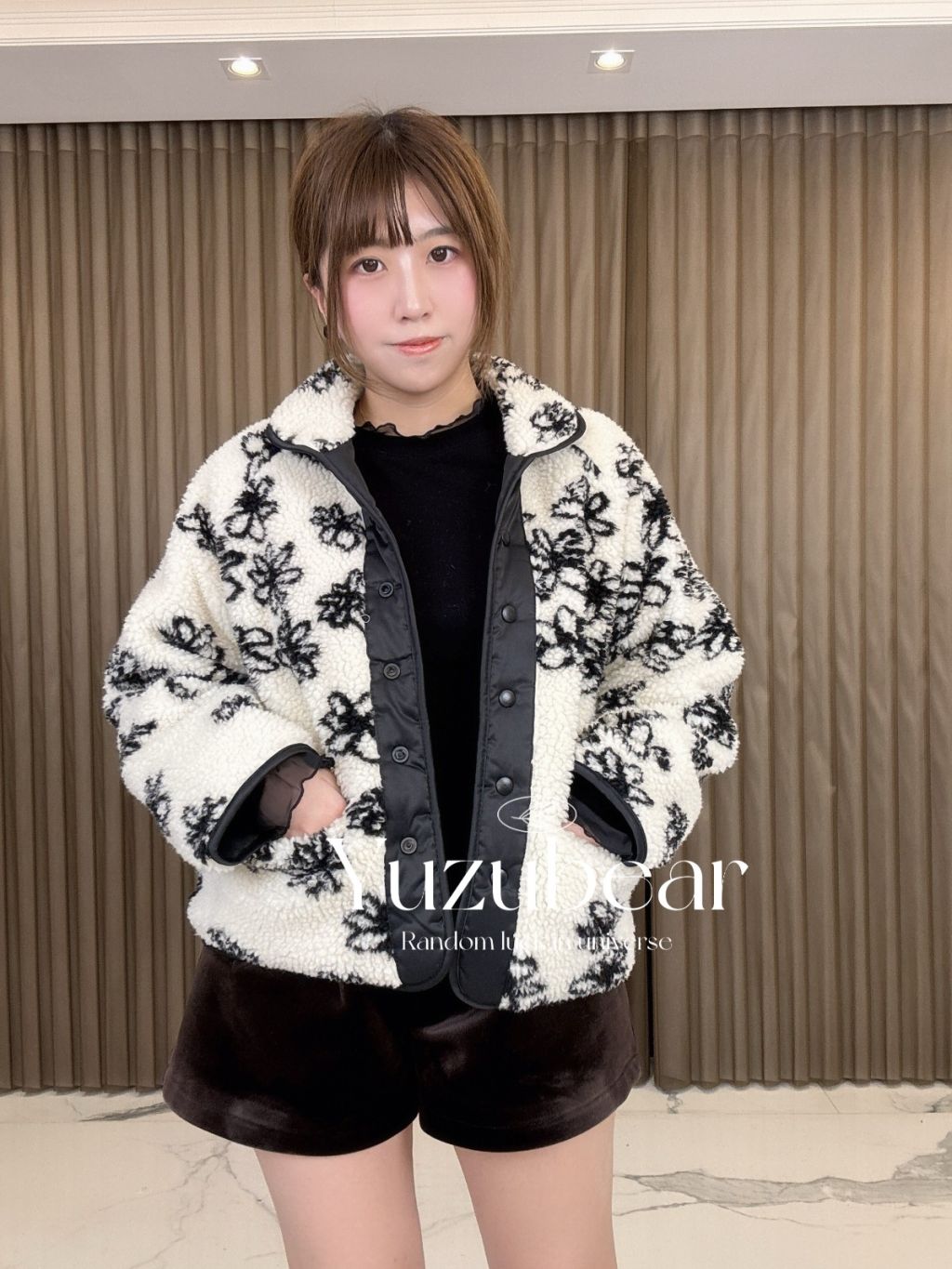 AU163 韓國高質花花羊羔毛雙面棉褸