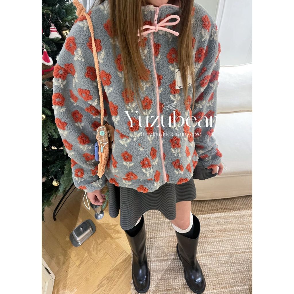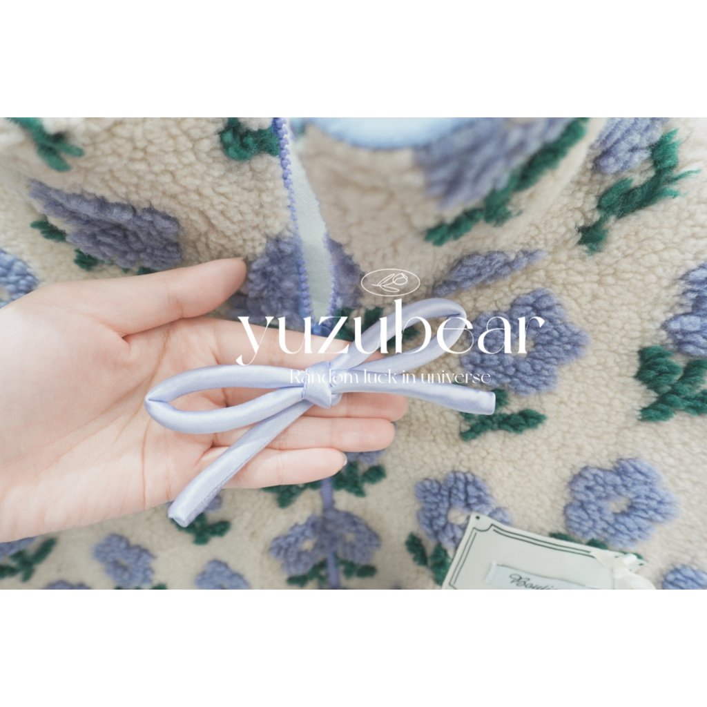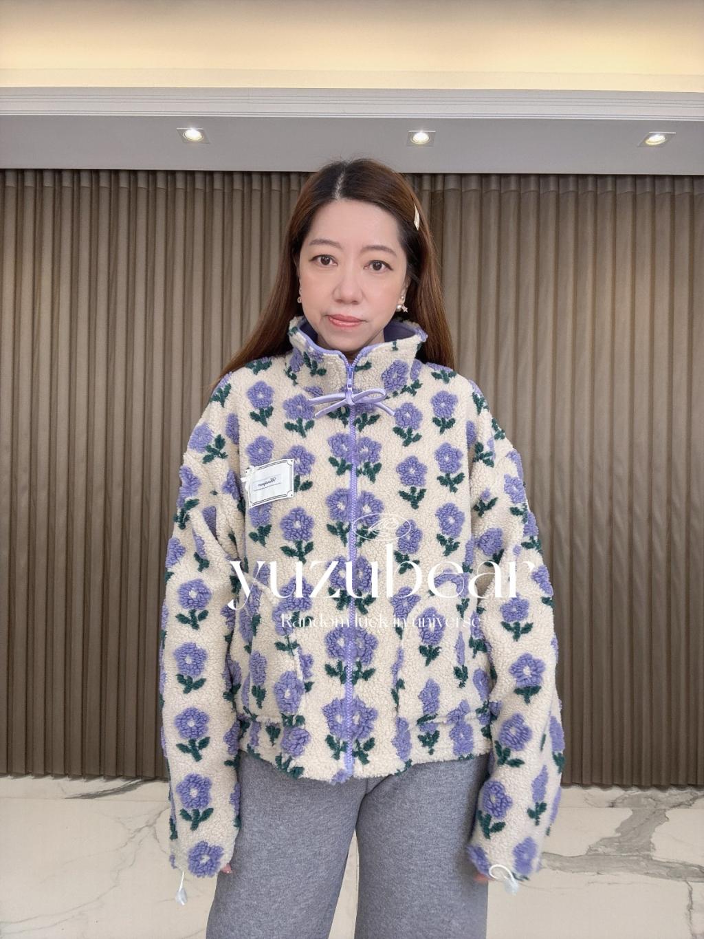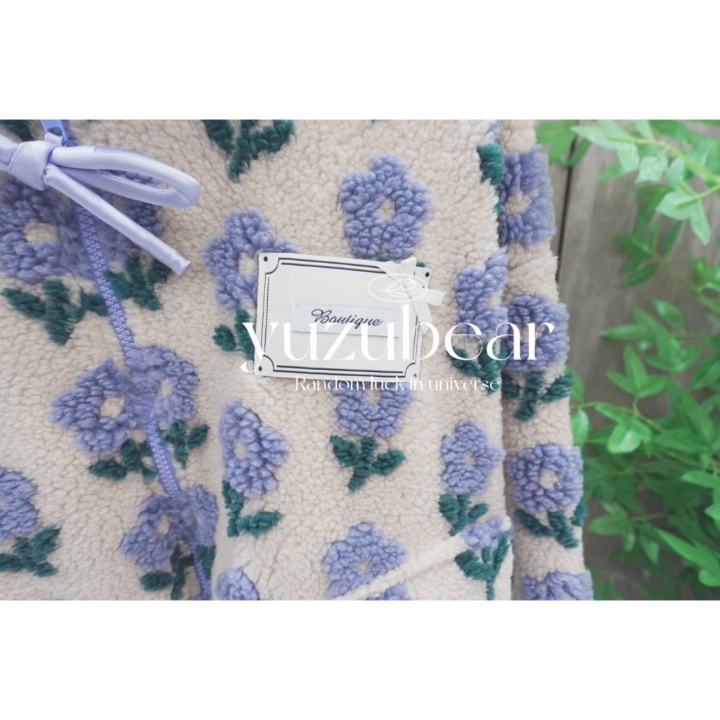 BQ12 韓國高質花花羊羔毛蝴蝶結拉鏈外套【一口優惠價】
