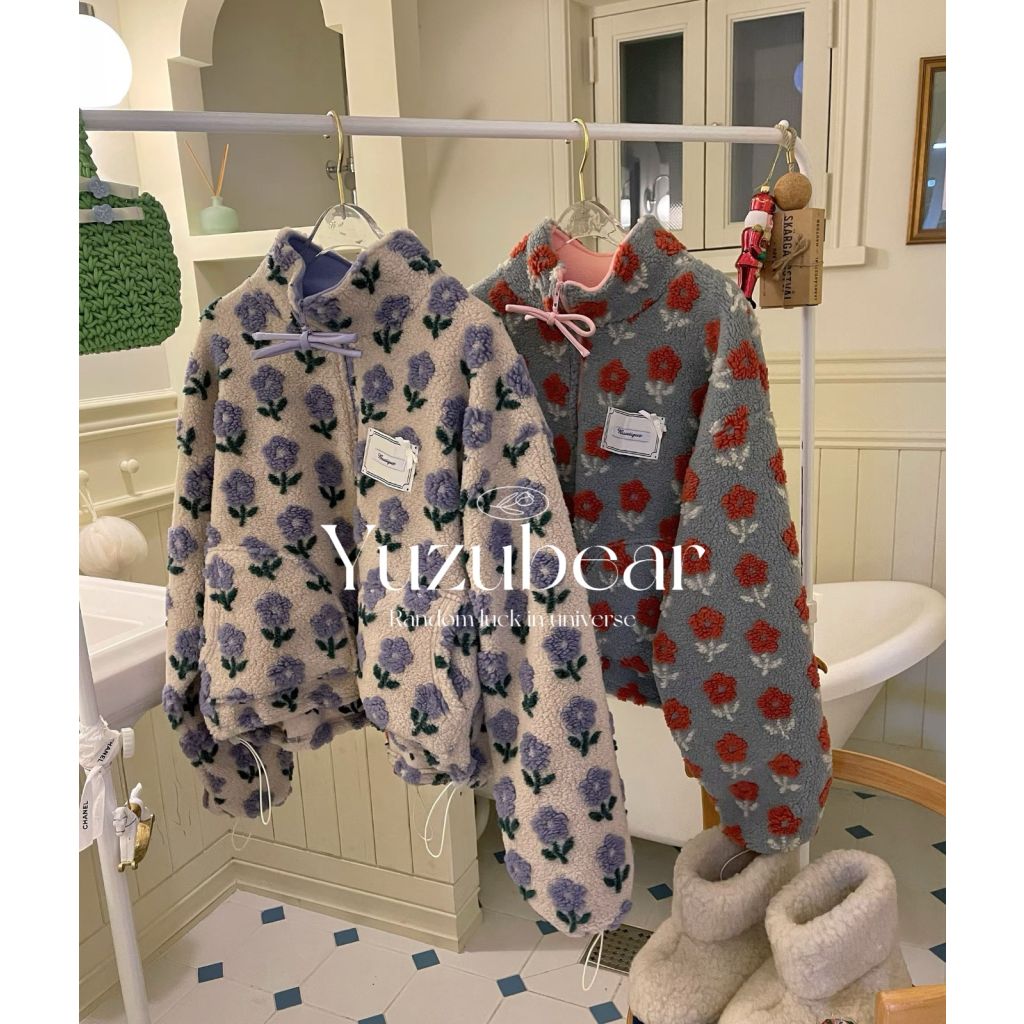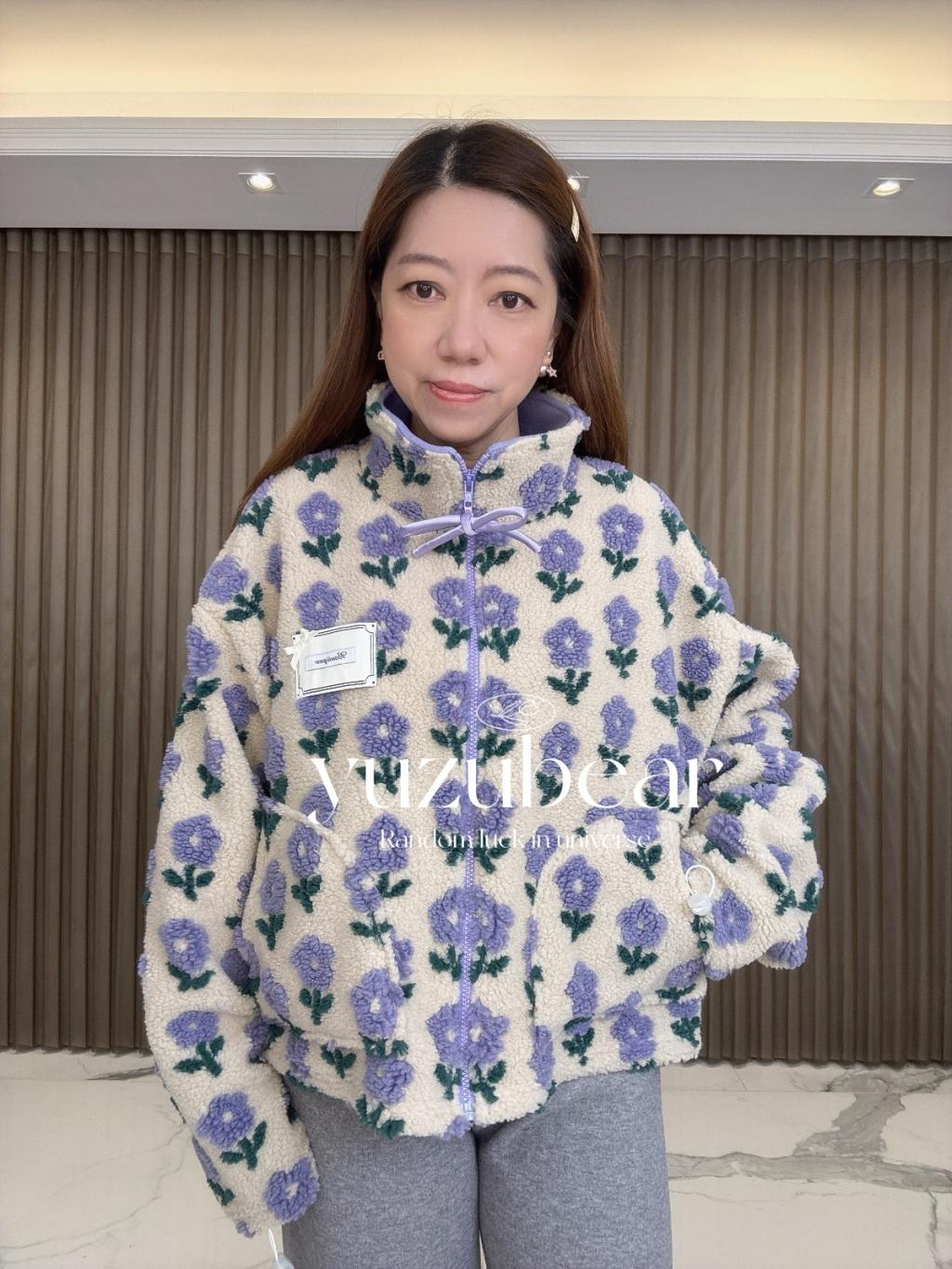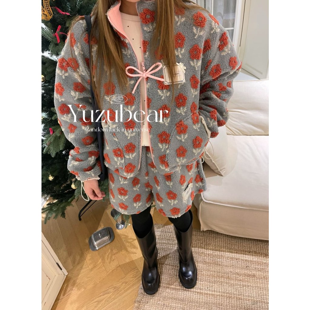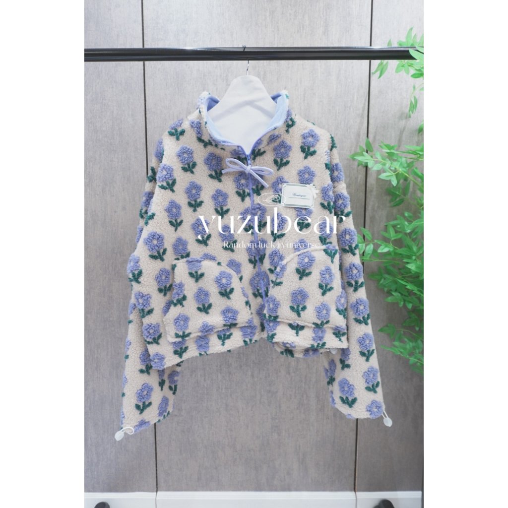 BQ12 韓國高質花花羊羔毛蝴蝶結拉鏈外套【一口優惠價】
