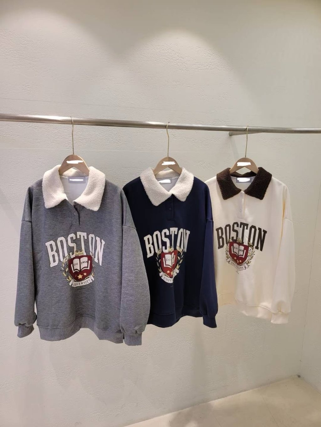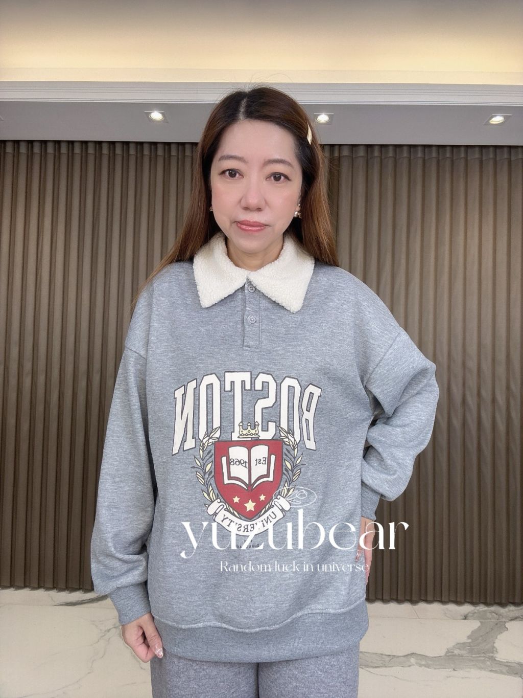 AU175 韓國高質羊羔毛領學院風毛底衛衣