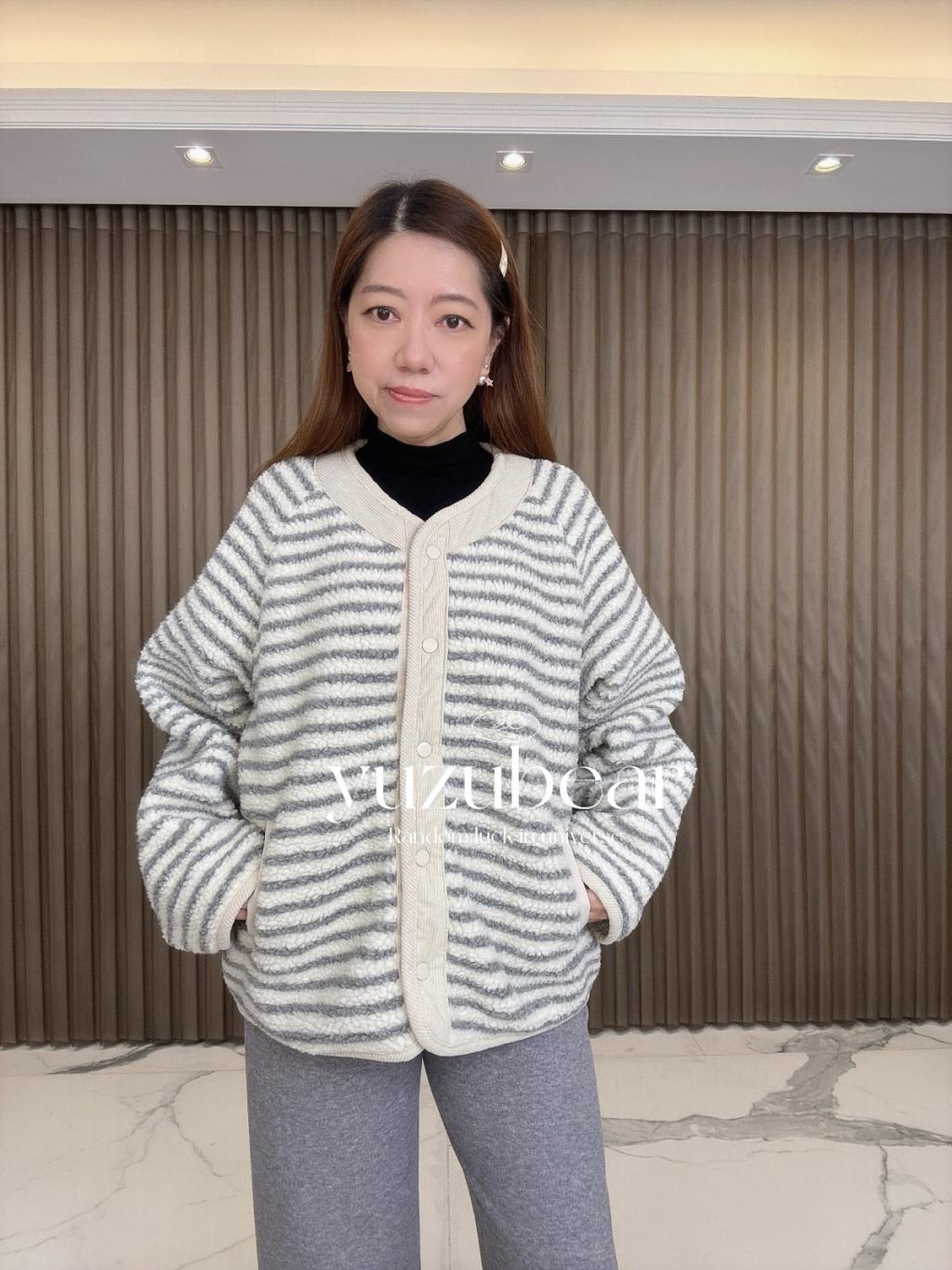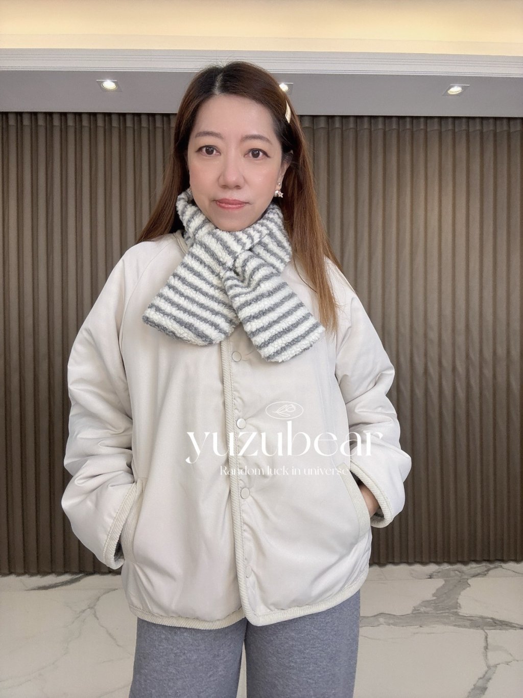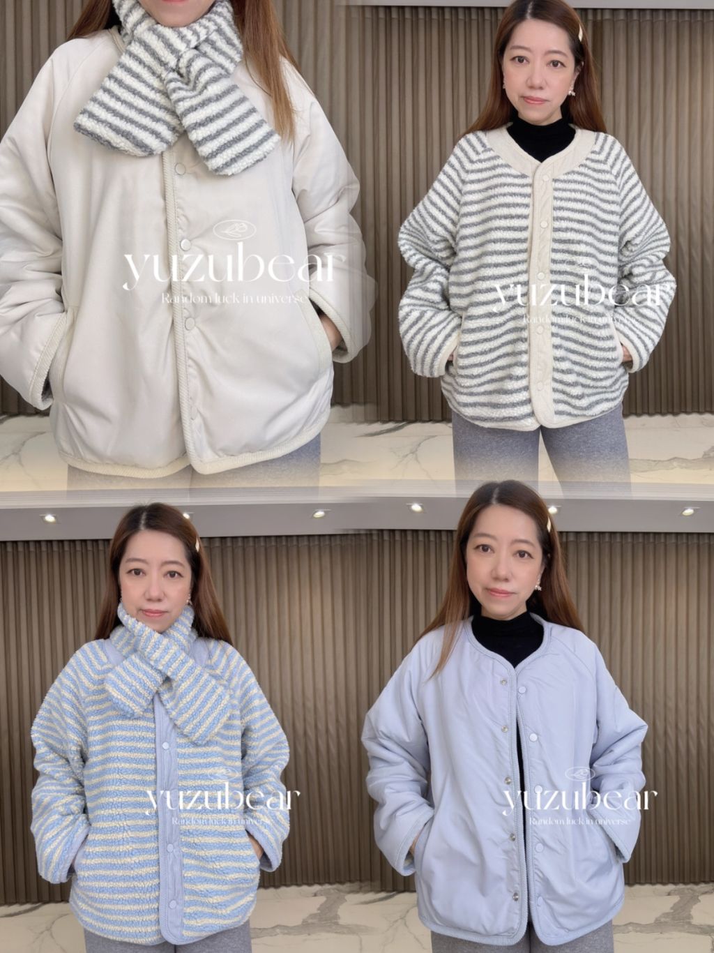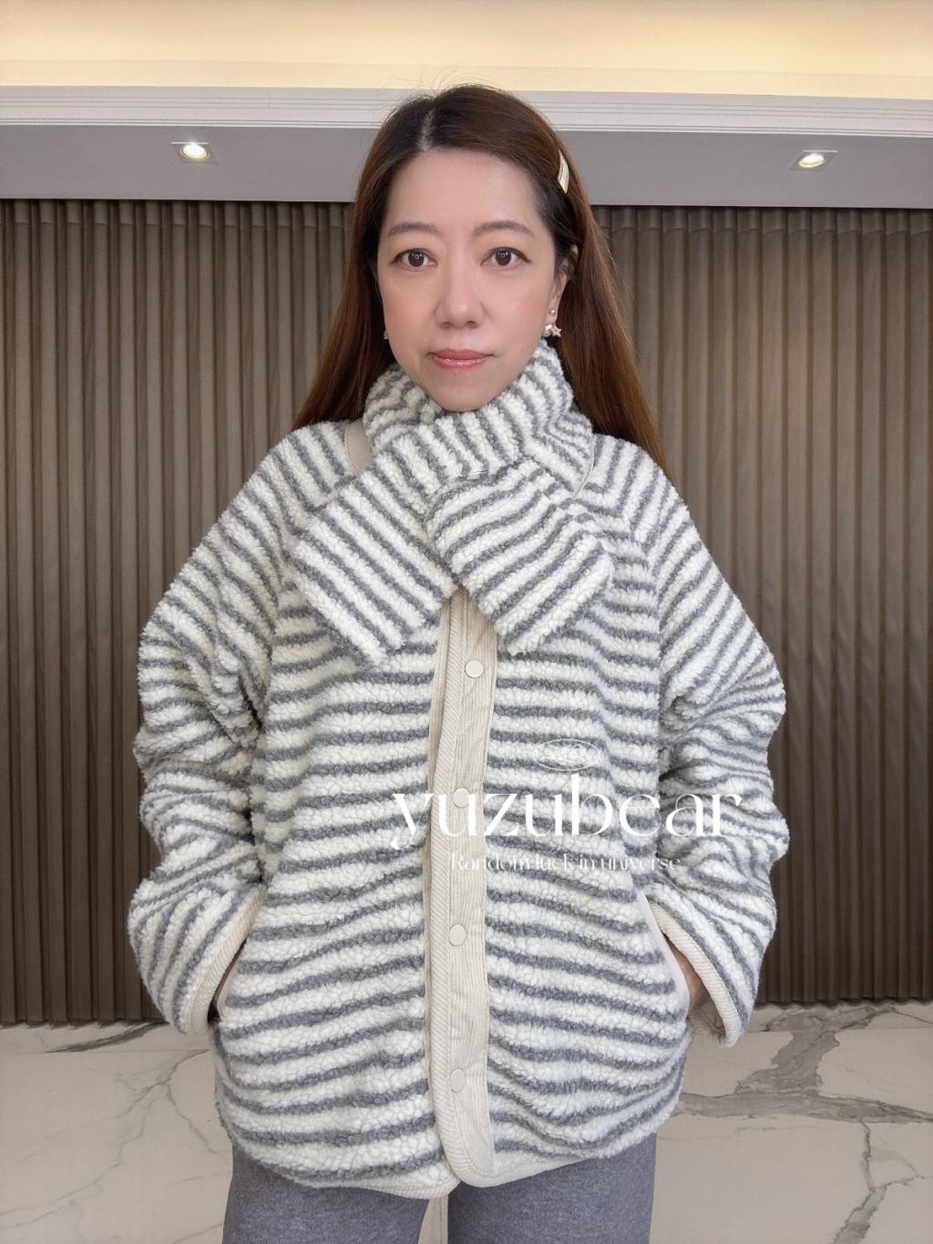 主頁 AU179 韓國高質羊羔毛間條燈芯絨包邊棉褸+羊羔毛圍巾套裝💖店主自留