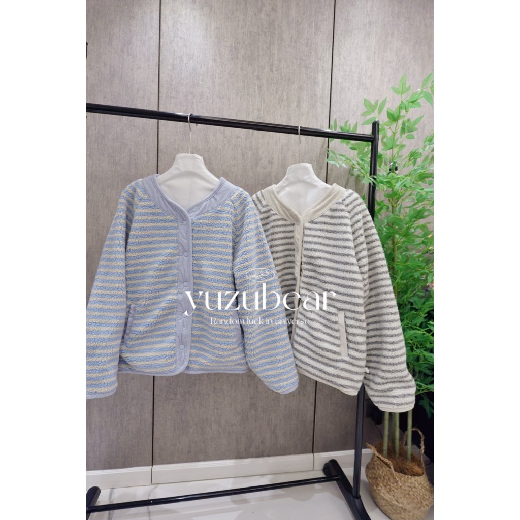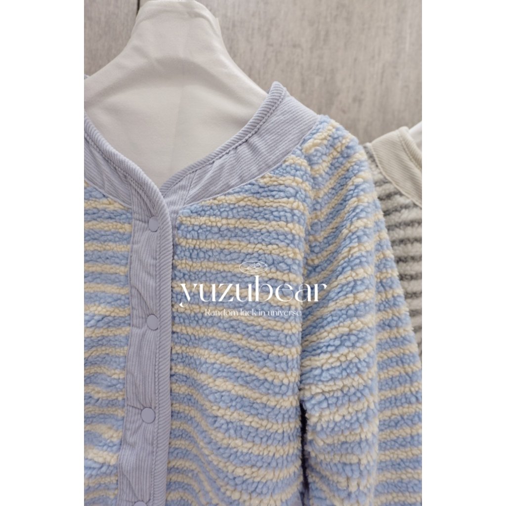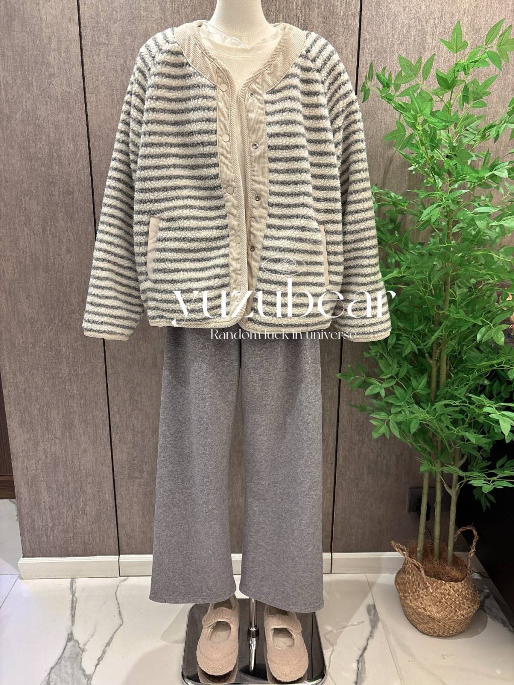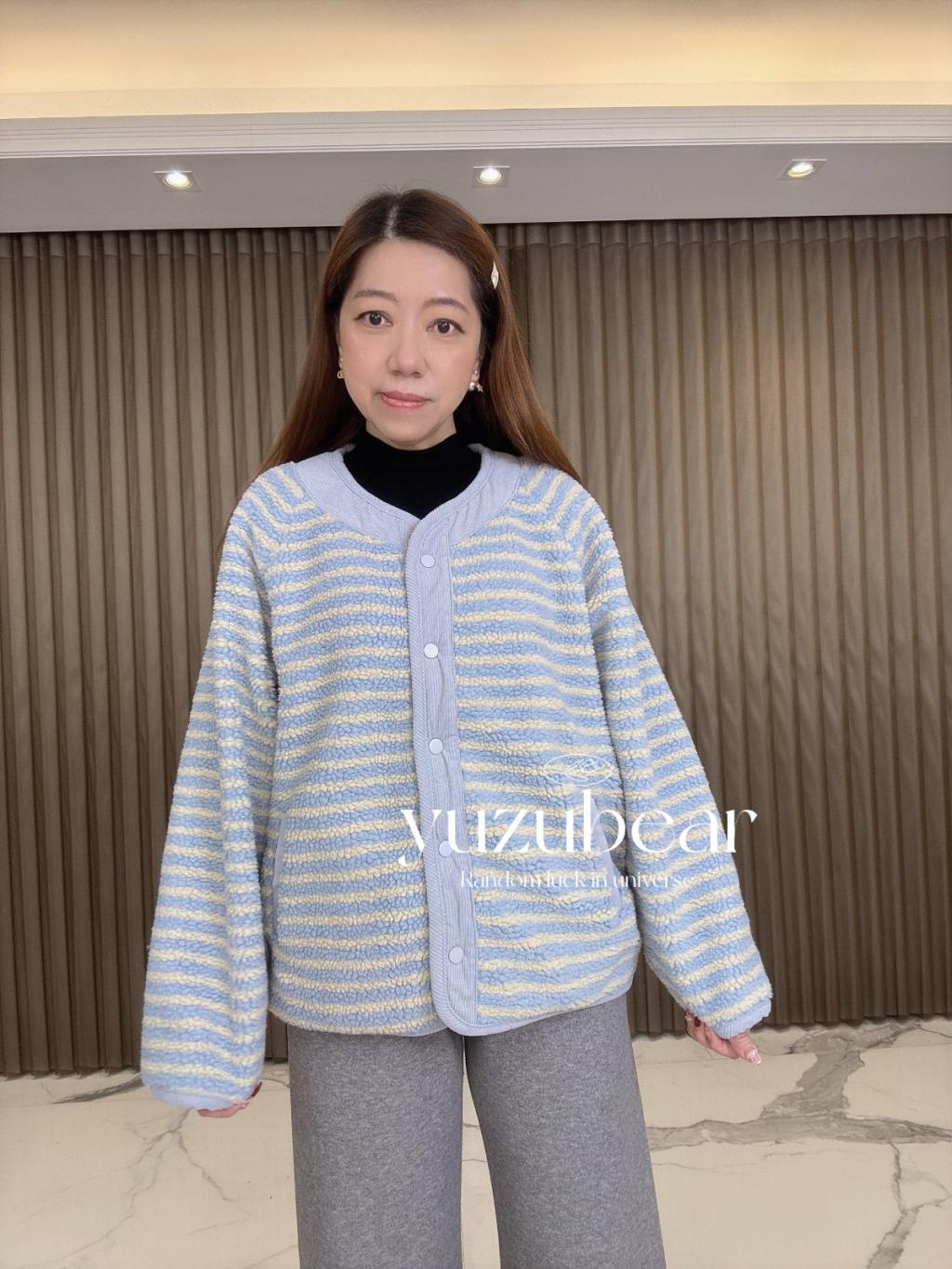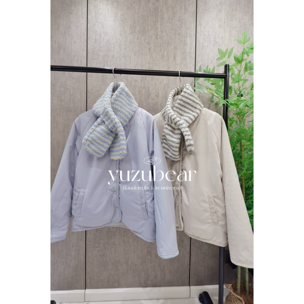 主頁 AU179 韓國高質羊羔毛間條燈芯絨包邊棉褸+羊羔毛圍巾套裝💖店主自留