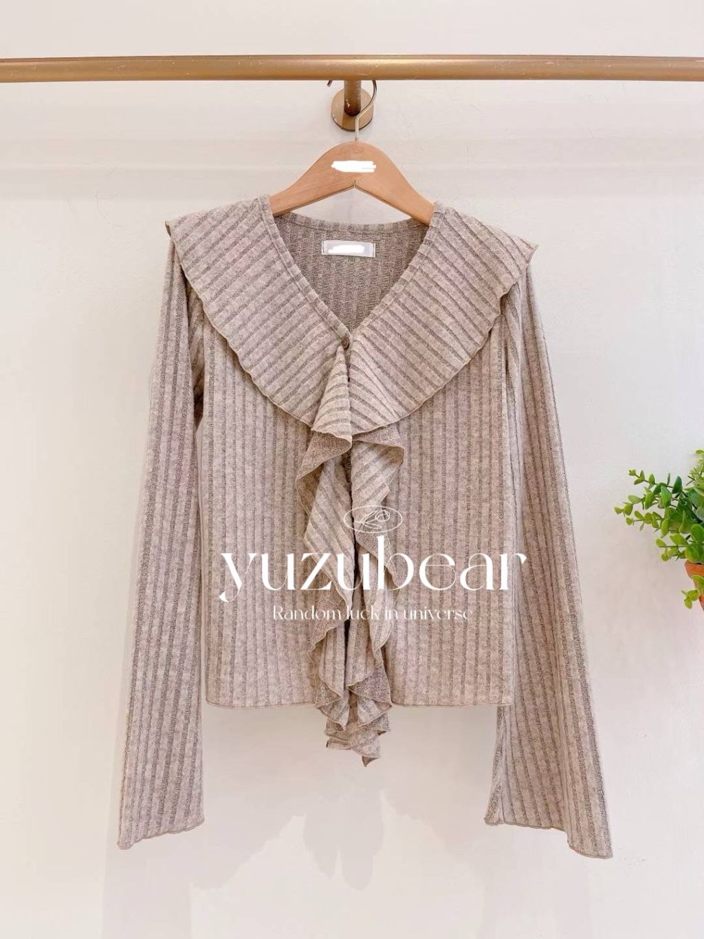GG4 韓國高質荷葉領亢紋blouse