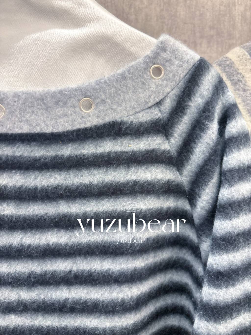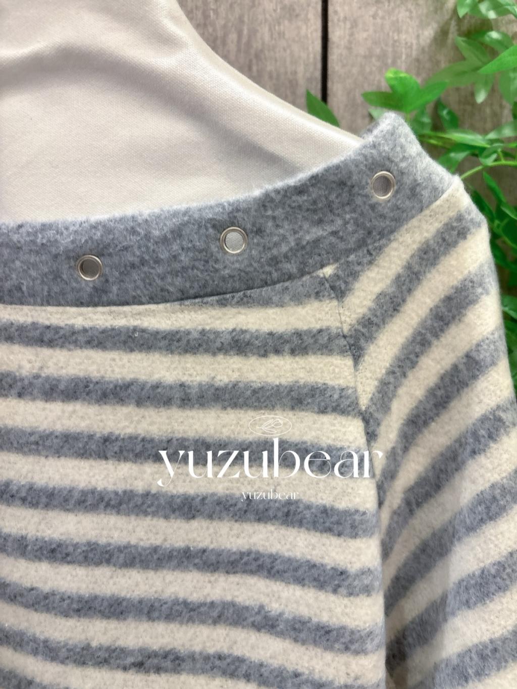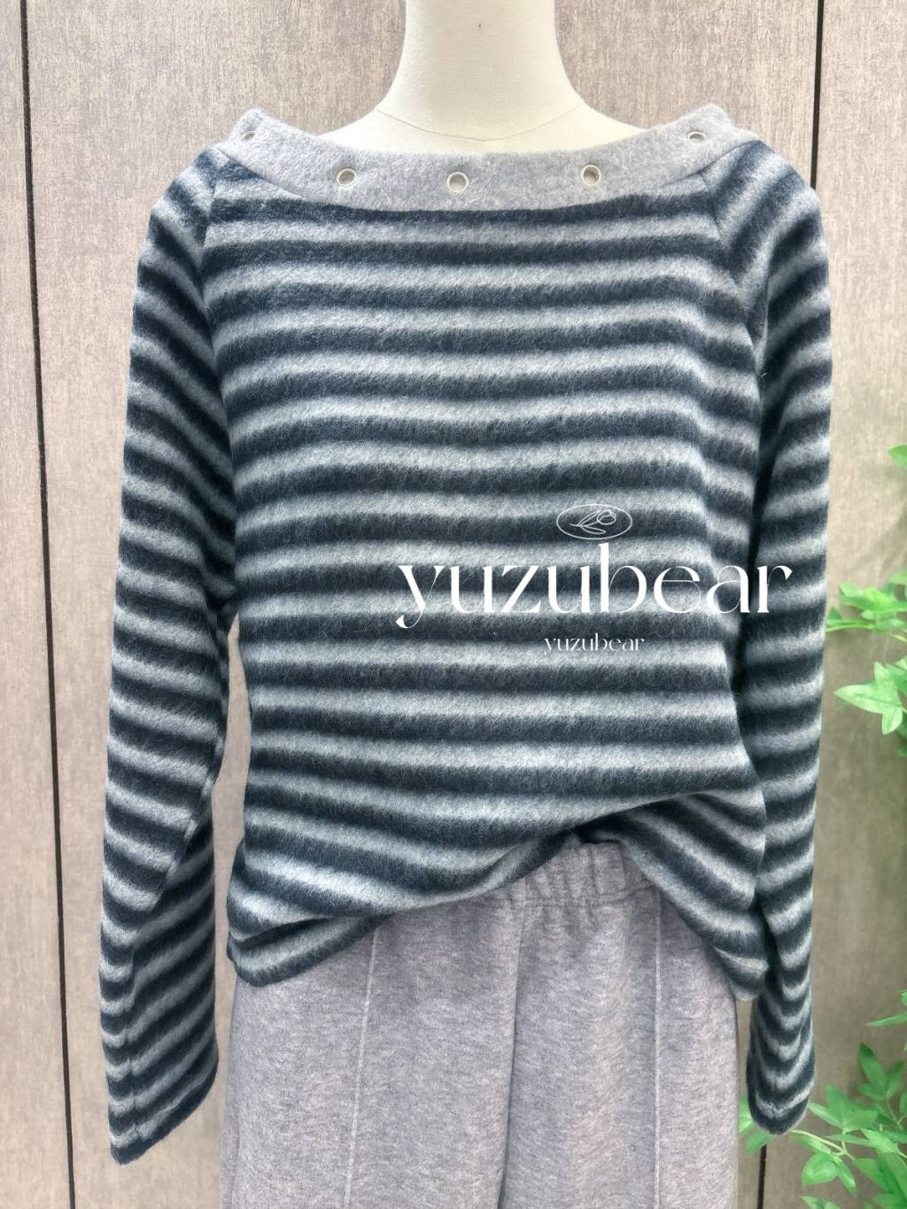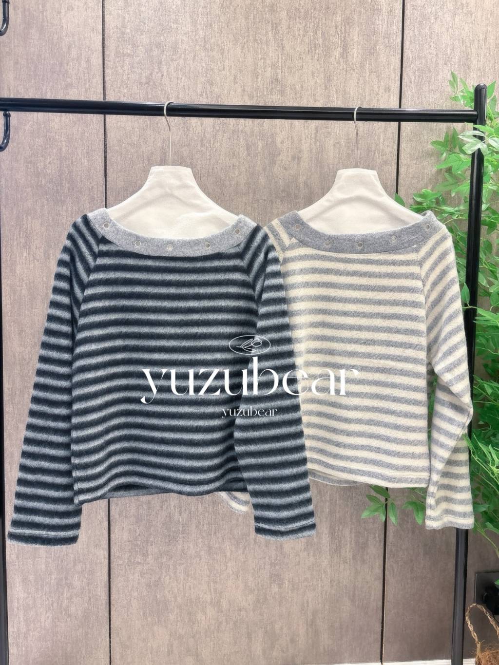 AU199 韓國高質闊領洞洞邊間條絨毛面上衣