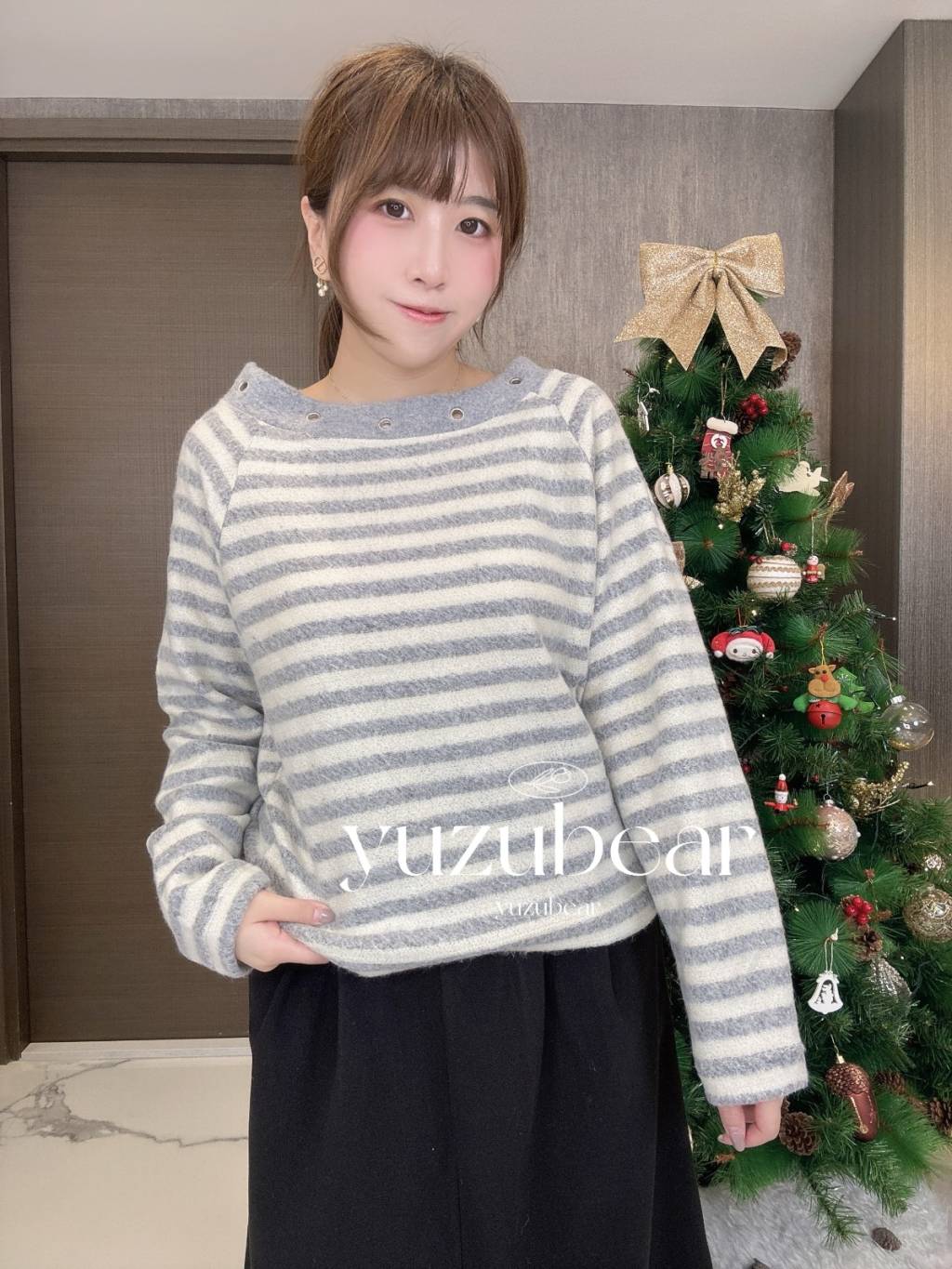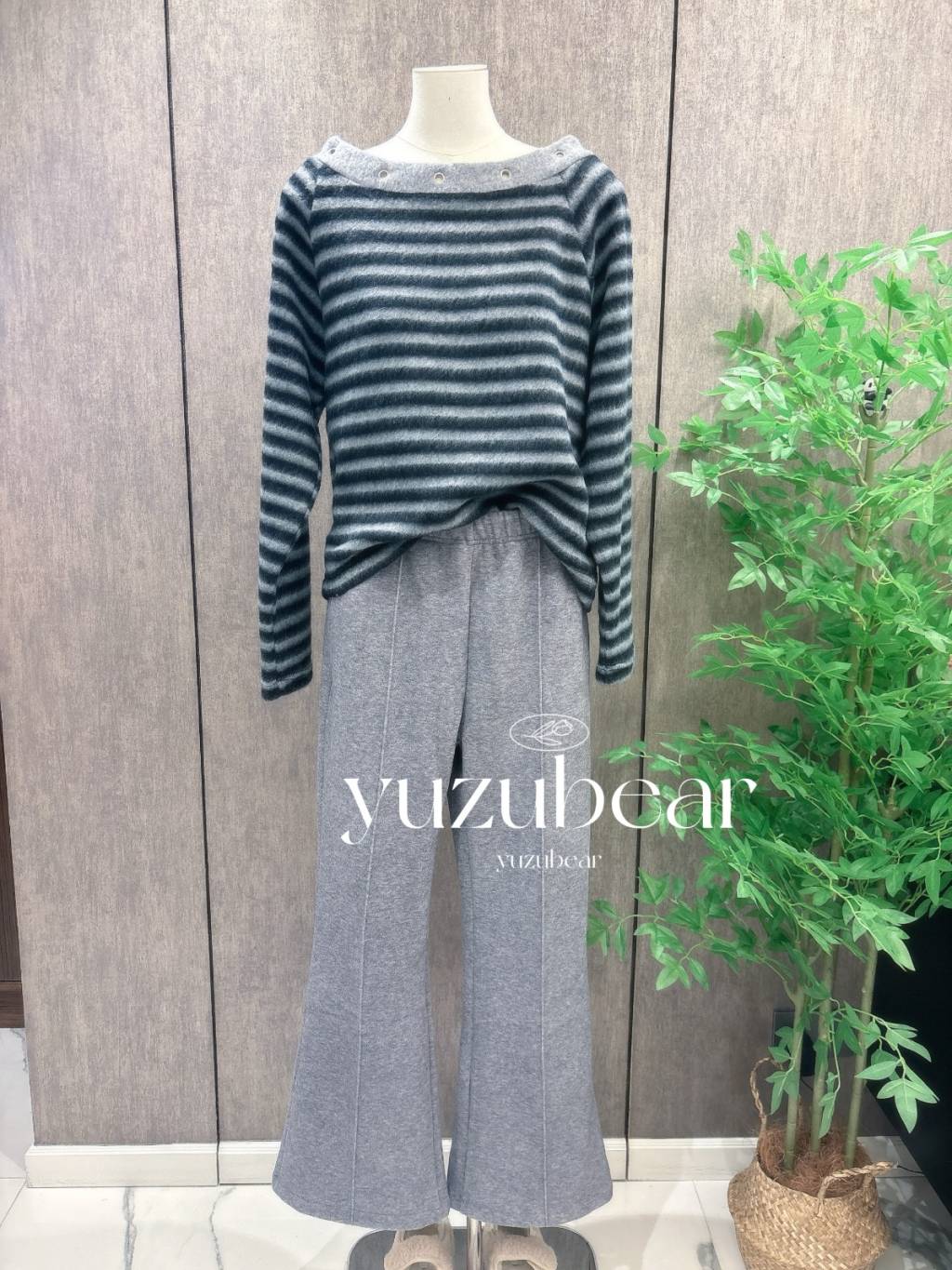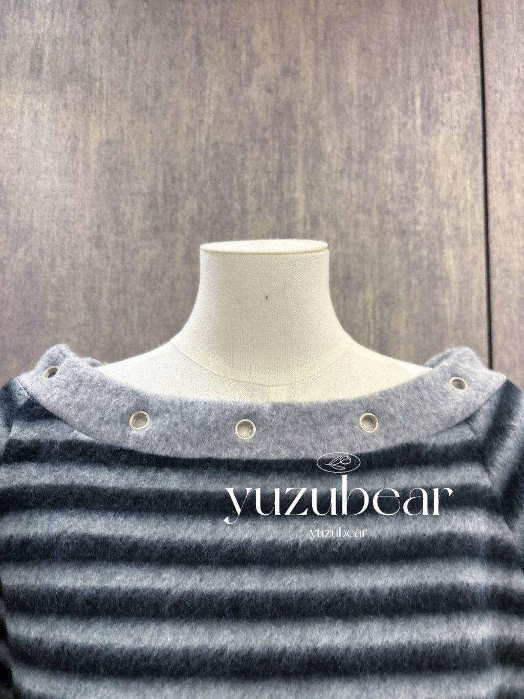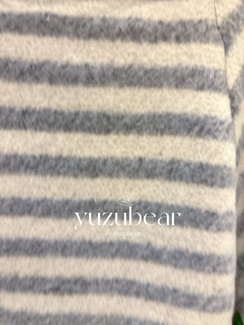 AU199 韓國高質闊領洞洞邊間條絨毛面上衣