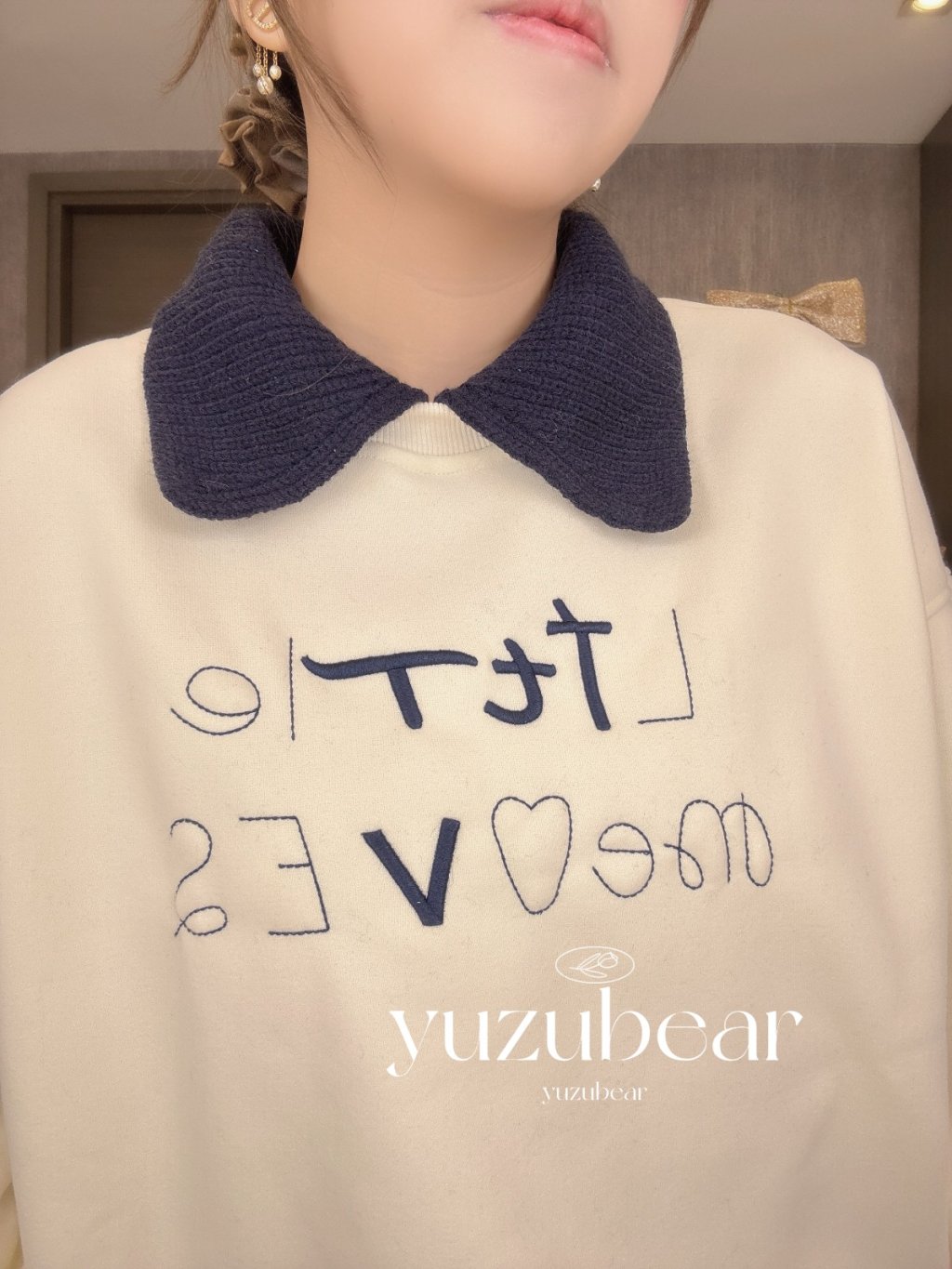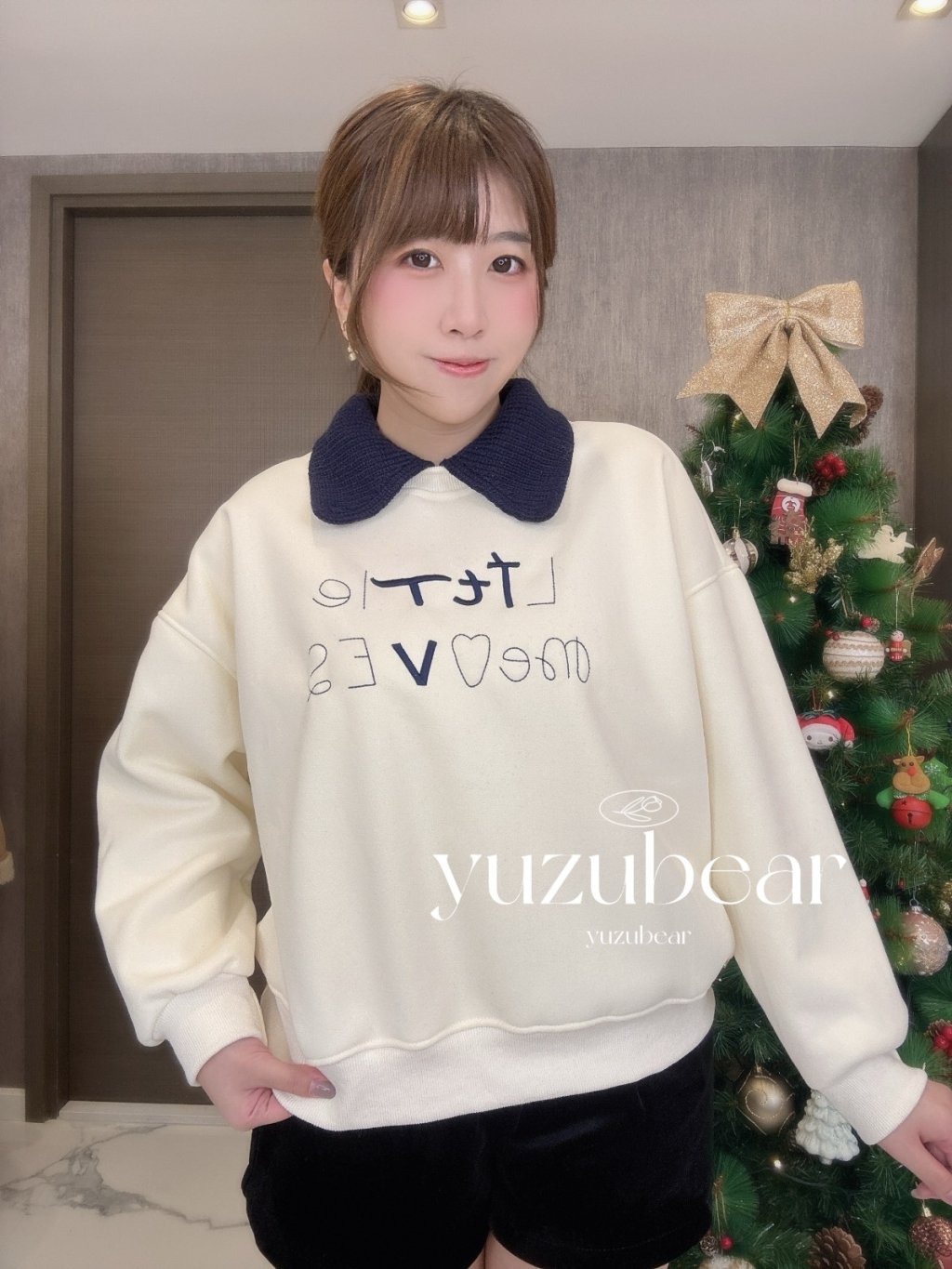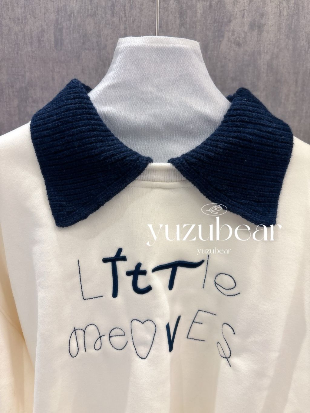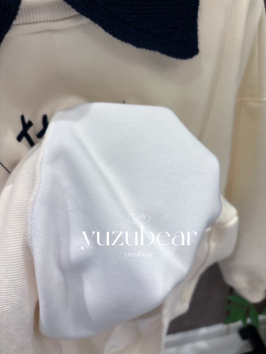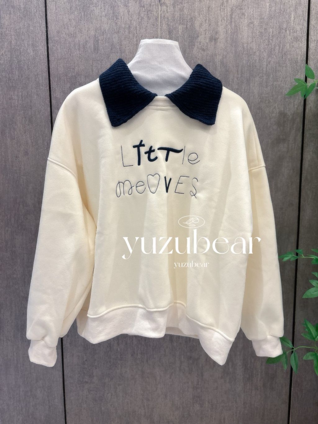 AU202 韓國高質拼冷polo領刺綉字毛底衛衣