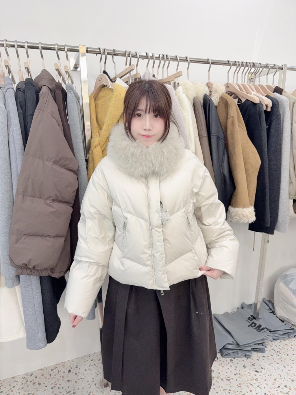 ad8 韓國高質毛毛領90%鴨絨褸+狐狸毛圍巾套裝